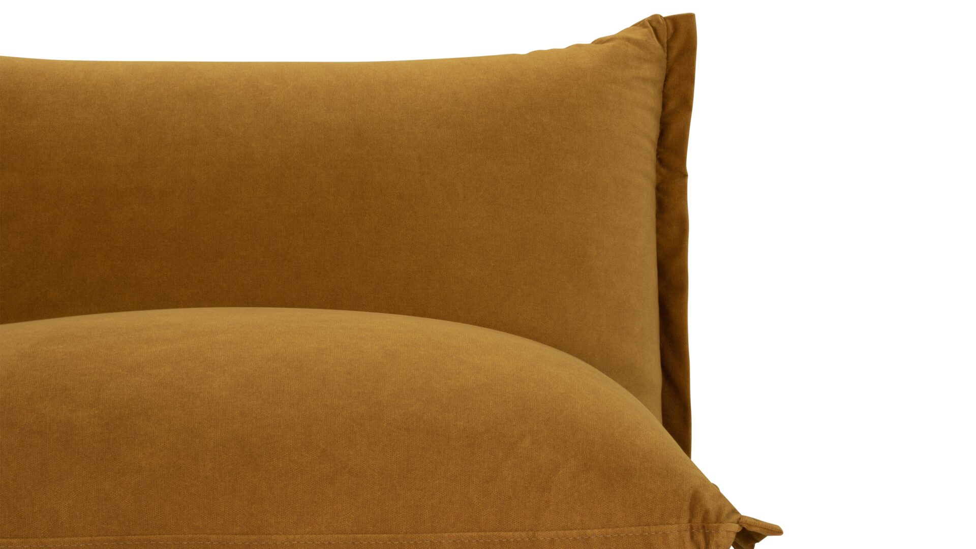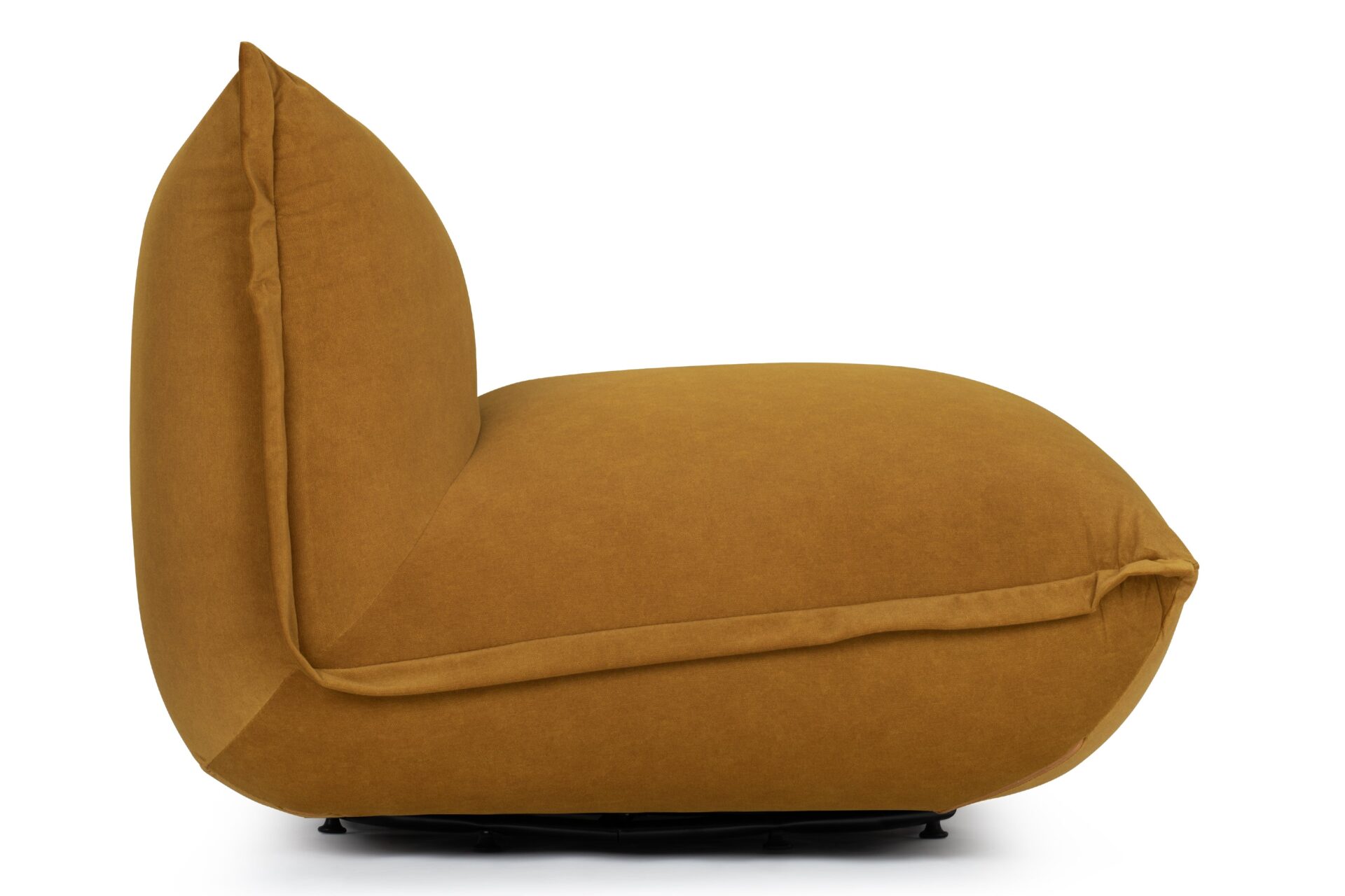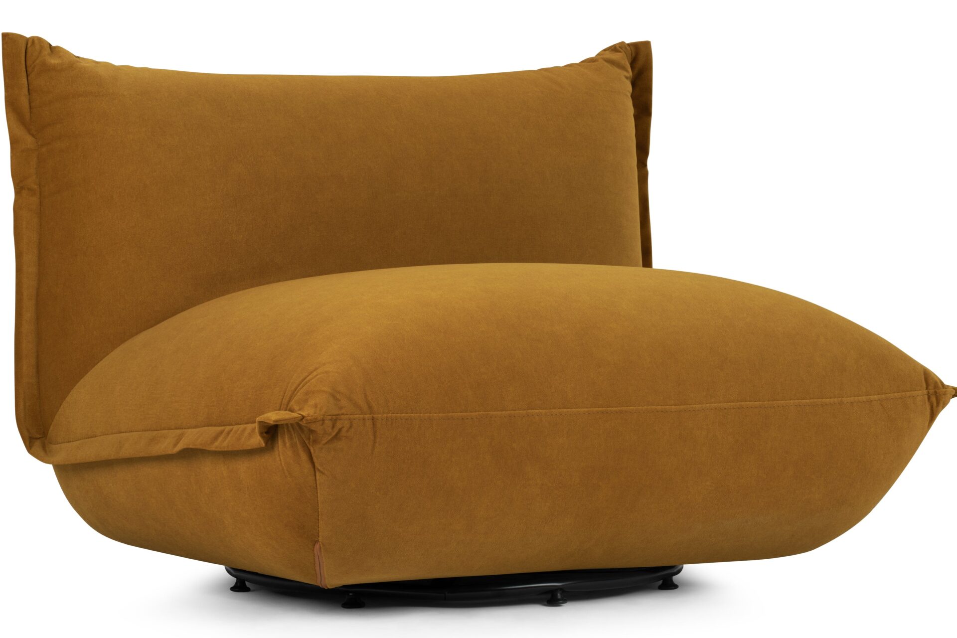 Discover the Lennox Swivel Lounge Chair, featuring low maintenance velvet upholstery available in a striking mustard hue, alongside other contemporary color options. Boasting a plush pillow design for sumptuous comfort, this chair showcases creased sections on each side reminiscent of a pillowcase. The swivel base comes in a sleek black finish, facilitating effortless rotation during use. With its armless, modern aesthetic, this chair is a captivating addition to any space. Perfect for a cozy reading corner or a secluded relaxation spot, it also lends itself well to group arrangements for a laid-back social area.
