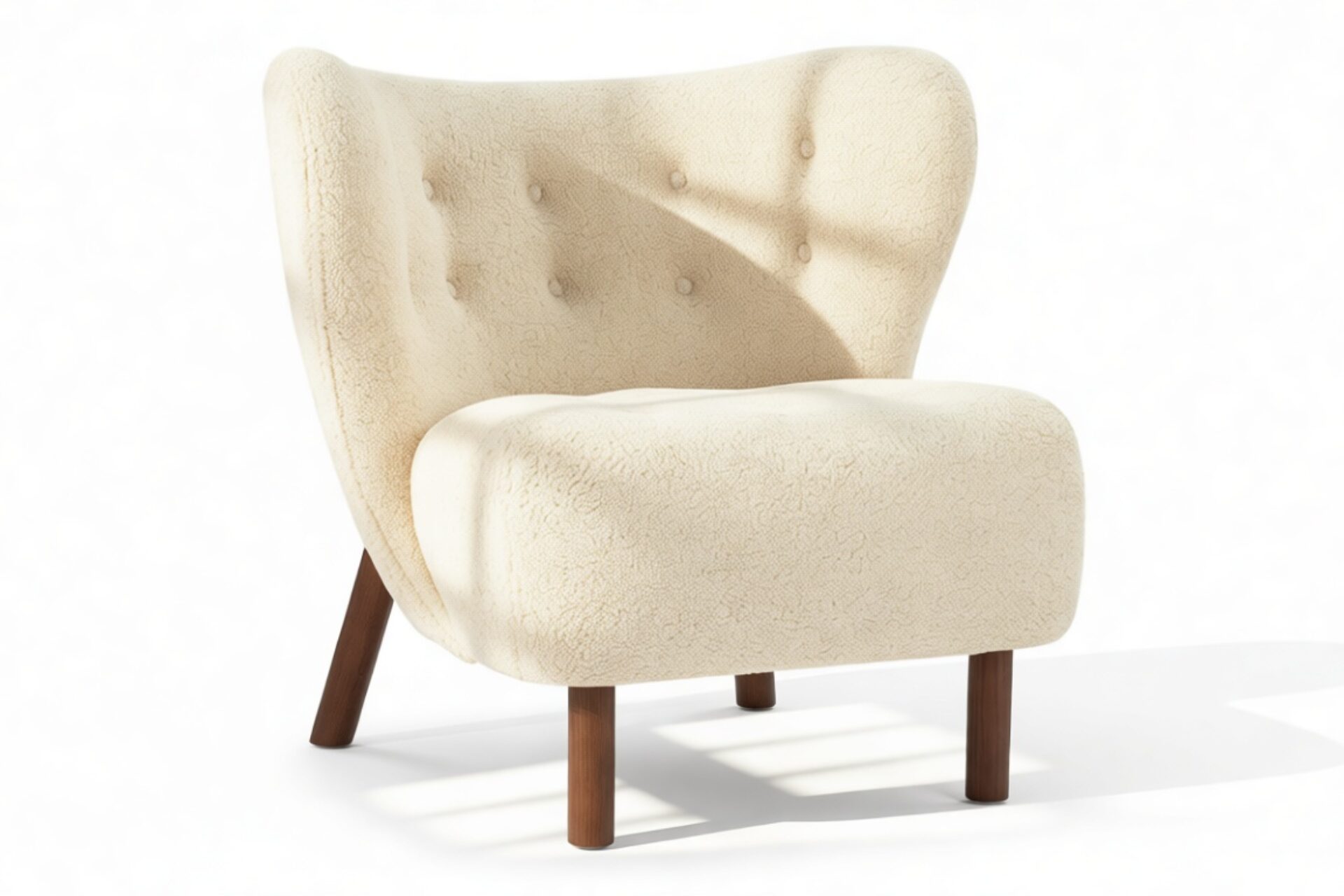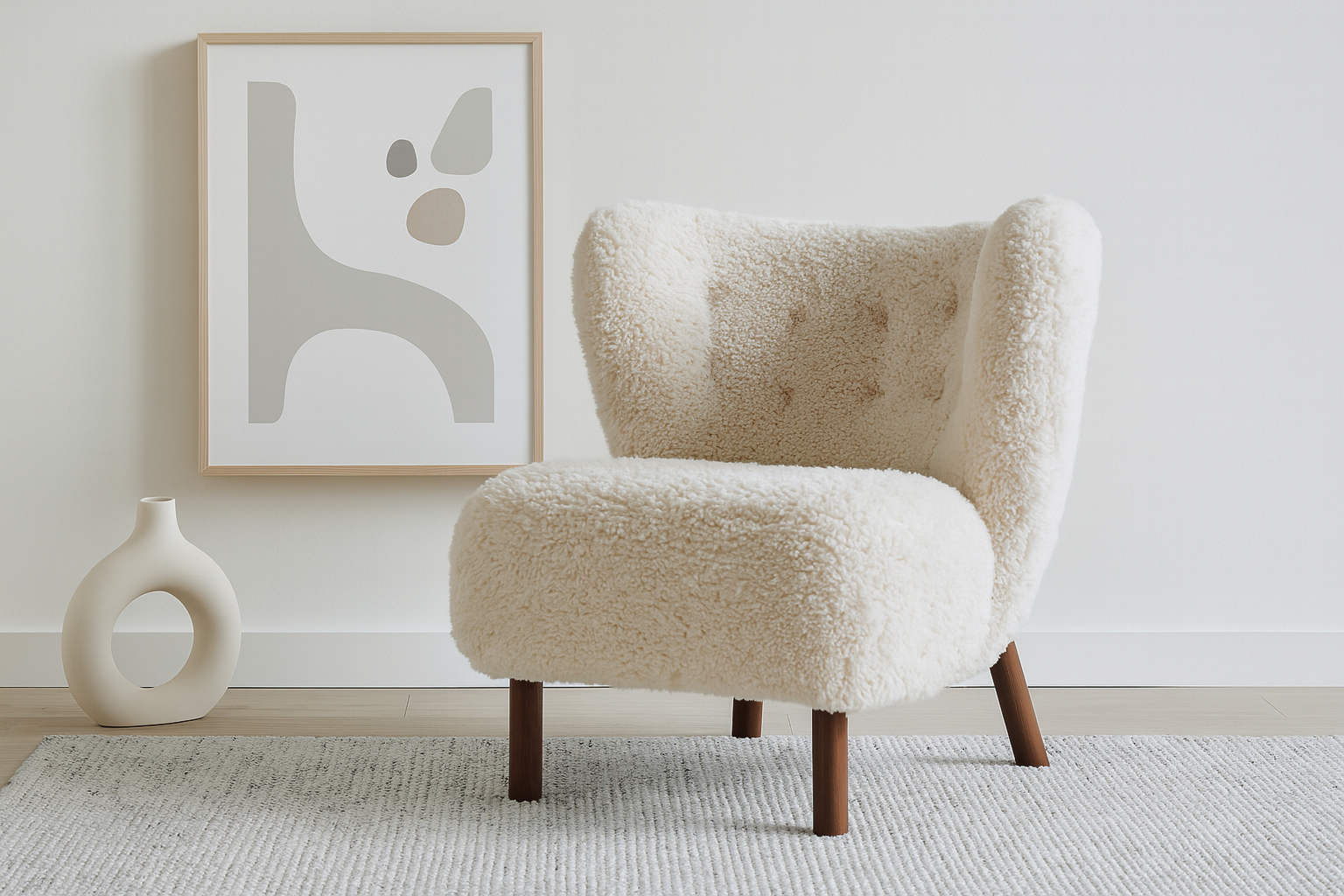 Wrapped in sumptuous vegan sheepskin, the Little Petra Chair provides an indulgently cozy and comfortable lounging experience.