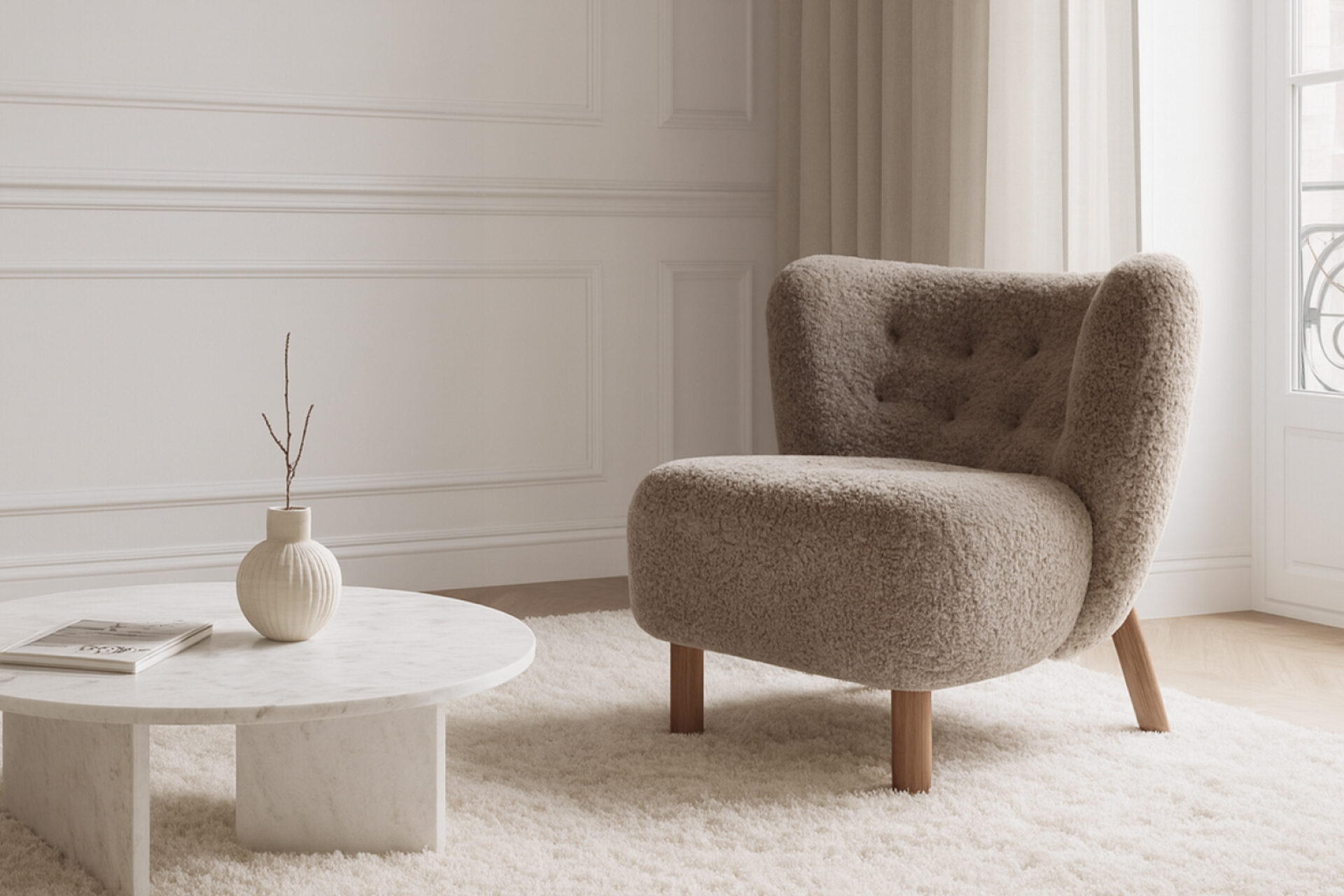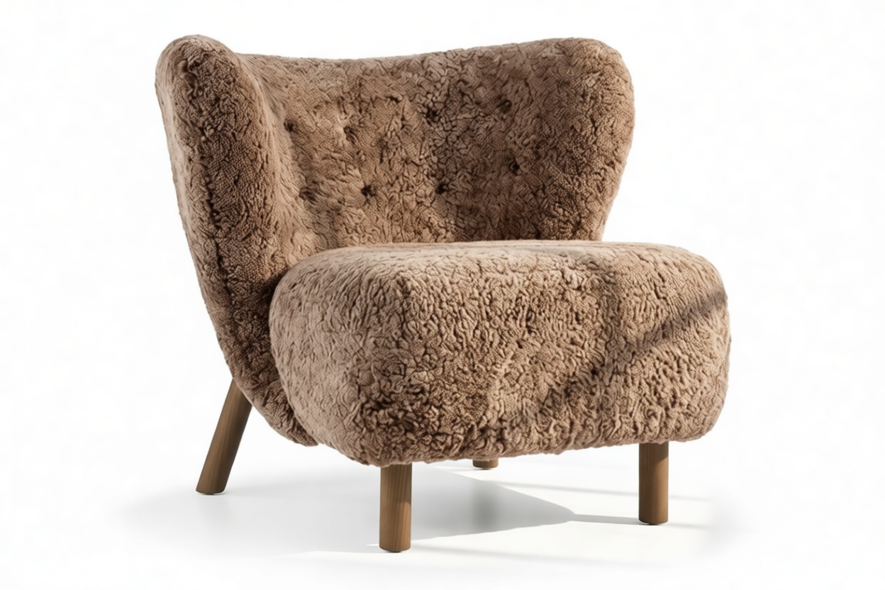 Wrapped in sumptuous sheepskin, the Little Petra Chair provides an incredibly snug and inviting lounging experience.