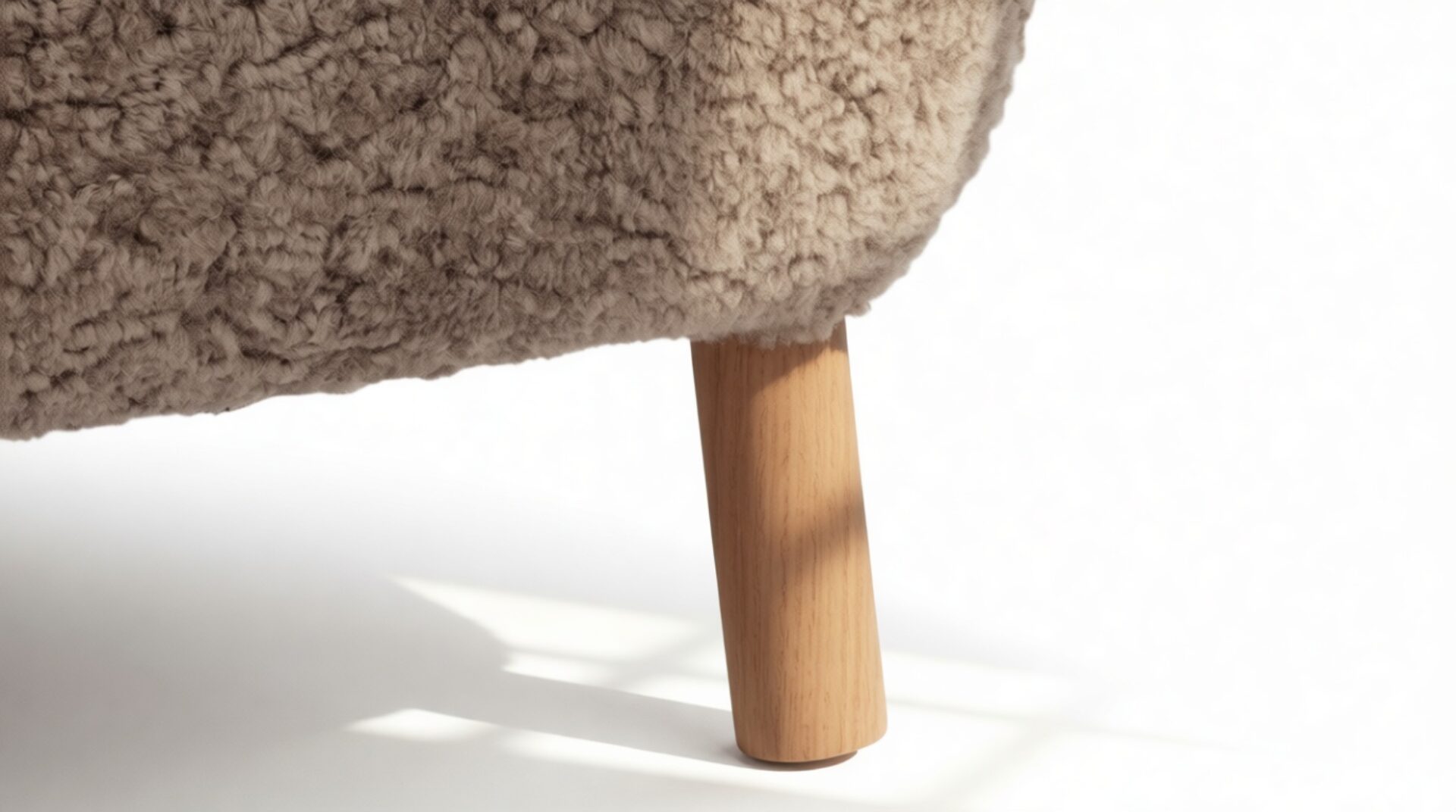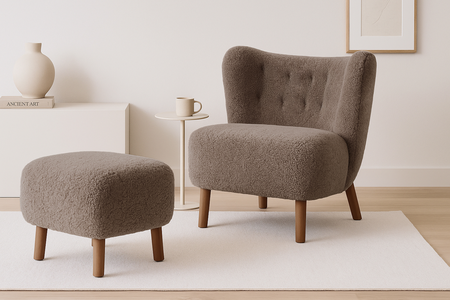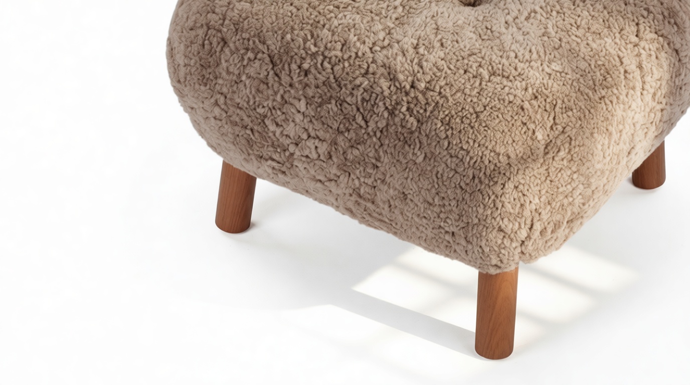 Crafted with a sturdy beech and plywood frame, the Little Petra Ottoman is enveloped in HR foam and polyester wadding, then luxuriously wrapped in Luxe Sheepskin. It serves as the perfect snug companion to the Lounge Chair or stands elegantly as a chic stool by itself.