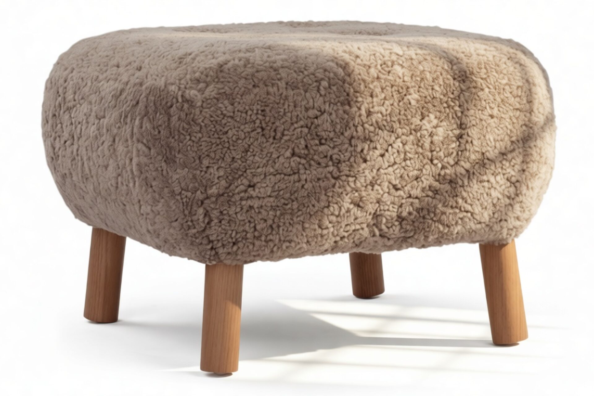 Expanding upon the renowned Little Petra lounge chair, the Little Petra Ottoman mirrors its chic aesthetics and impressively compact structure. The lavish cushion of the ottoman is wrapped in luxurious sheepskin, providing an indulgently soft and snug sensation. This opulent upholstery not only contributes warmth but also infuses a natural element into interior spaces, fostering a serene ambiance.