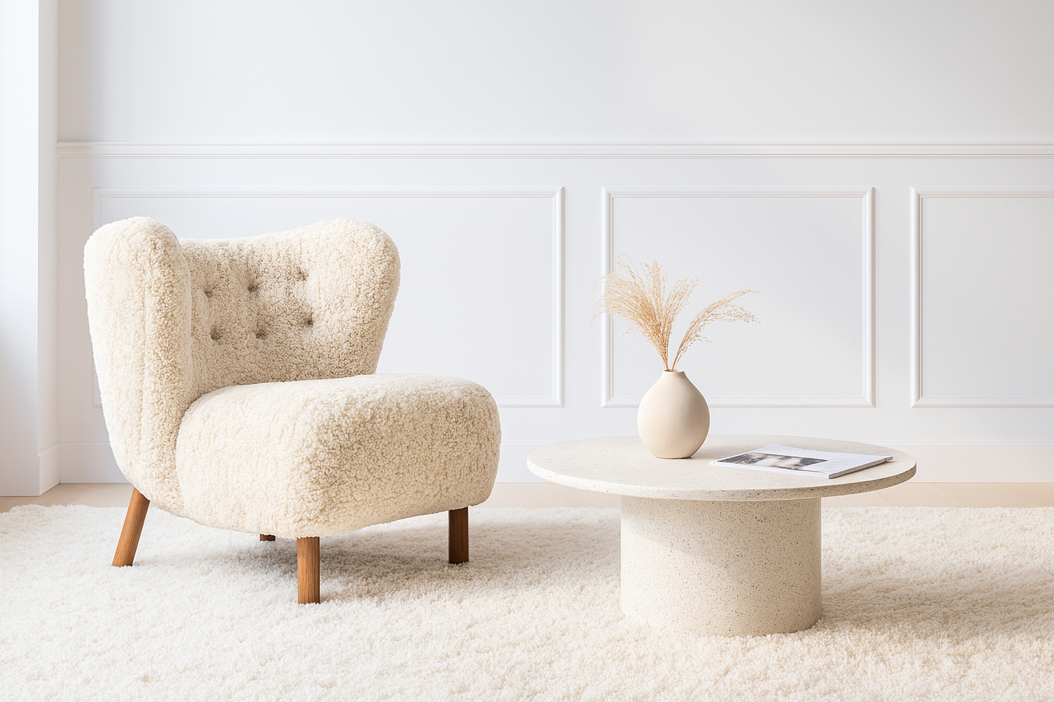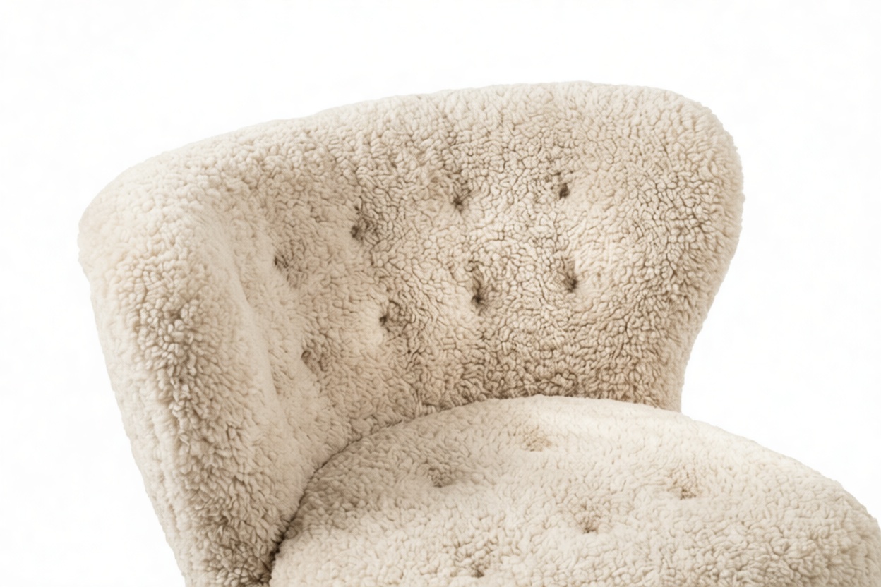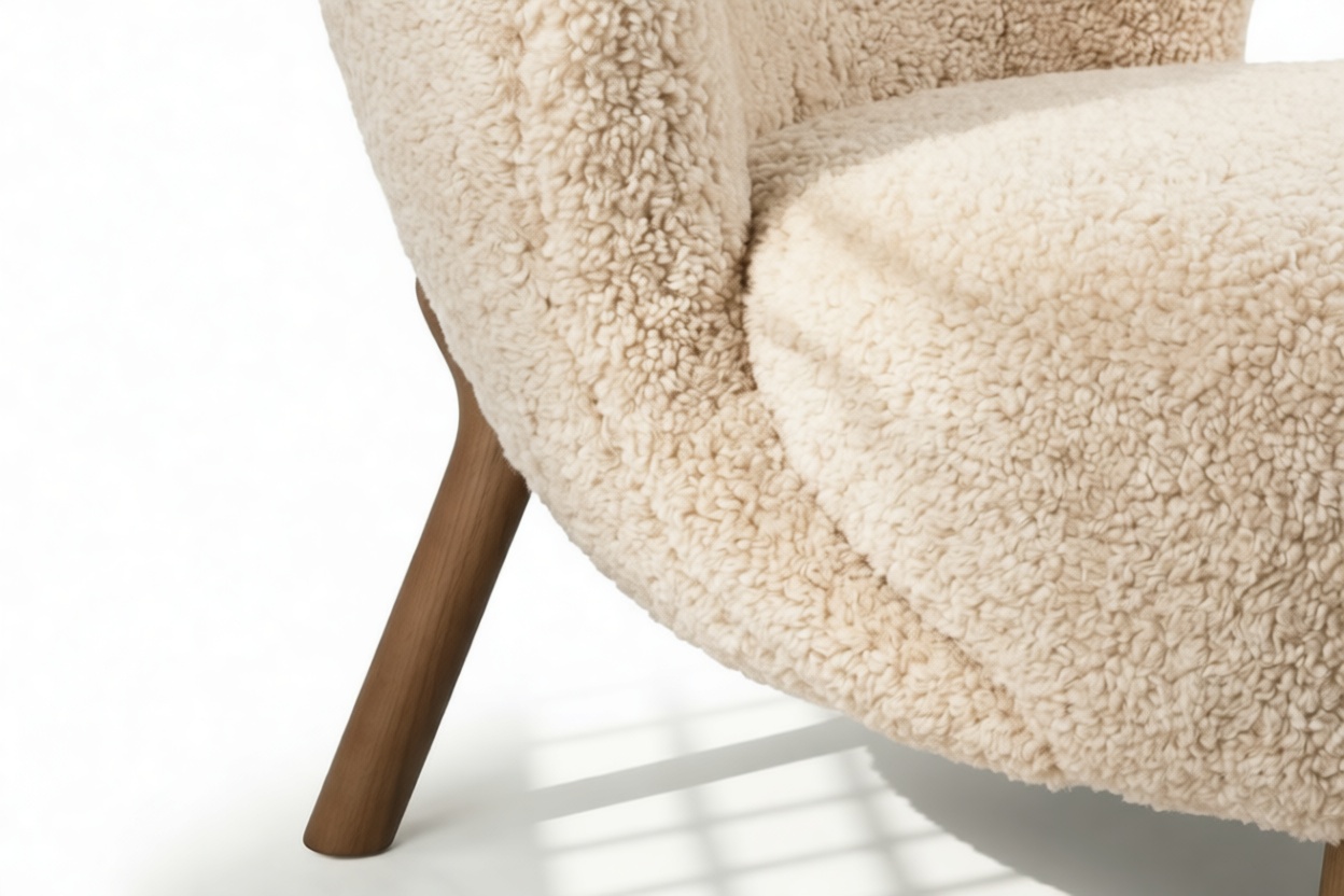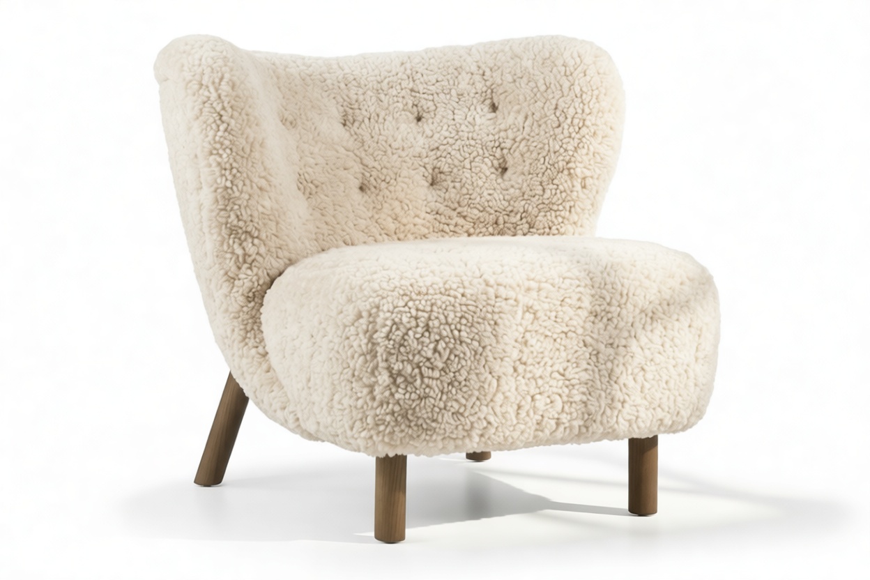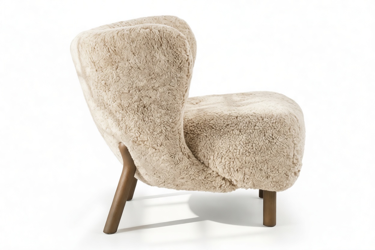 Wrapped in sumptuous sheepskin, the Little Petra Chair provides an incredibly snug and inviting lounging experience.