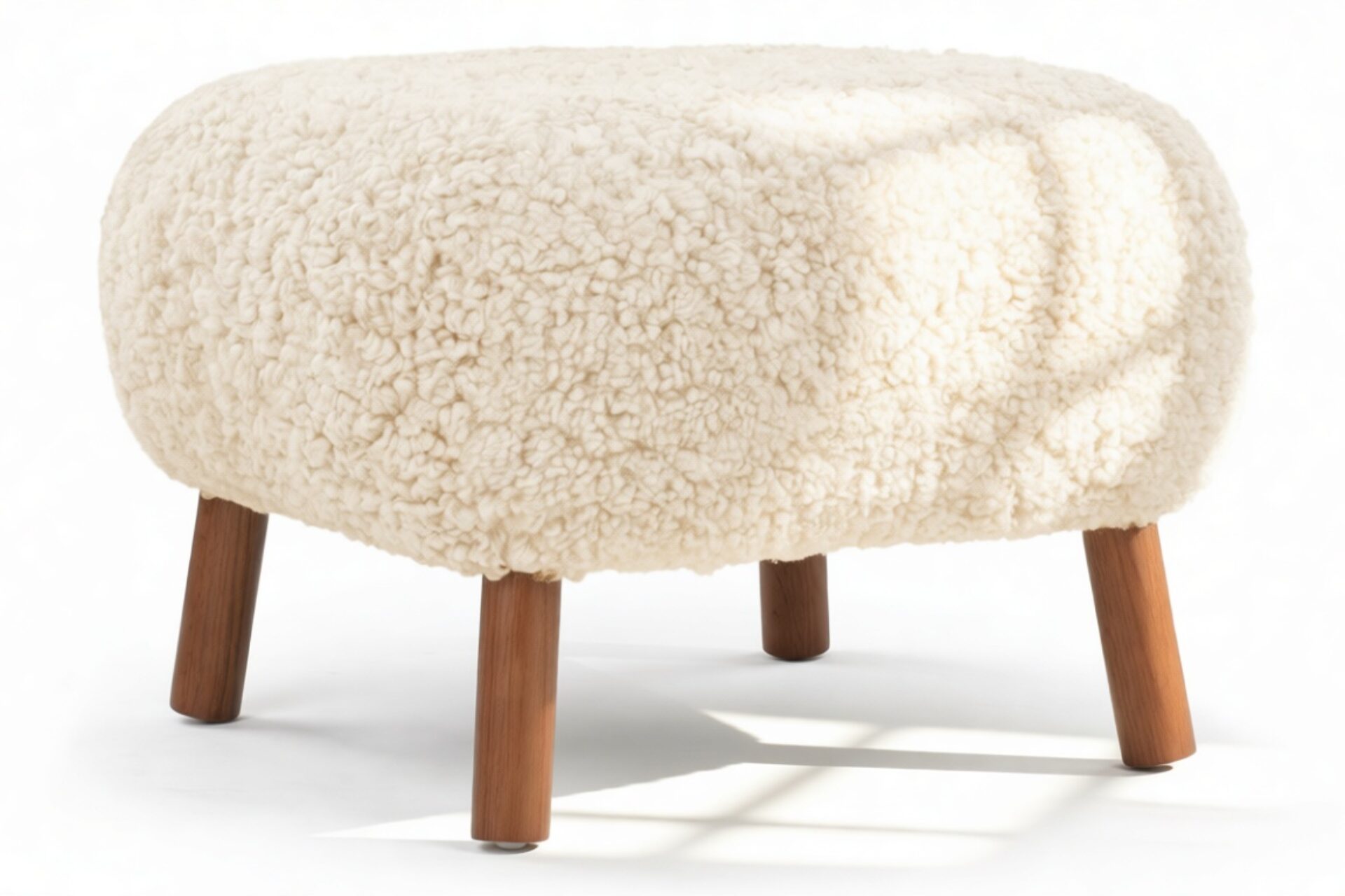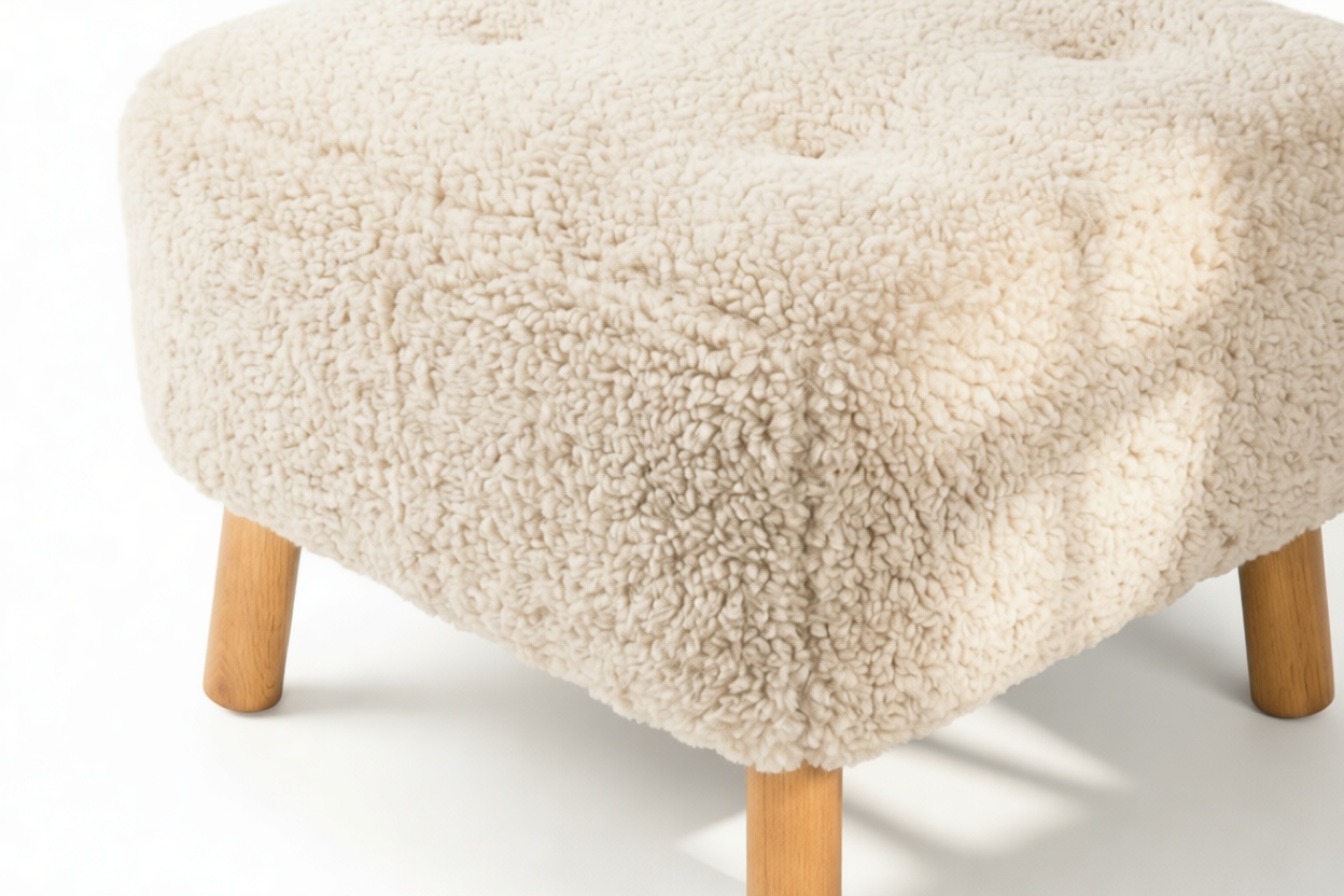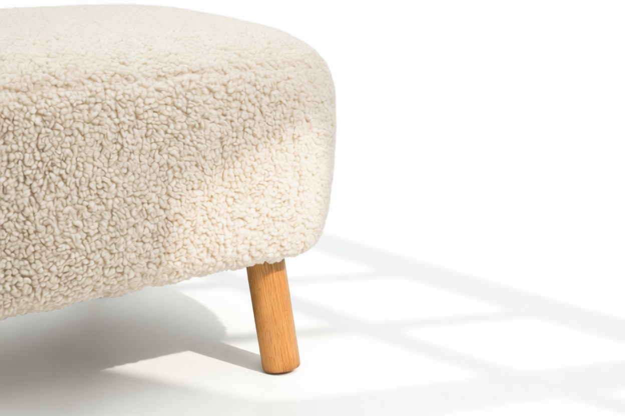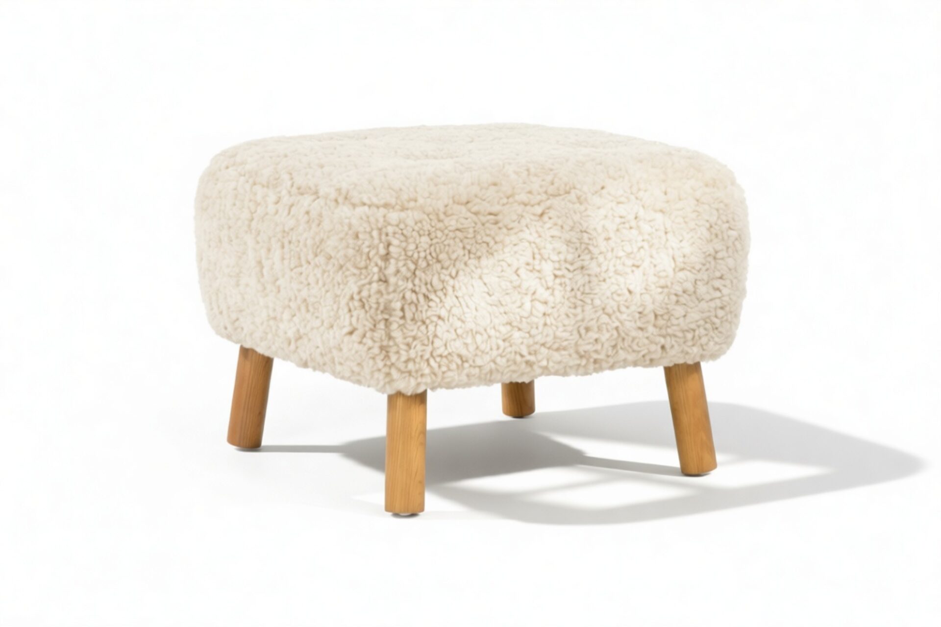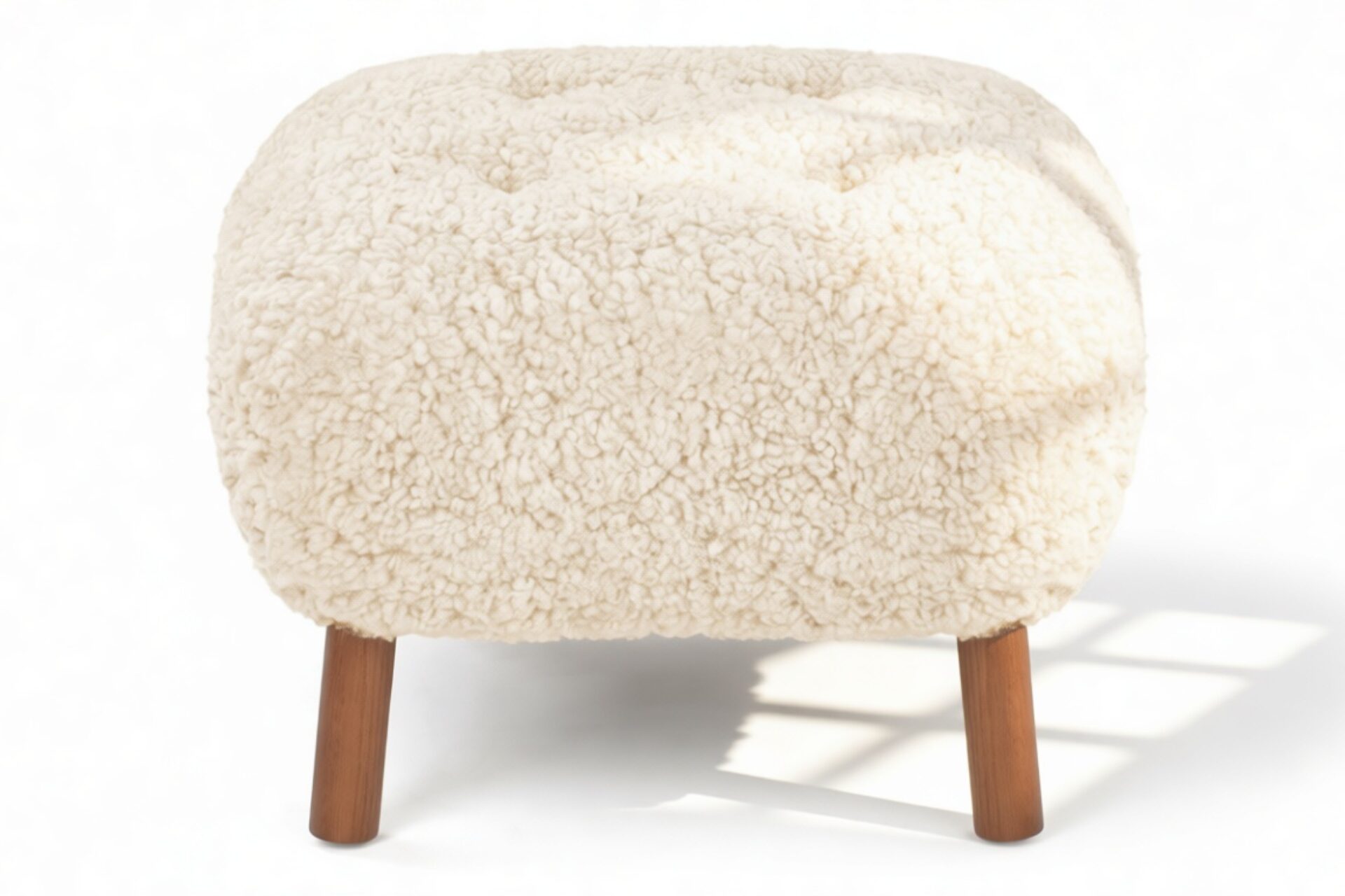 Elevate your seating experience with the Little Petra Ottoman, mirroring the chic aesthetics of the renowned Little Petra lounge chair. Crafted with a sturdy beech and plywood frame and enveloped in luxurious Natural Luxe Sheepskin, this opulent ottoman offers indulgent softness and warmth. Use it as a footstool or extra seating to enhance your space with style and comfort.