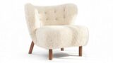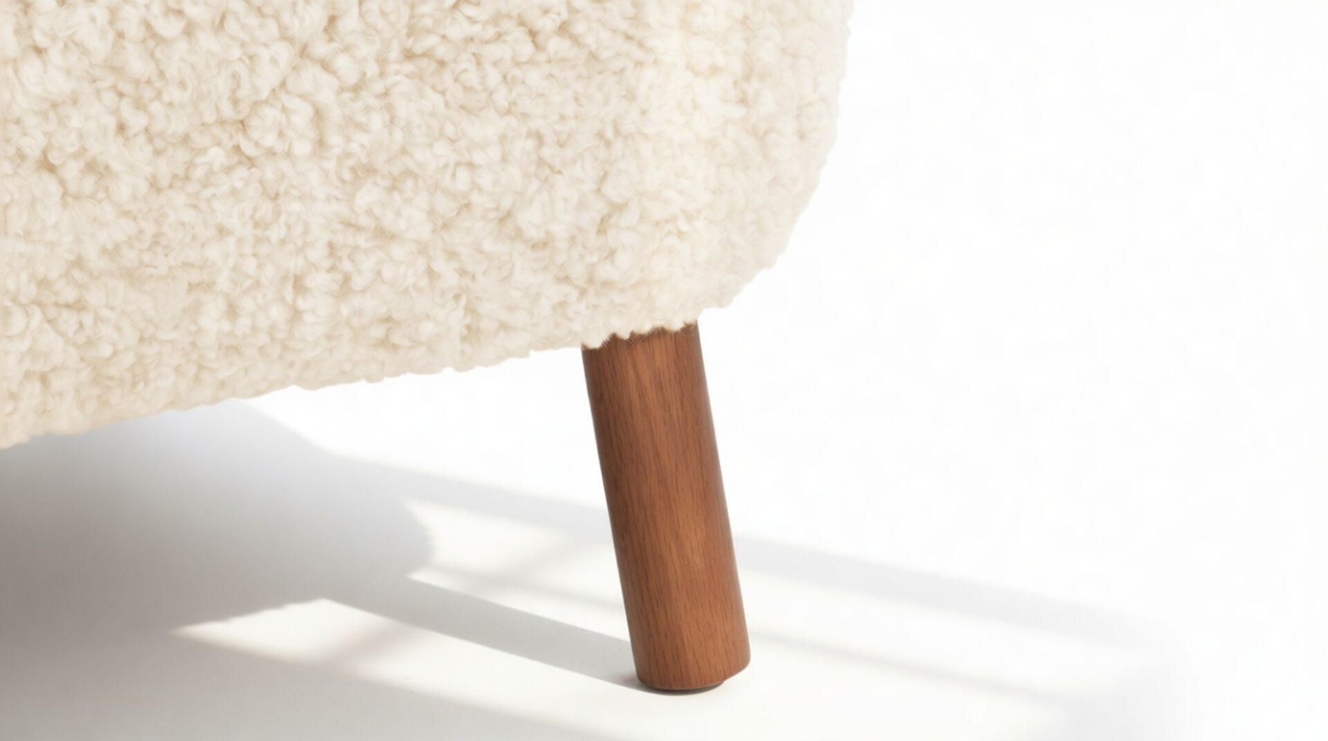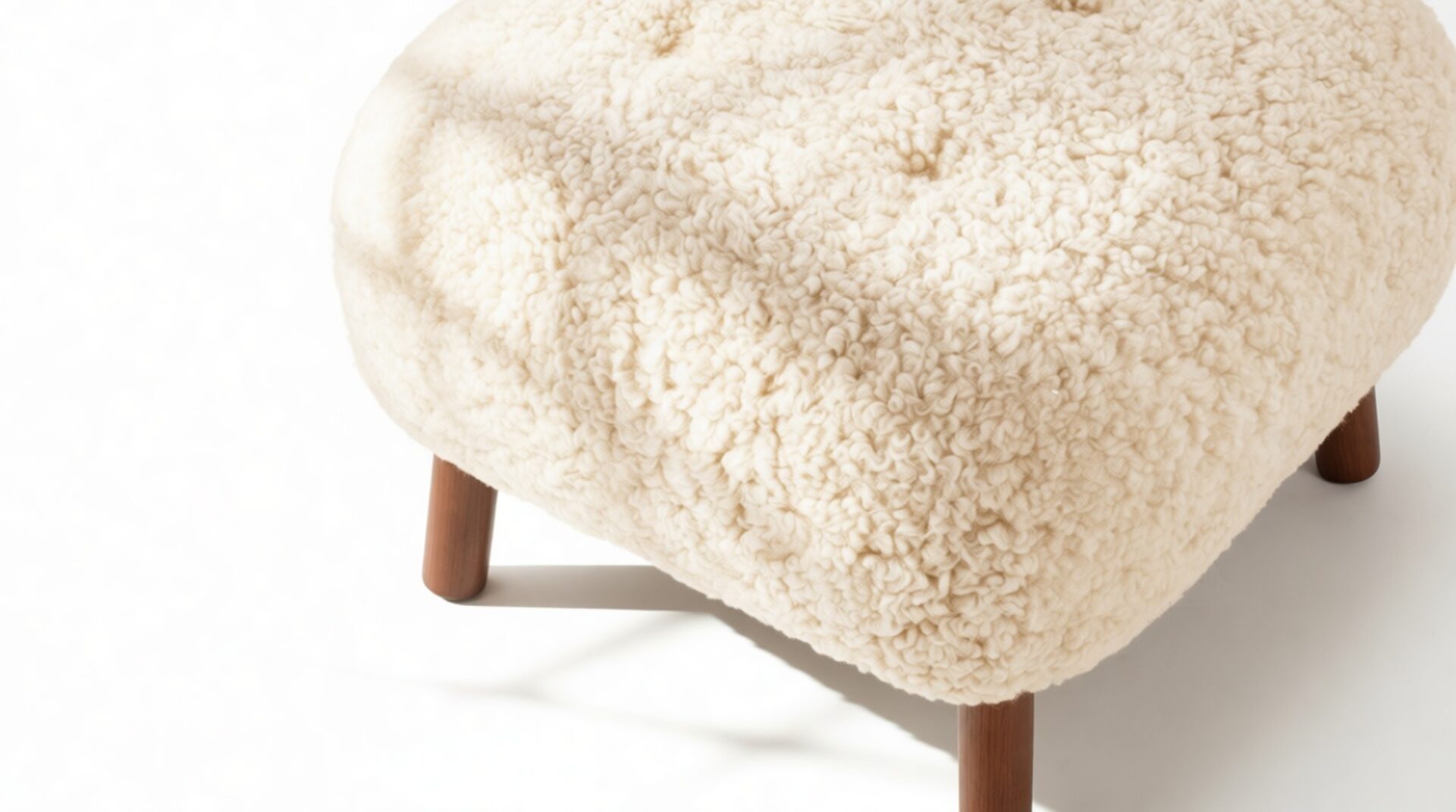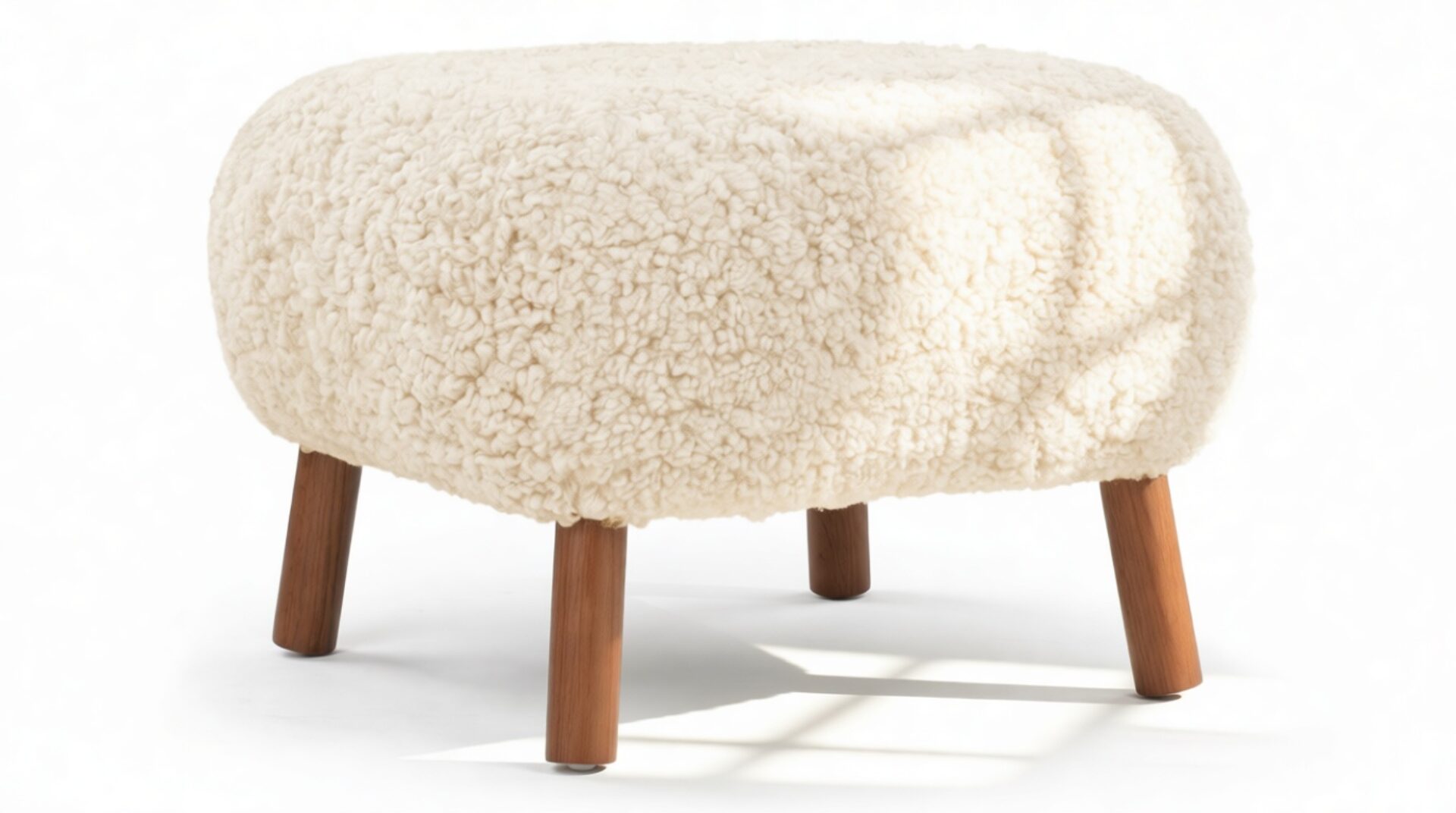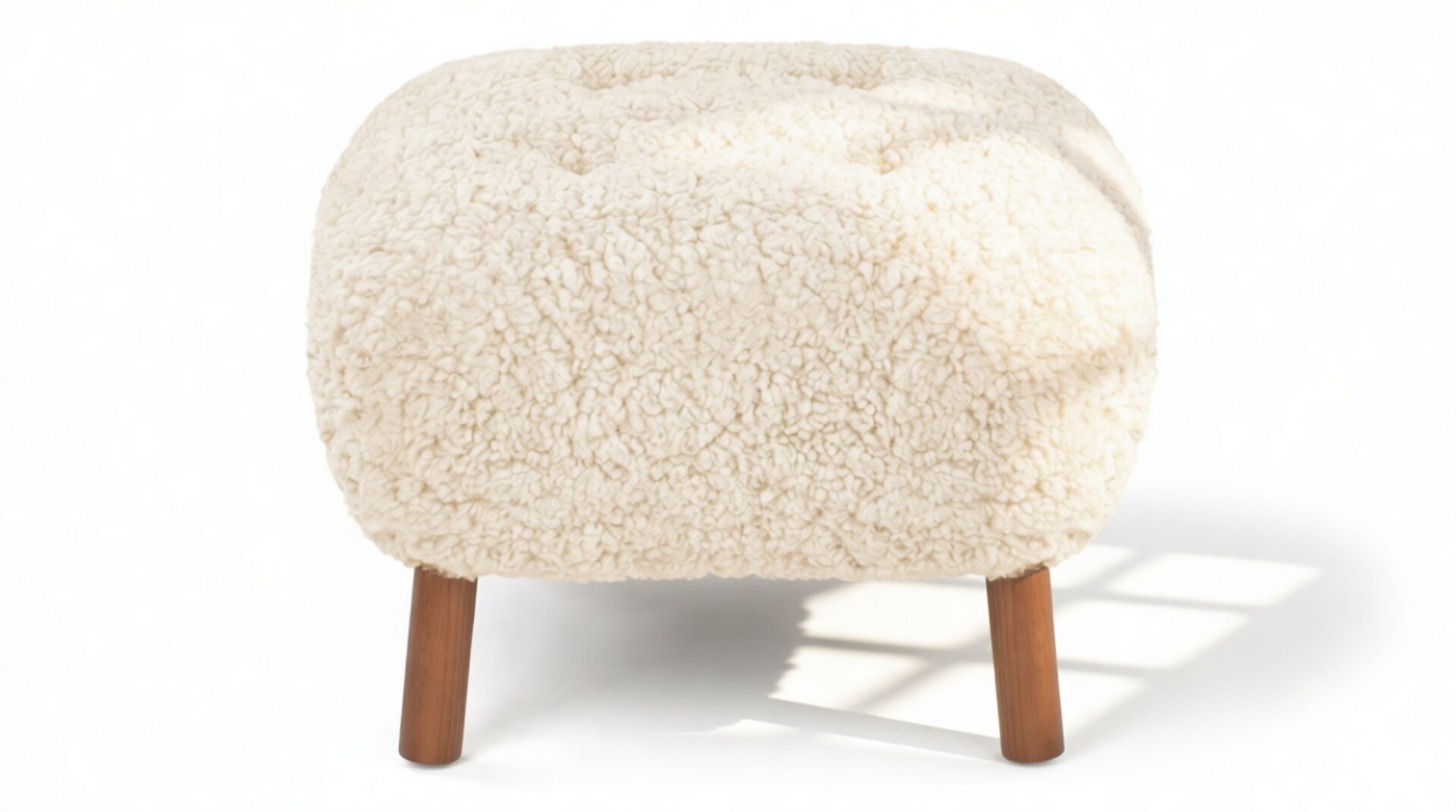 Crafted with a sturdy beech and plywood frame, the Little Petra Ottoman is enveloped in HR foam and polyester wadding, then luxuriously wrapped in Luxe Sheepskin. It serves as the perfect snug companion to the Lounge Chair or stands elegantly as a chic stool by itself.