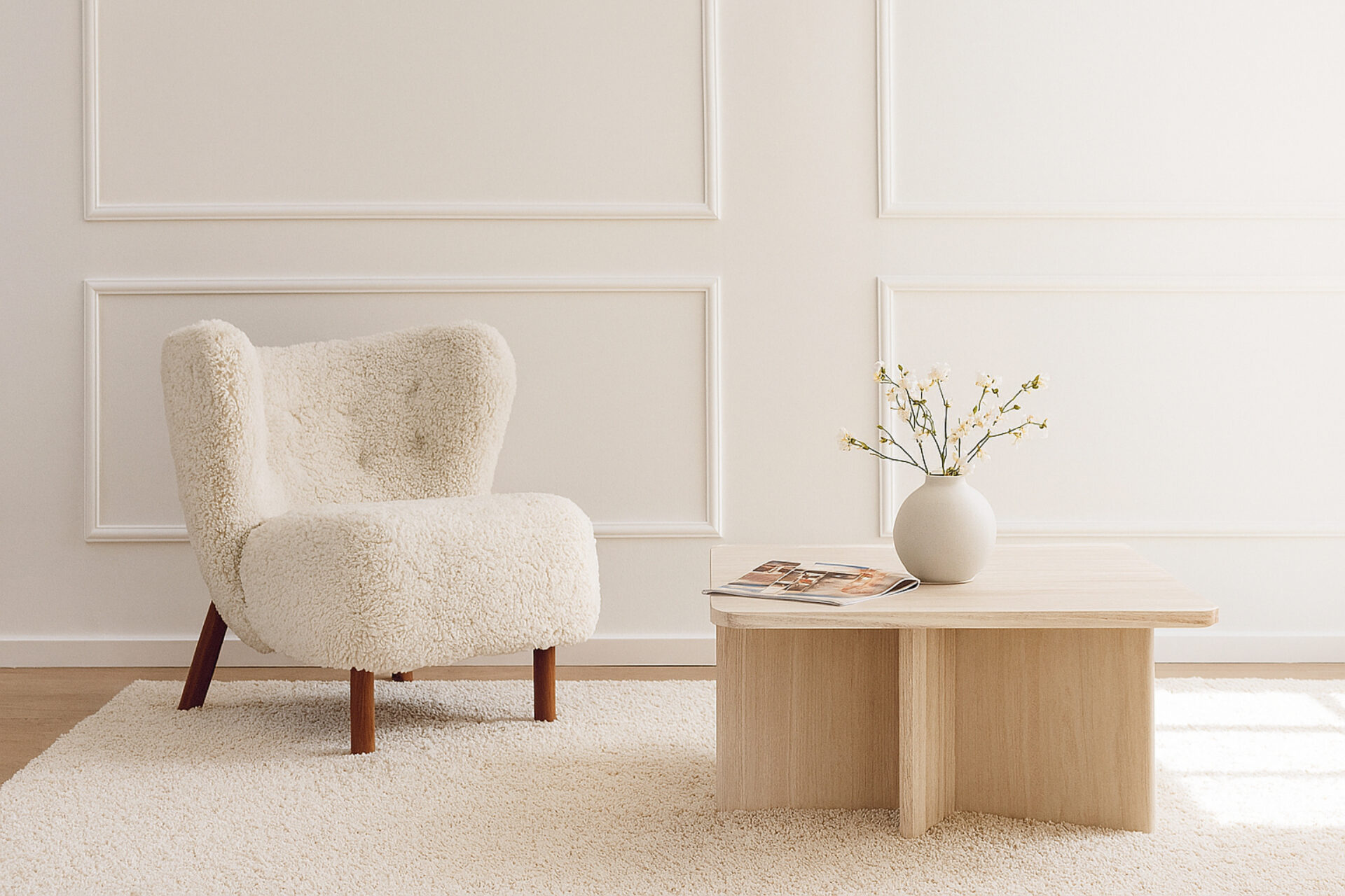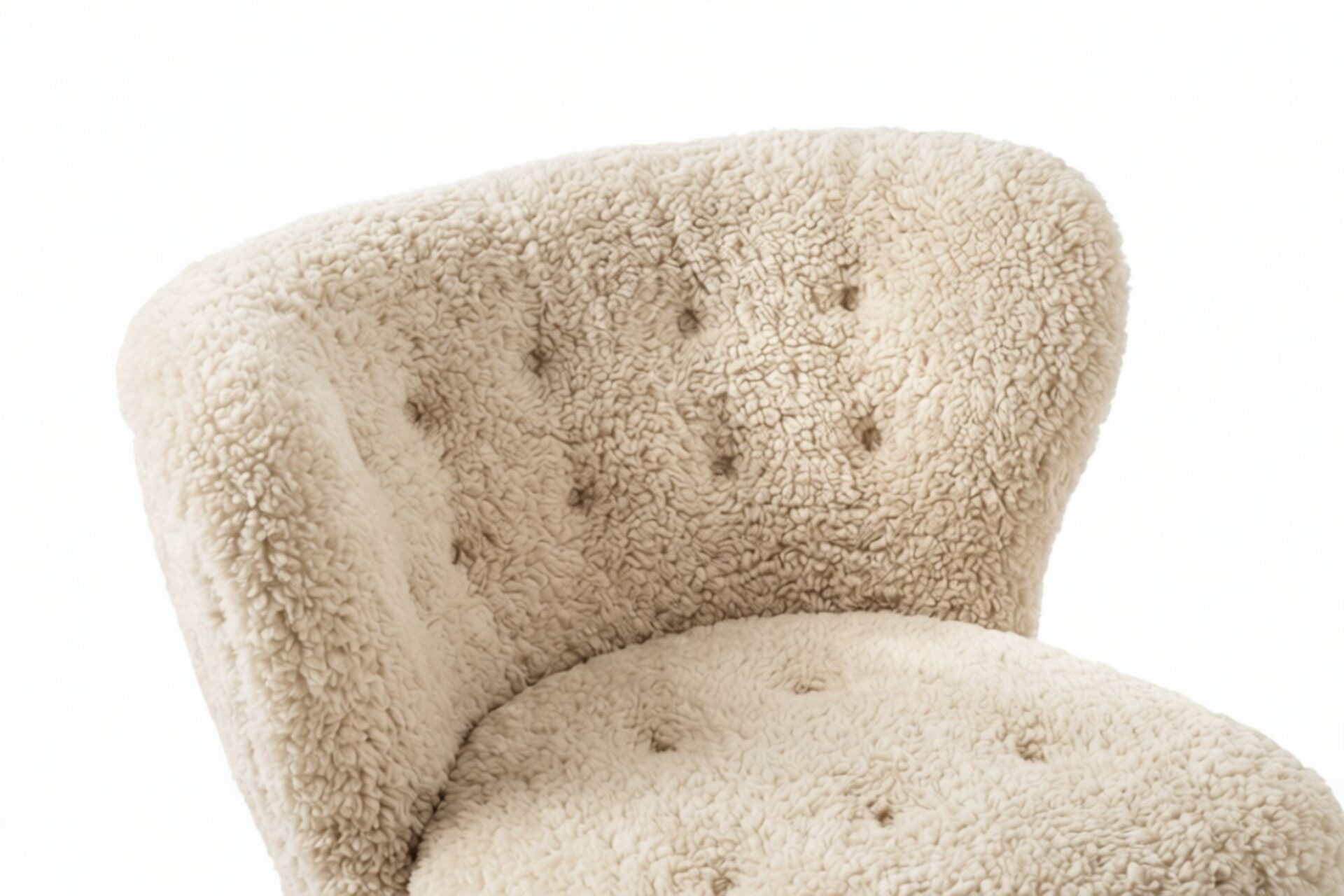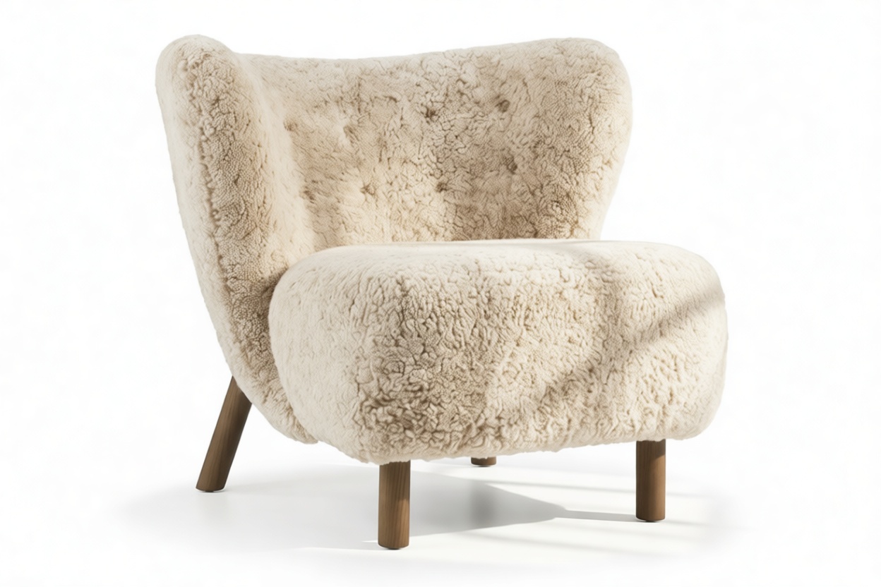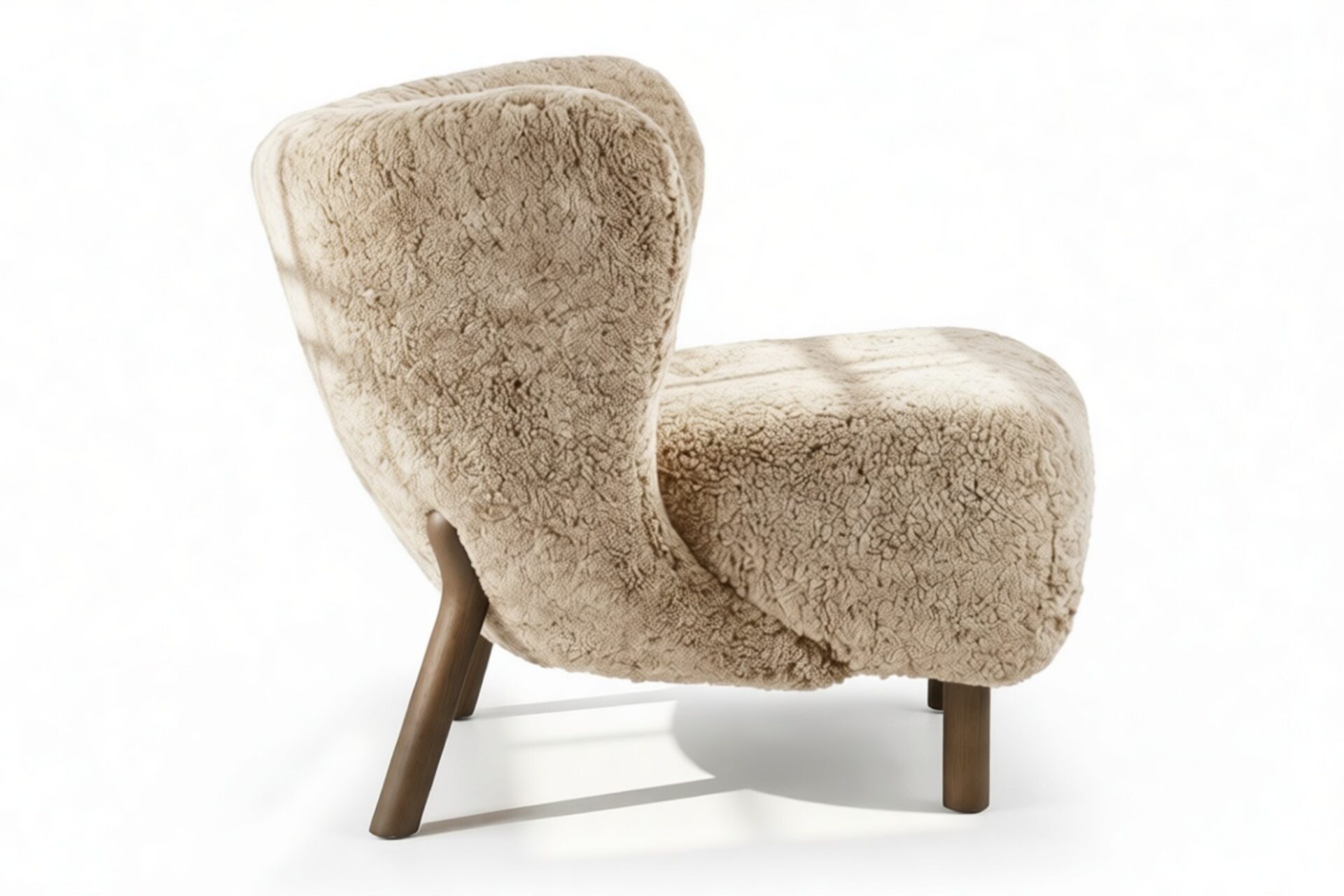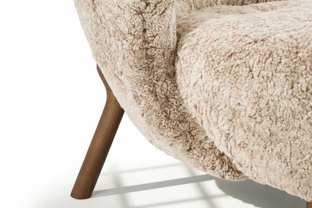 Wrapped in sumptuous vegan sheepskin, the Little Petra Chair provides an indulgently cozy and comfortable lounging experience.