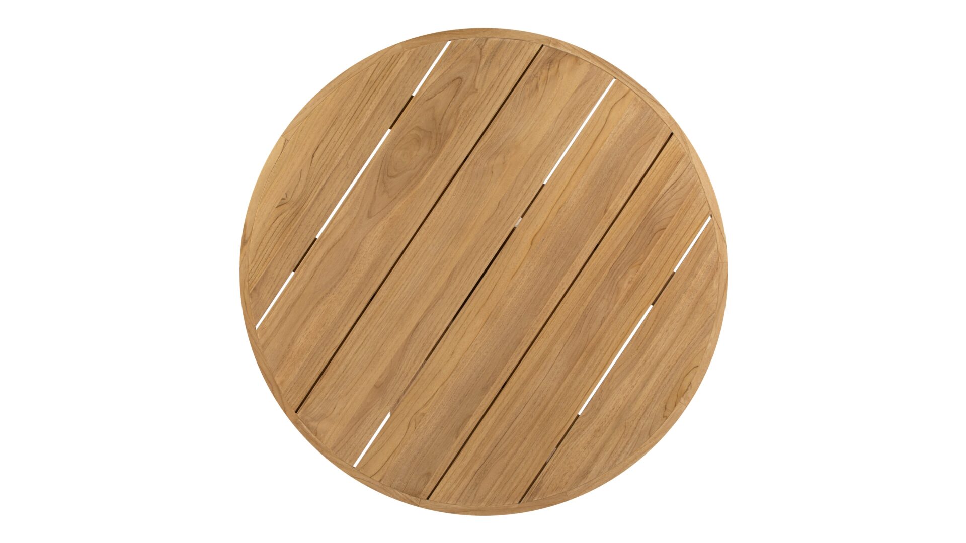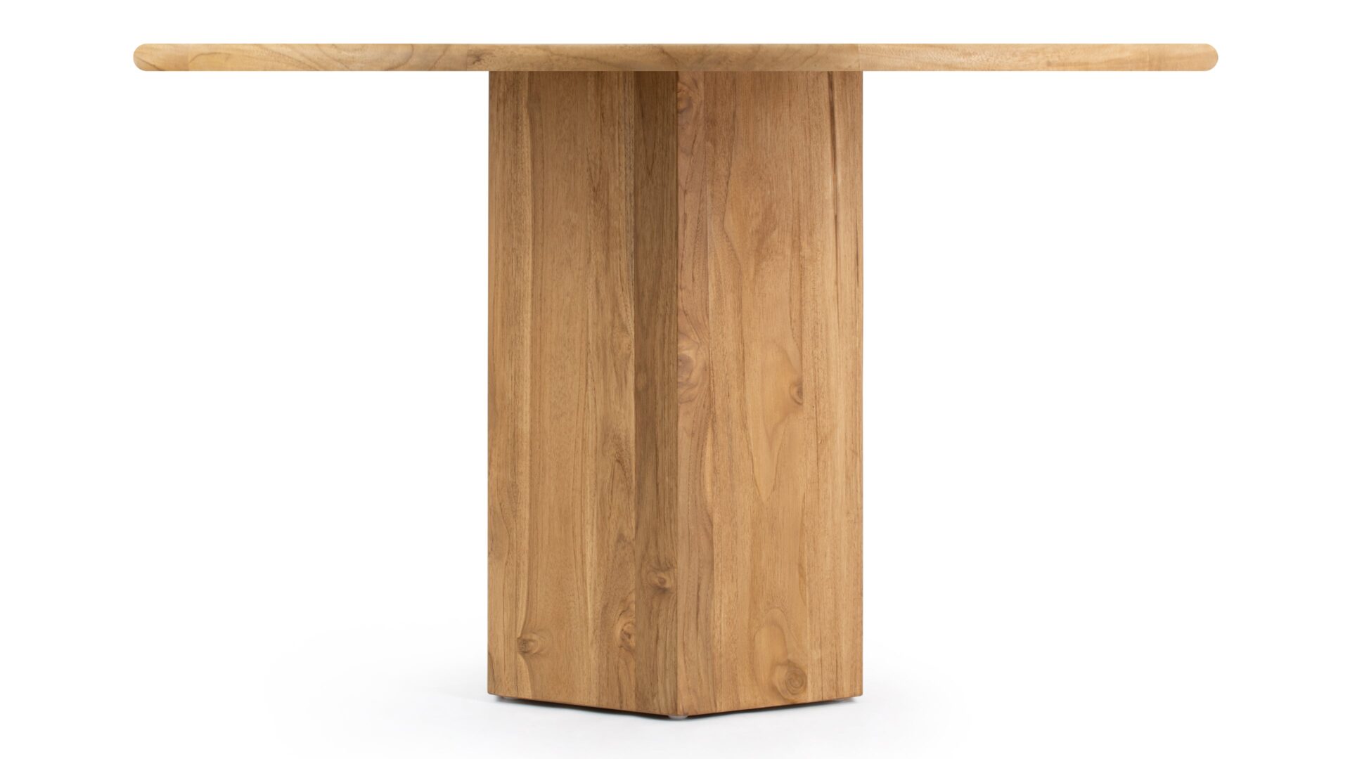 Featuring the rich allure of authentic teak wood, the "table" presents a circular, plank-style tabletop complemented by a robust pedestal base for a harmonious, understated aesthetic. Offered in both natural and walnut-stained variations, it introduces a touch of rustic sophistication to any room.