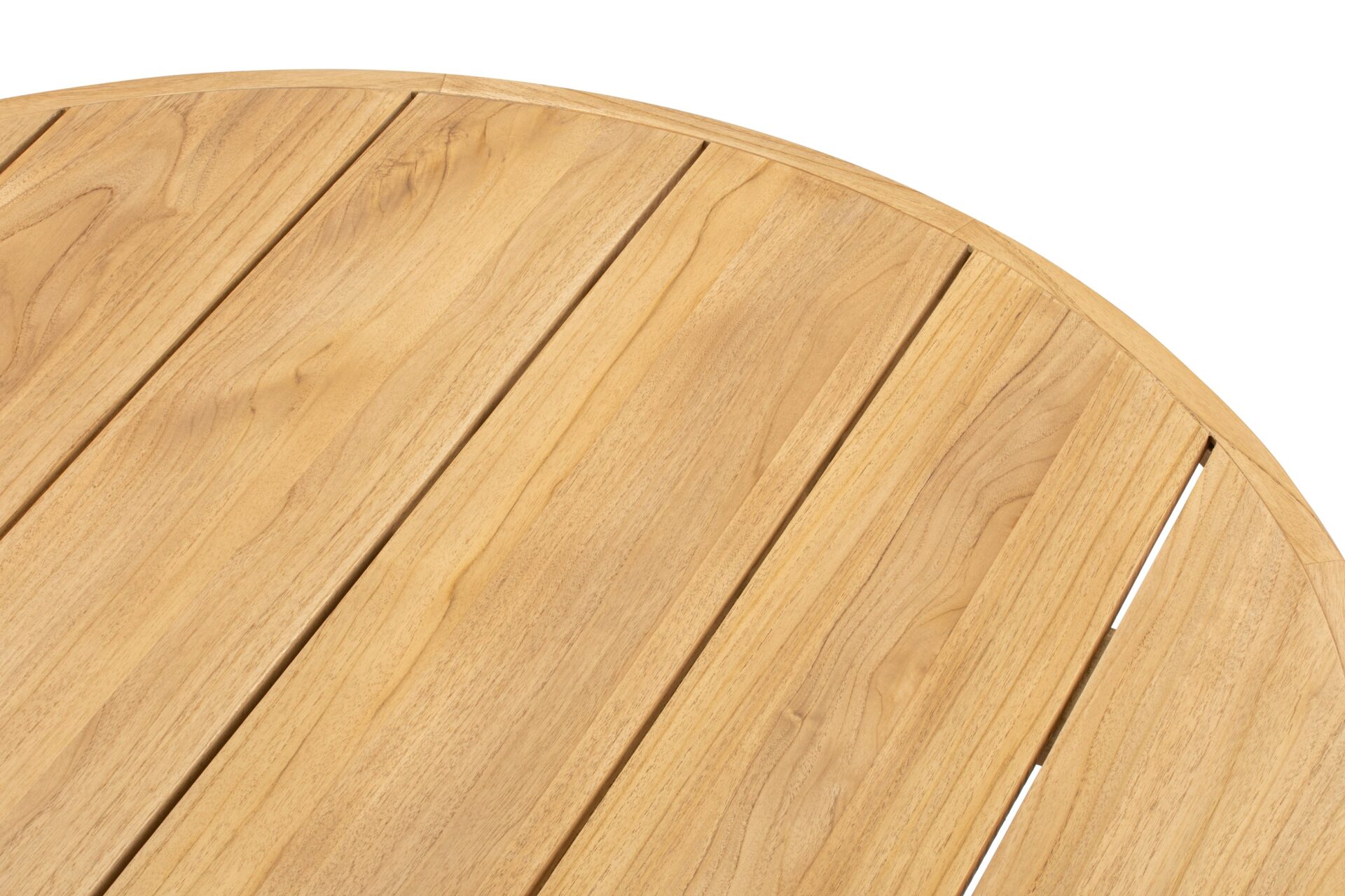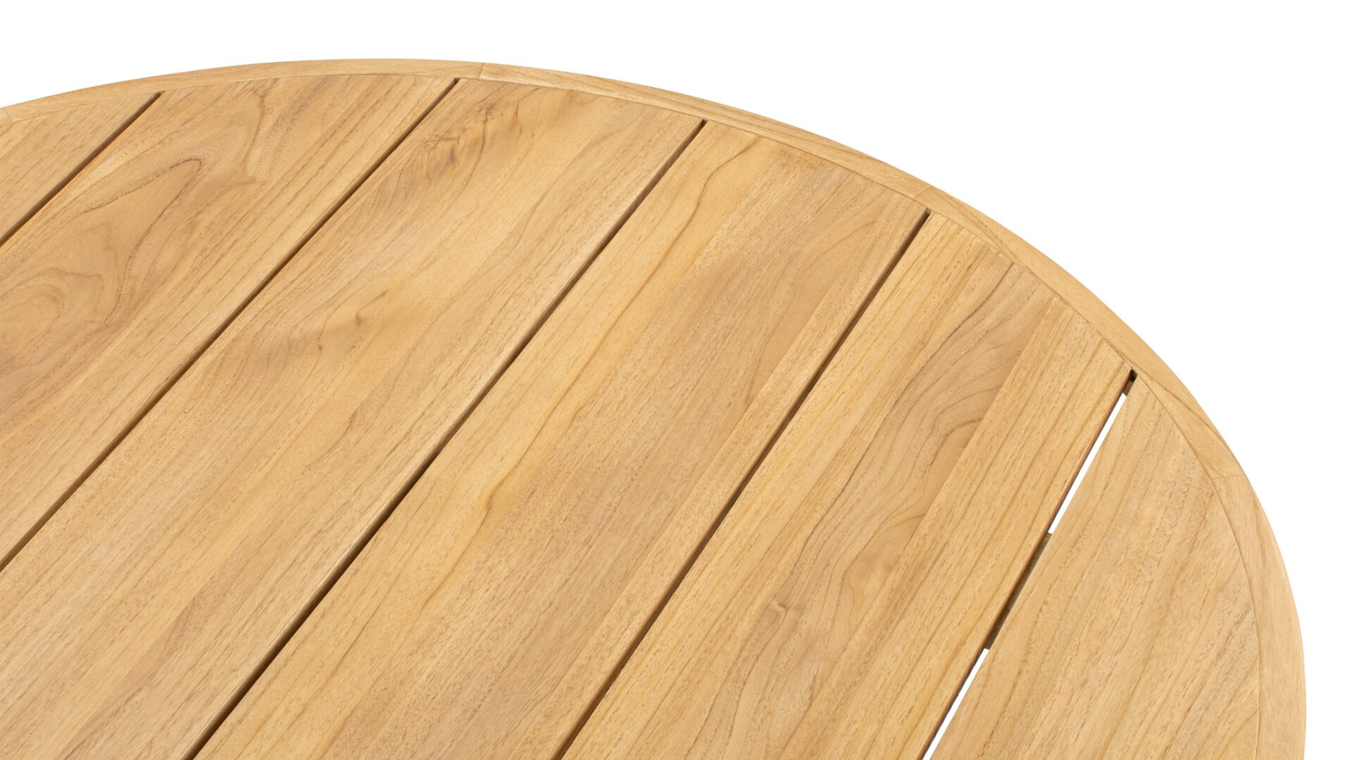 Elevate your outdoor dining experience with the Lotus Dining Table in Natural Teak. Crafted from sturdy teak wood, it offers longevity and robustness for patios, terraces, and gardens. The circular tabletop boasts a rustic plank-style grain, while the reliable pedestal base exudes a sleek minimalist allure. Seating four to six comfortably, this mid-sized dining table combines style with practicality, promising lasting beauty with its innate resistance to moisture and decay. Perfect for bringing a touch of authentic nature to any outdoor space.