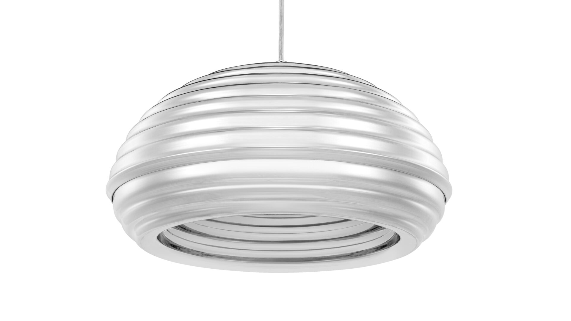 Elevate any space with the impactful height of the Lucia Pendant Lamp. Featuring a vintage futuristic style, it effortlessly combines mid-century modern and industrial elements, adding a touch of personality to any interior. The unique ribbed dome design creates a striking statement whether hung singularly or arranged in a trio. Brighten up your master suites, kitchens, hallways, and more with the durable, artisan-crafted aluminum body of the Lucia Pendant Lamp.