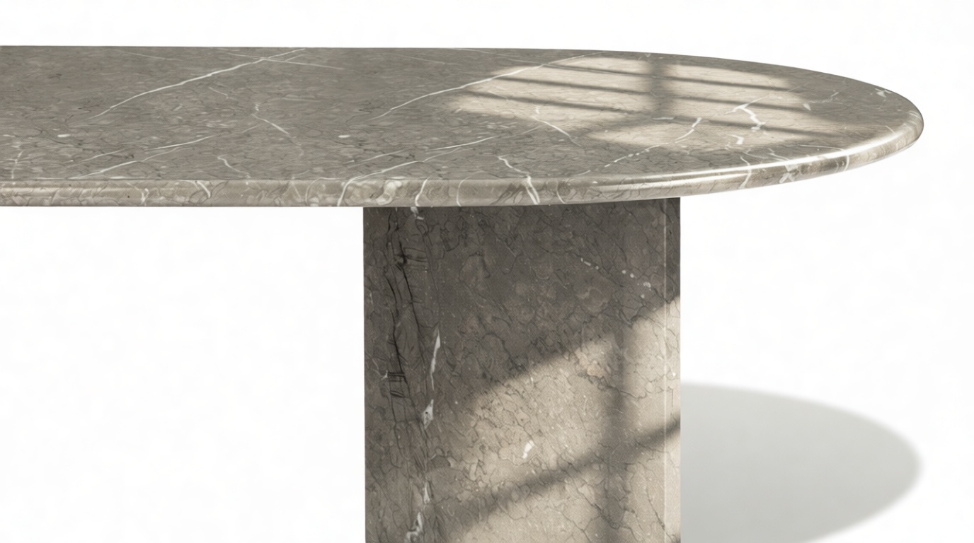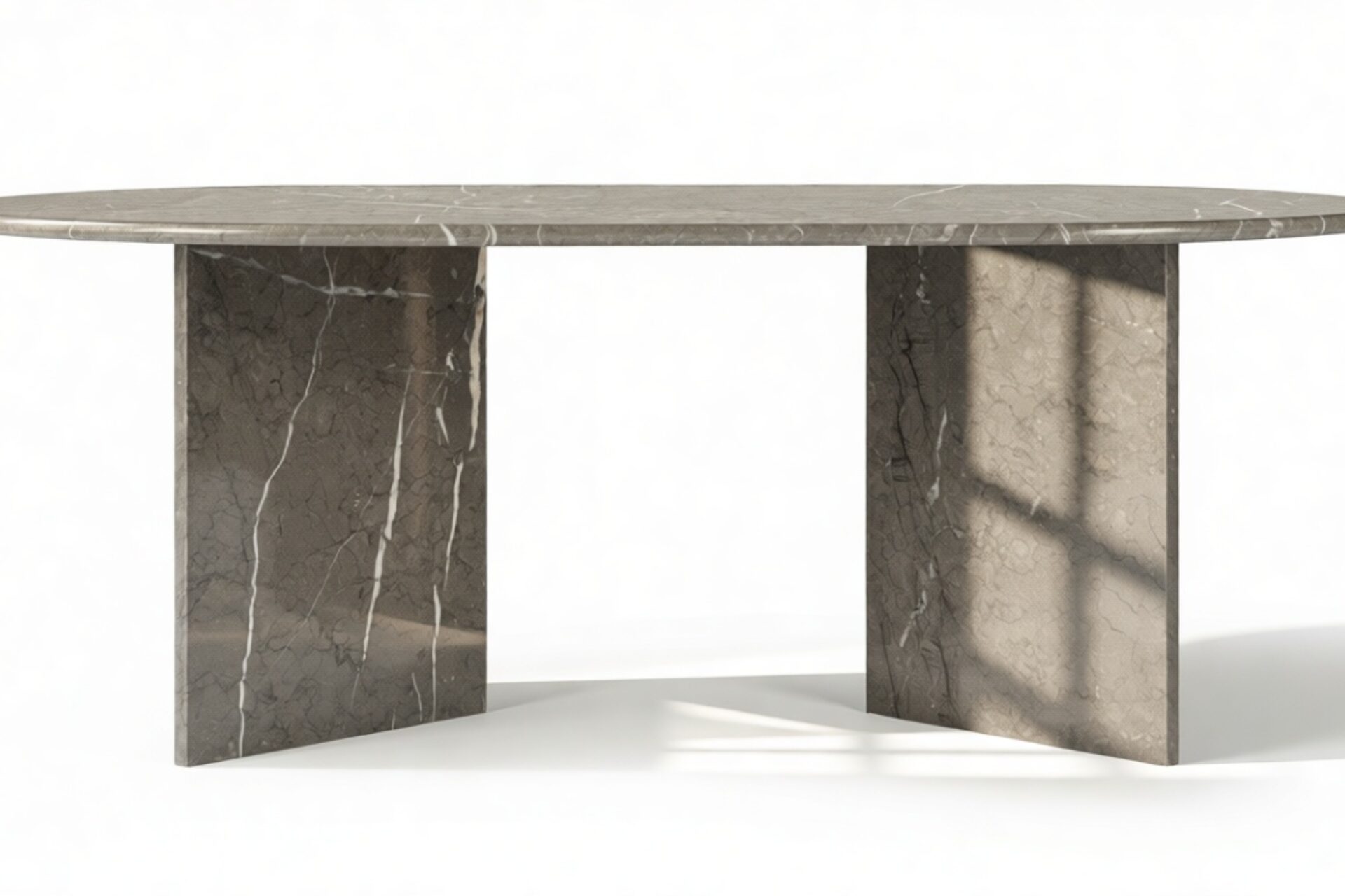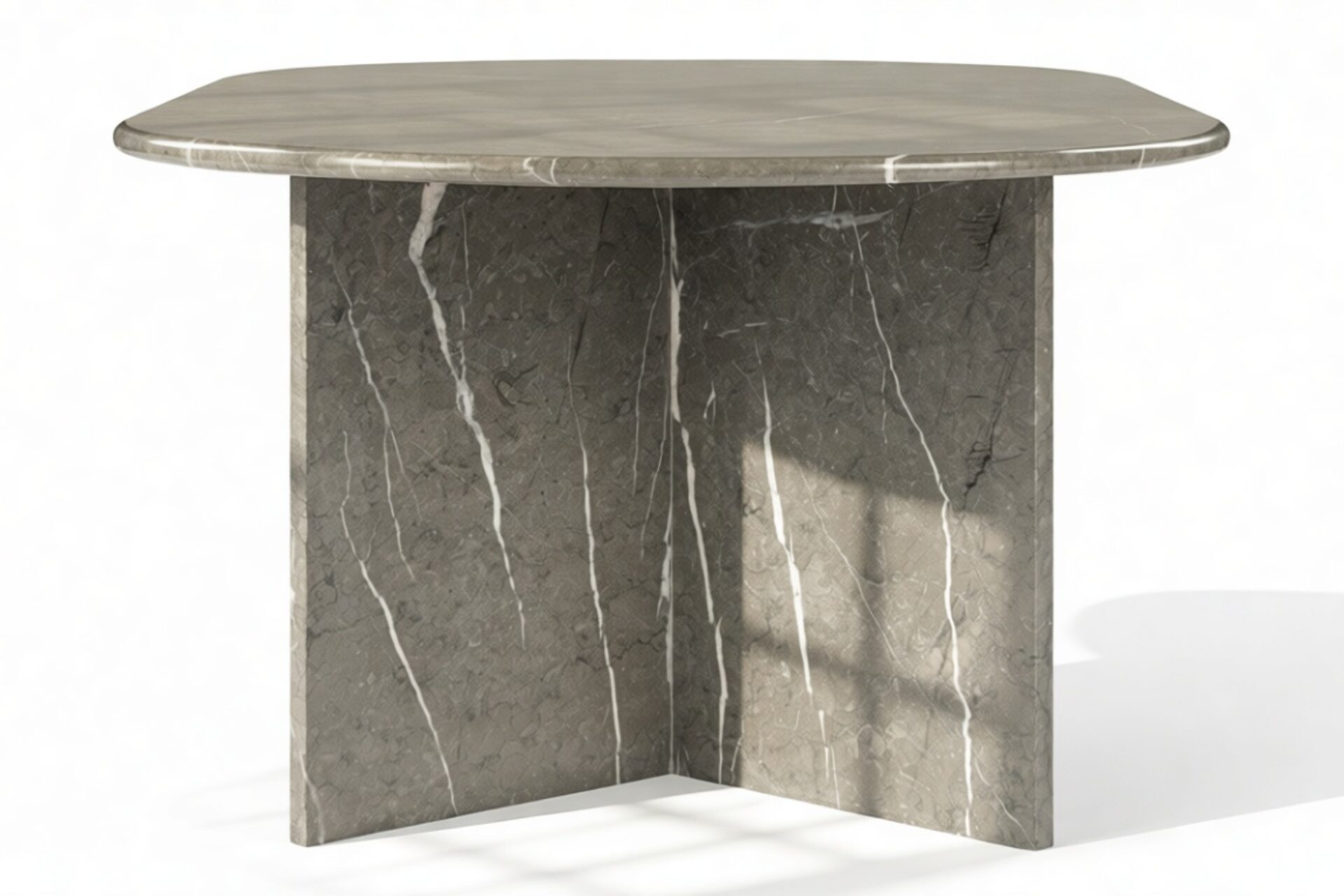 The juxtaposition of the angular, block base with the elegant, round top creates a harmonious and sophisticated design that accentuates the innate beauty of the materials of the Olivia.