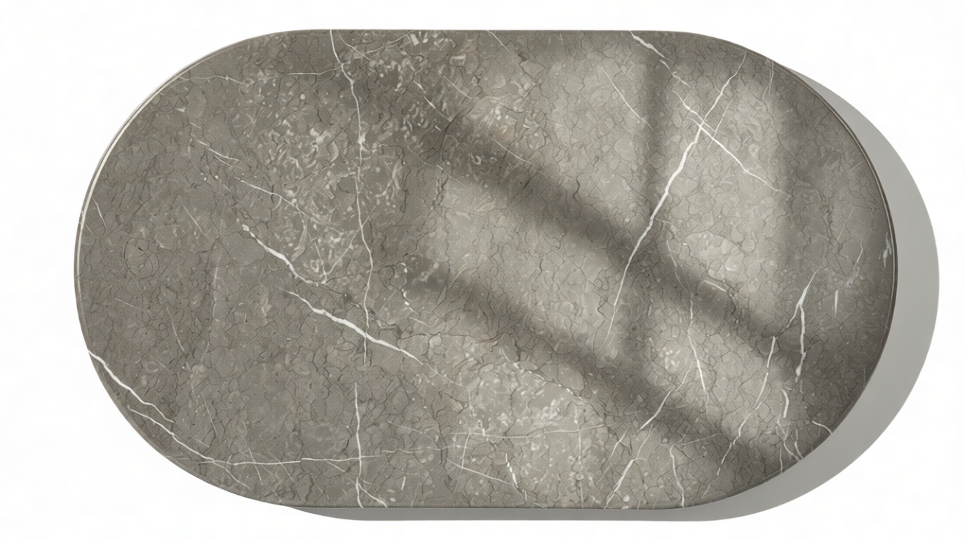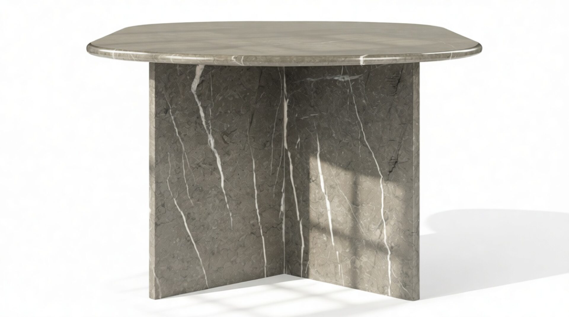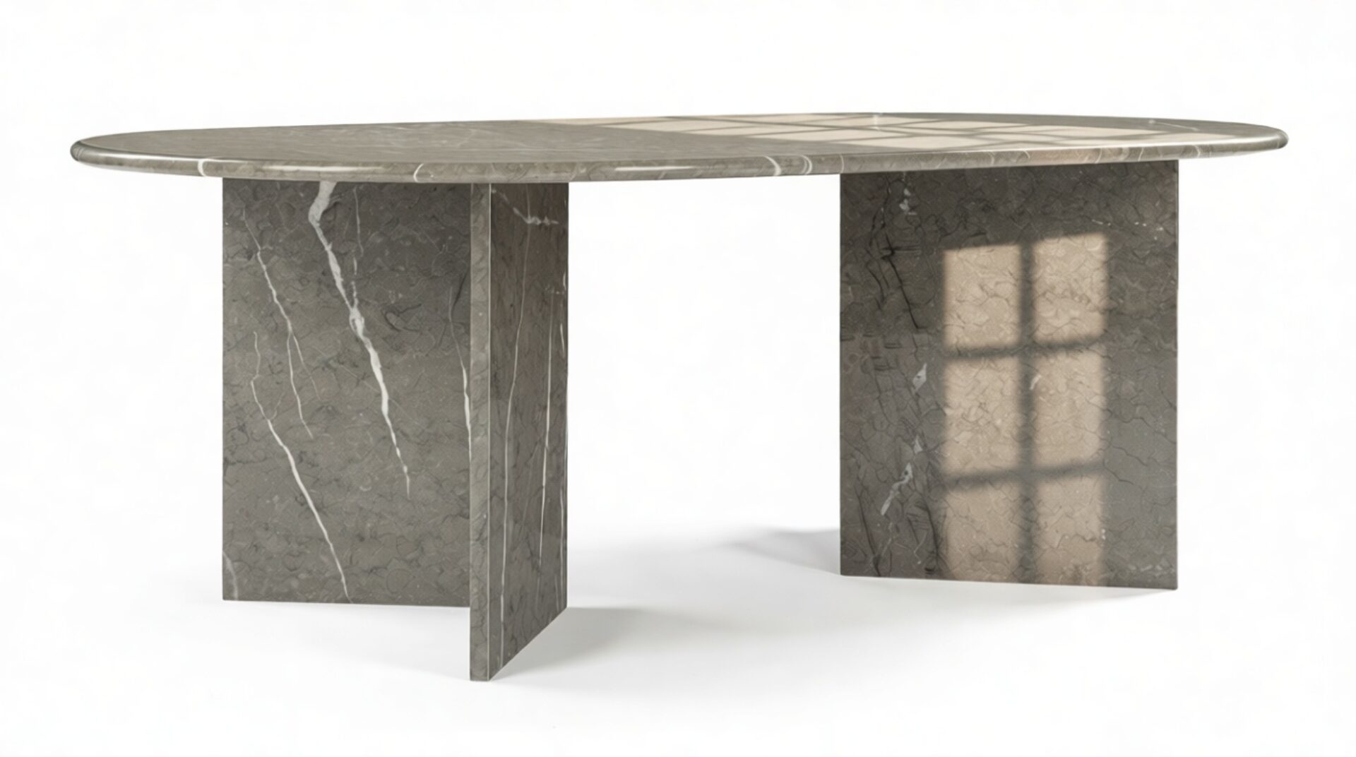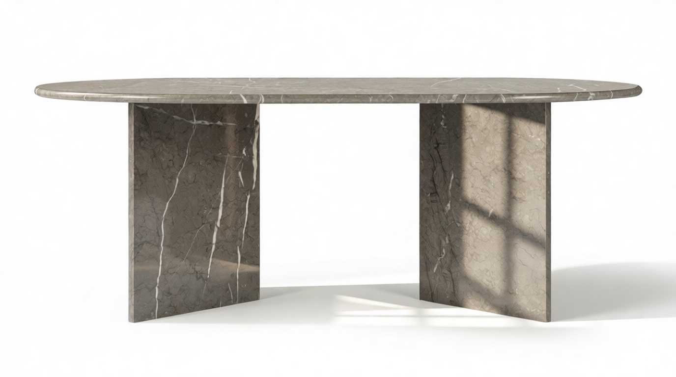 The juxtaposition of the angular, block base with the elegant, round top creates a harmonious and sophisticated design that accentuates the innate beauty of the materials of the Olivia.