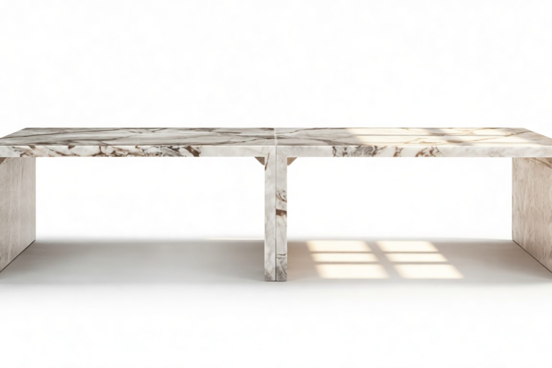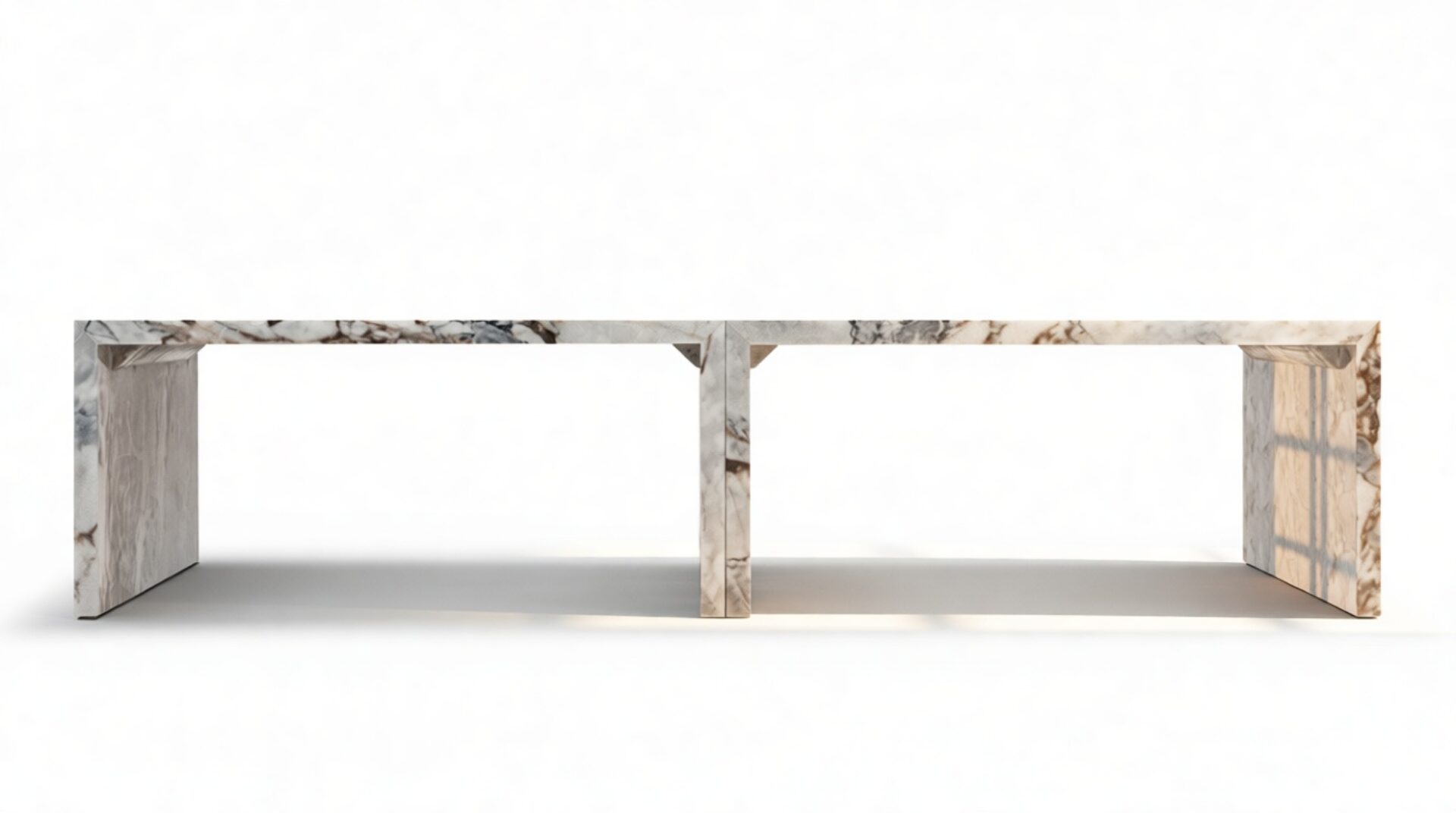 In spite of its generous surface area, the Luna Coffee Table radiates an airy and sophisticated aura. This visual lightness is accomplished through its intricately crafted silhouette. The slim marble slabs are expertly arranged to form a framework that exudes both fragility and robustness.