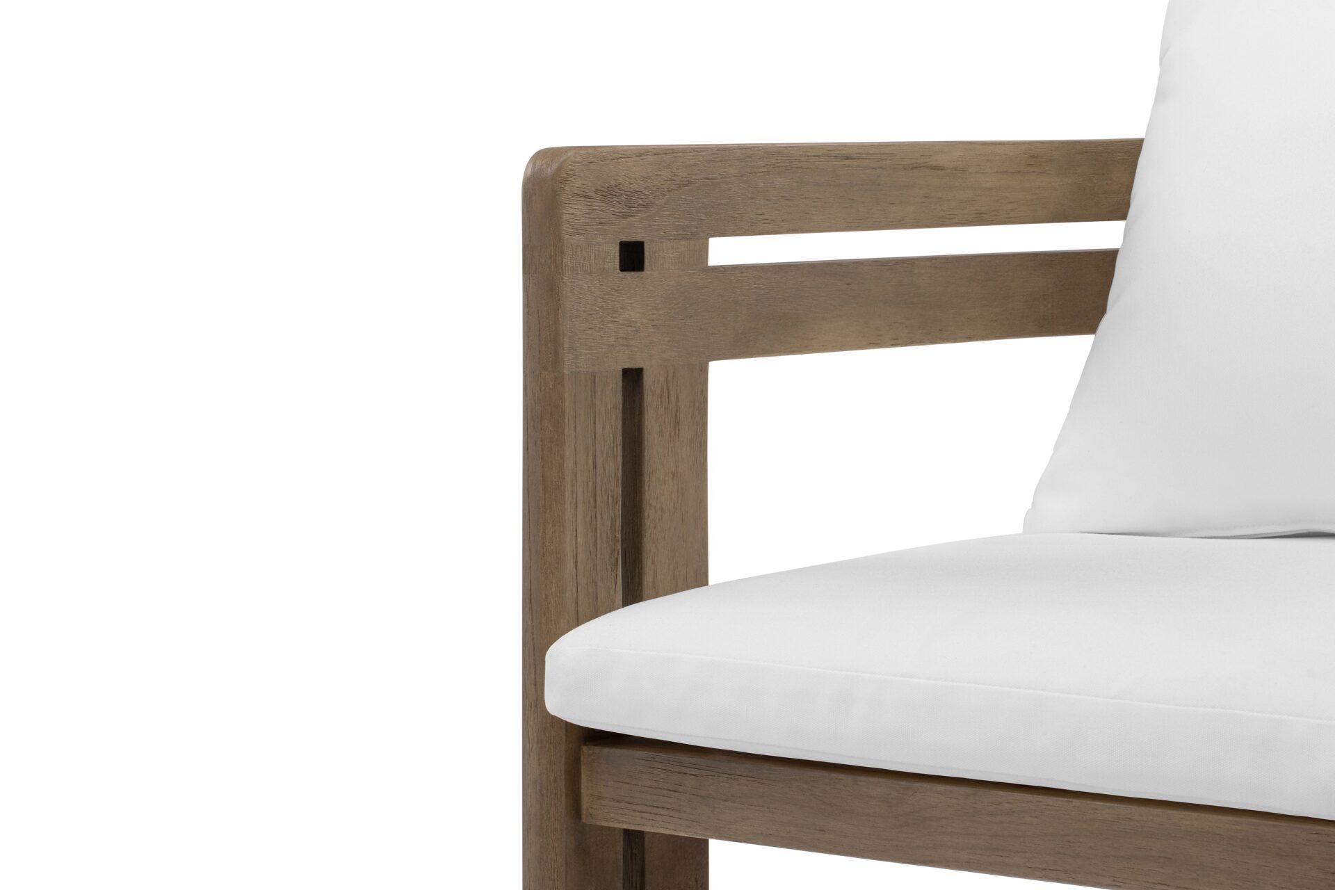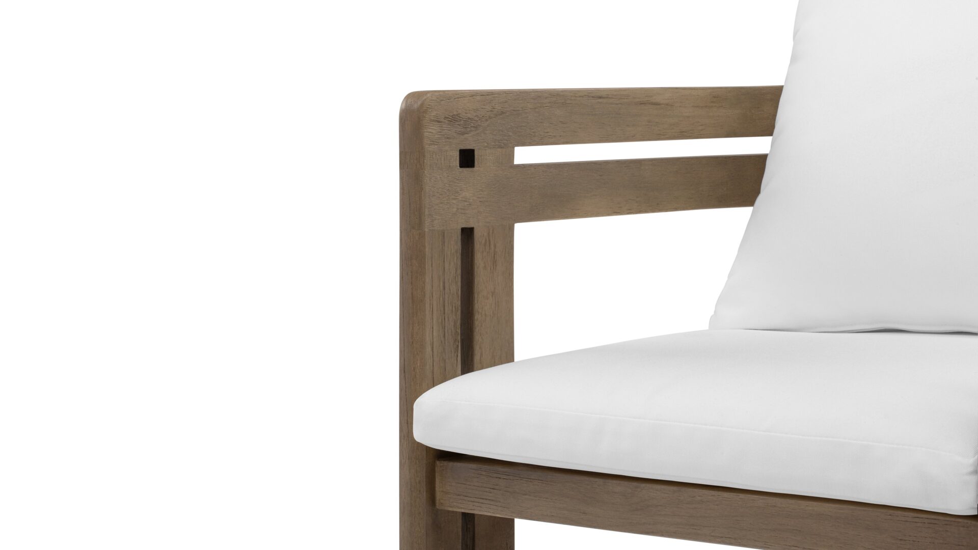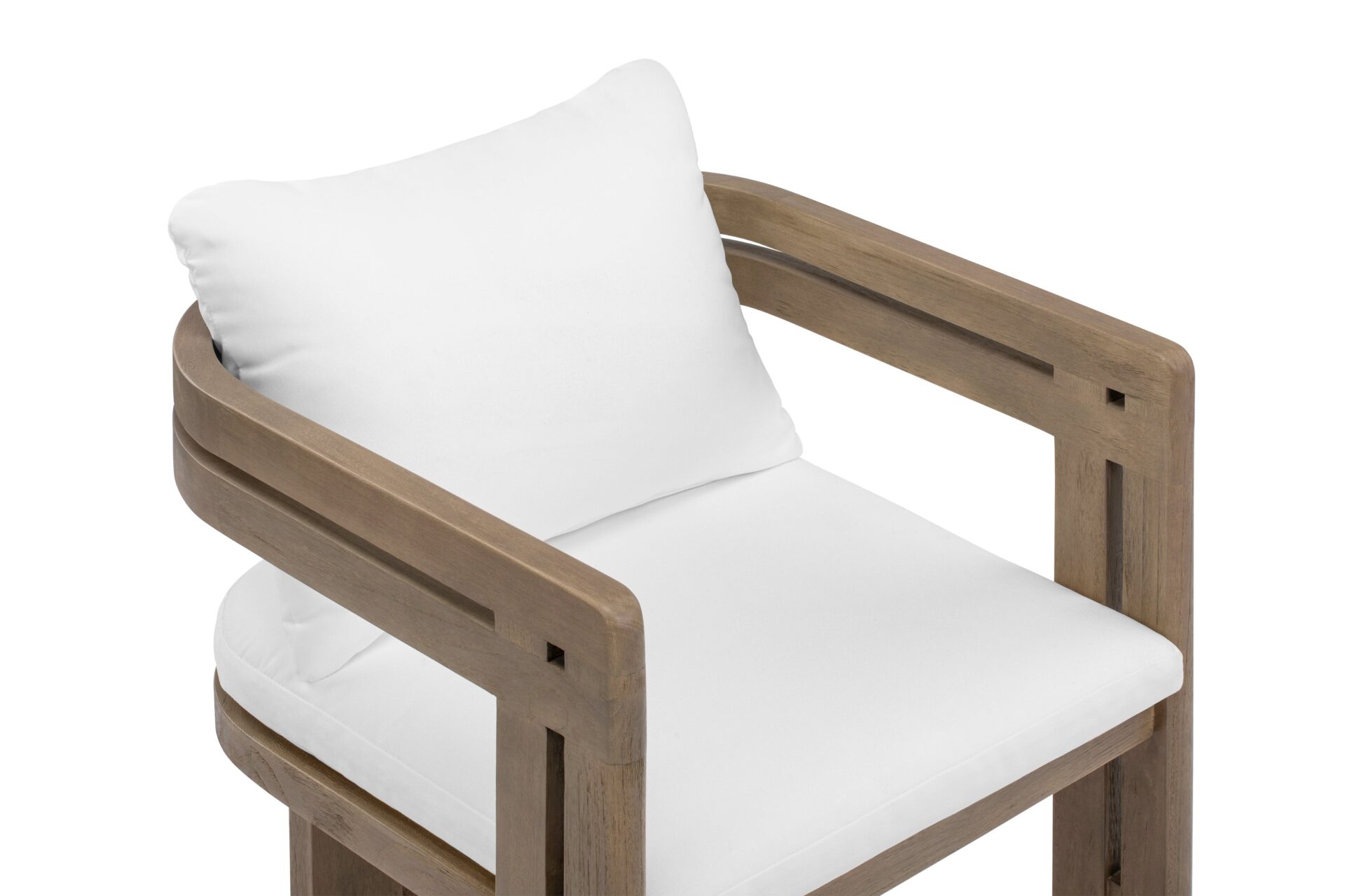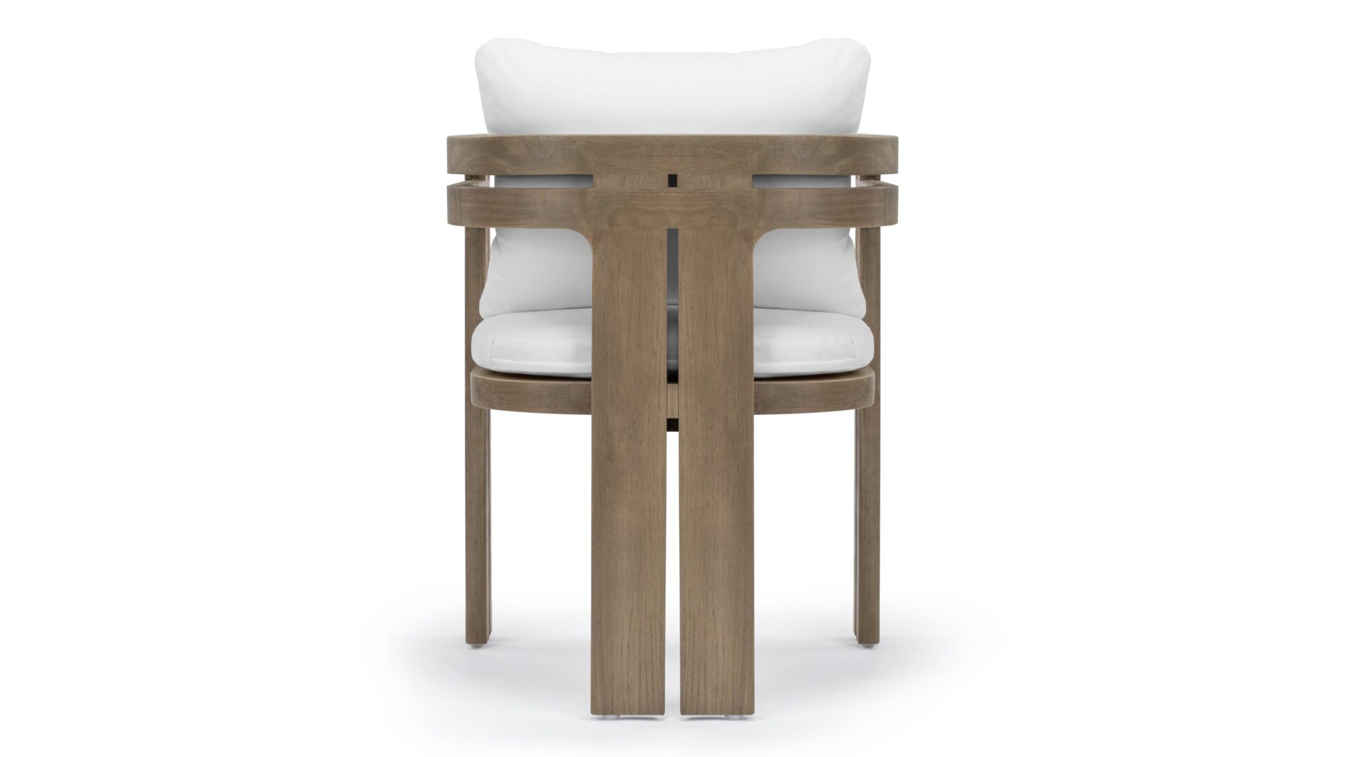 Elevate your outdoor living space with the Lusso Outdoor Collection, inspired by midcentury modern elegance. Crafted from durable teak wood, the Lusso Outdoor Dining Chair in Weathered Teak with White Cushions embodies sophistication and resilience. Every detail is meticulously designed to enhance your outdoor area's allure and personality, creating a perfect blend of style and comfort for memorable gatherings.