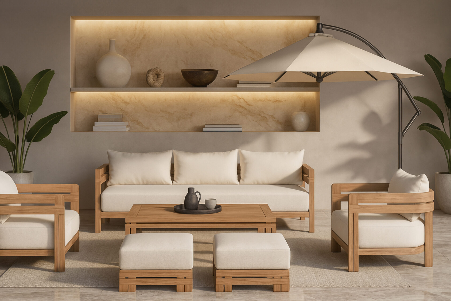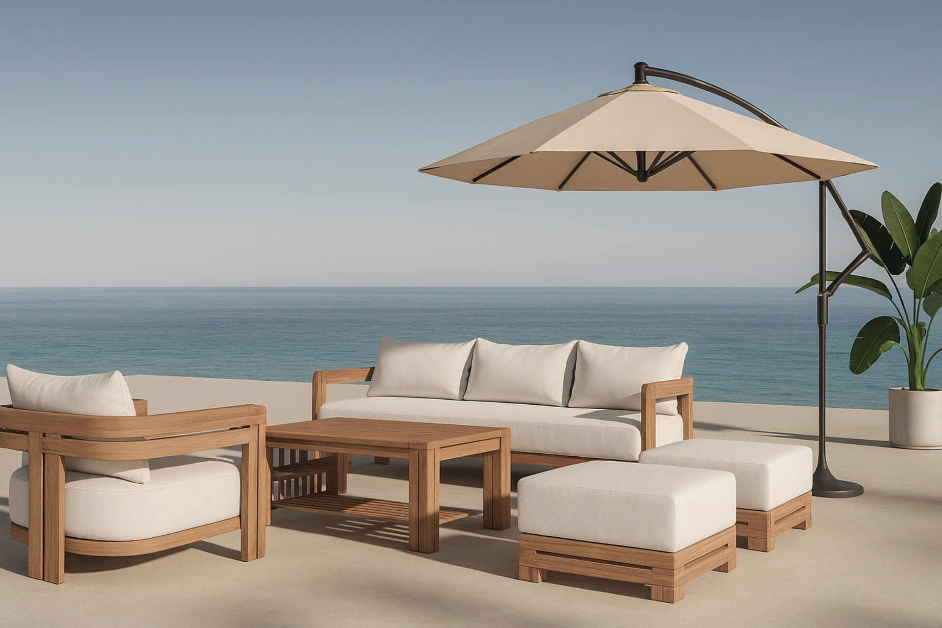 Constructed from high-quality teak wood well-known for its durability, the Lusso Outdoor Collection is designed to endure outdoor conditions without compromising its aesthetic appeal over time. The rich, golden tone of the teak wood imparts a sense of coziness and elegance to any outdoor area, fostering a welcoming ambiance for gatherings with family and friends.
