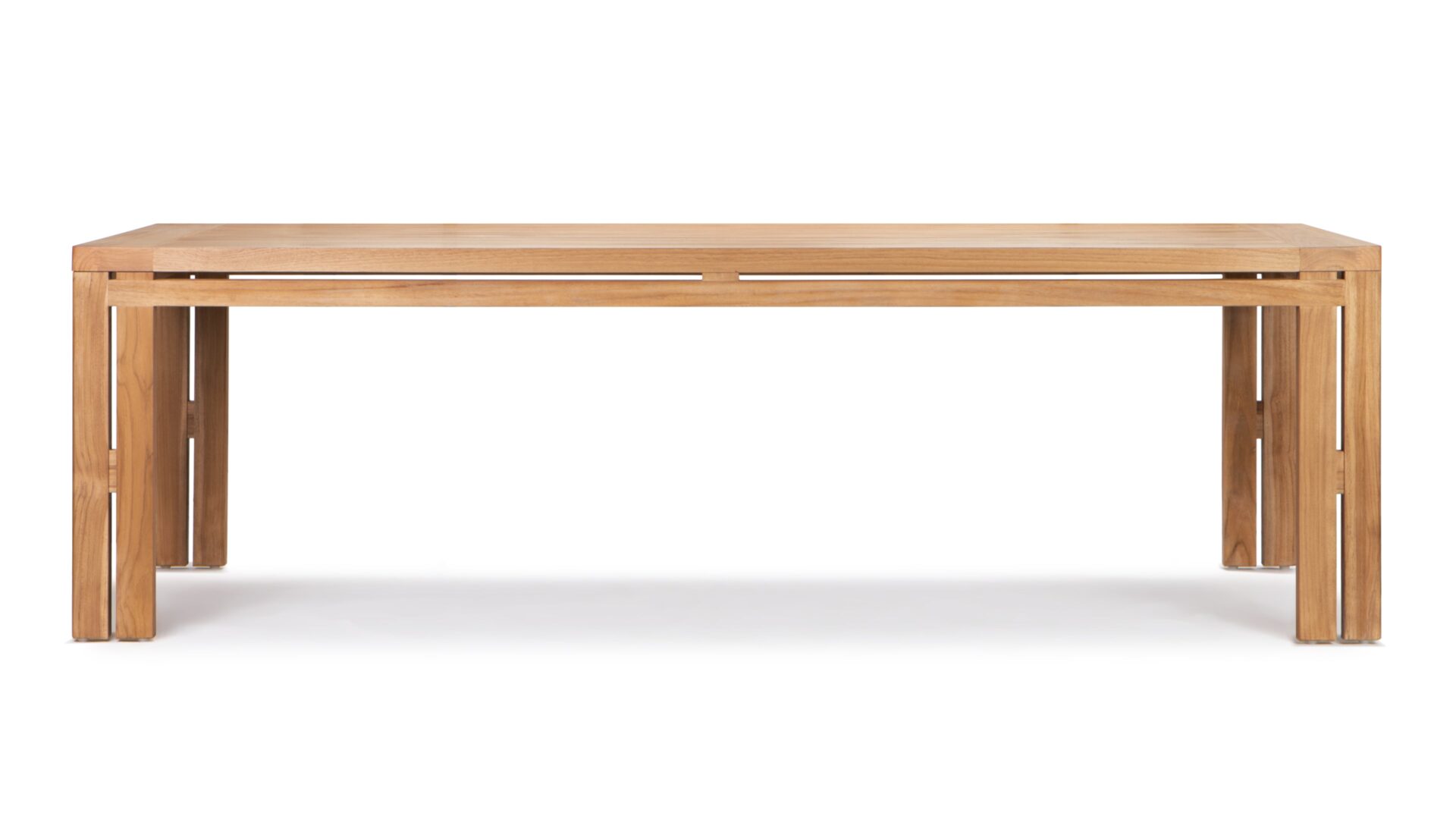 Experience the captivating essence of outdoor living with the Lusso Outdoor Collection, crafted from opulent natural teak wood. Each item epitomizes elegance and strength, drawing inspiration from midcentury modern design. The intricately designed Lusso Outdoor Ottoman brings allure and personality to your outdoor sanctuary, with a seamless fusion of comfort and sophistication. Ideal for hosting gatherings, the Lusso Dining Table offers generous space and sets a stylish and comfortable stage for unforgettable moments outdoors. Create your own outdoor retreat with the lasting beauty of the Lusso Collection, merging style, comfort, and quality for an elevated outdoor living space.
