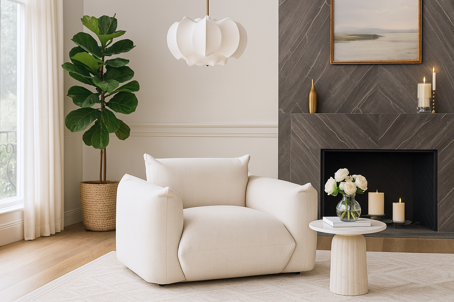 Modern Luxury Ivory Linen Chair
