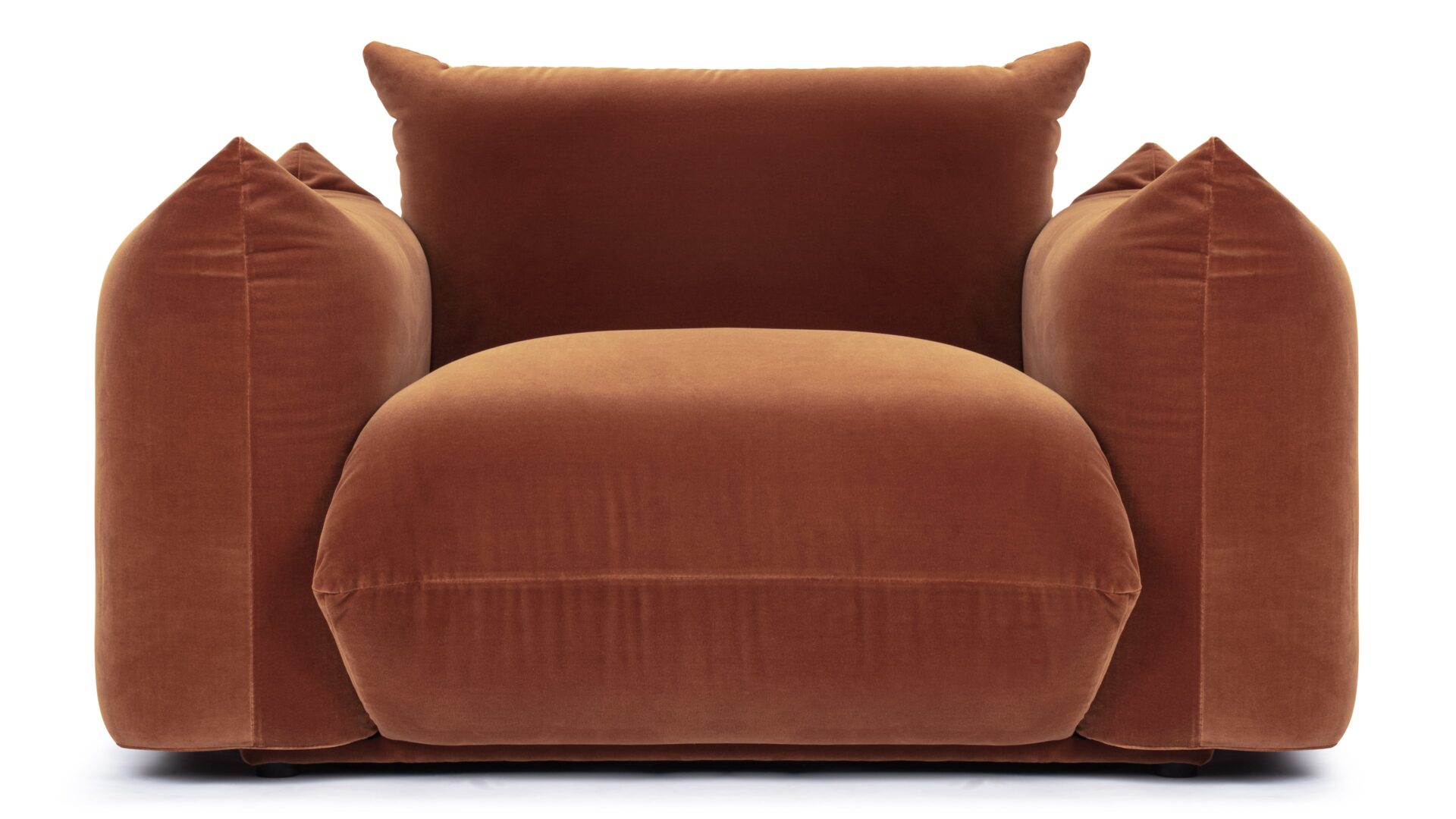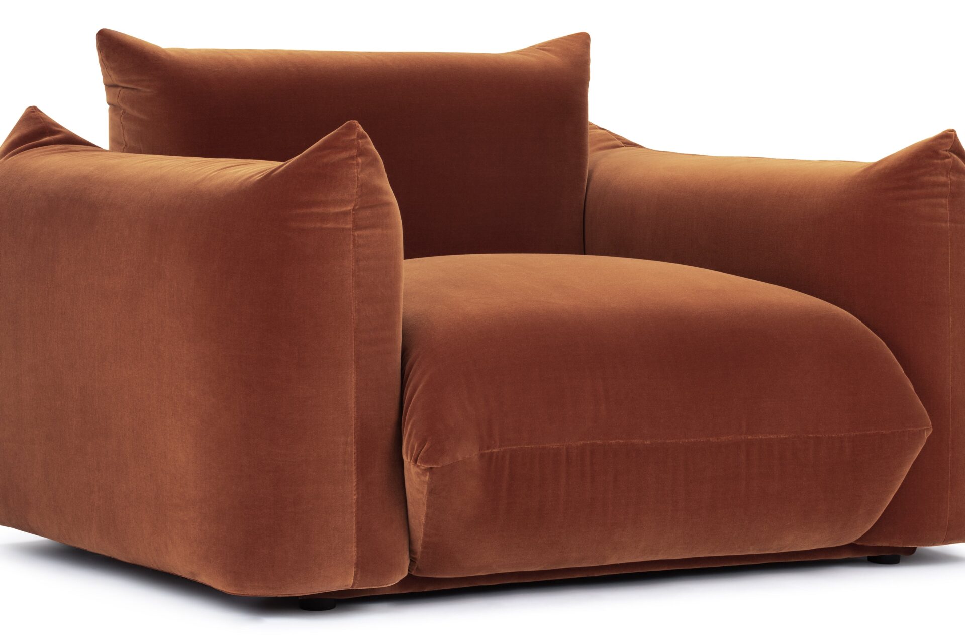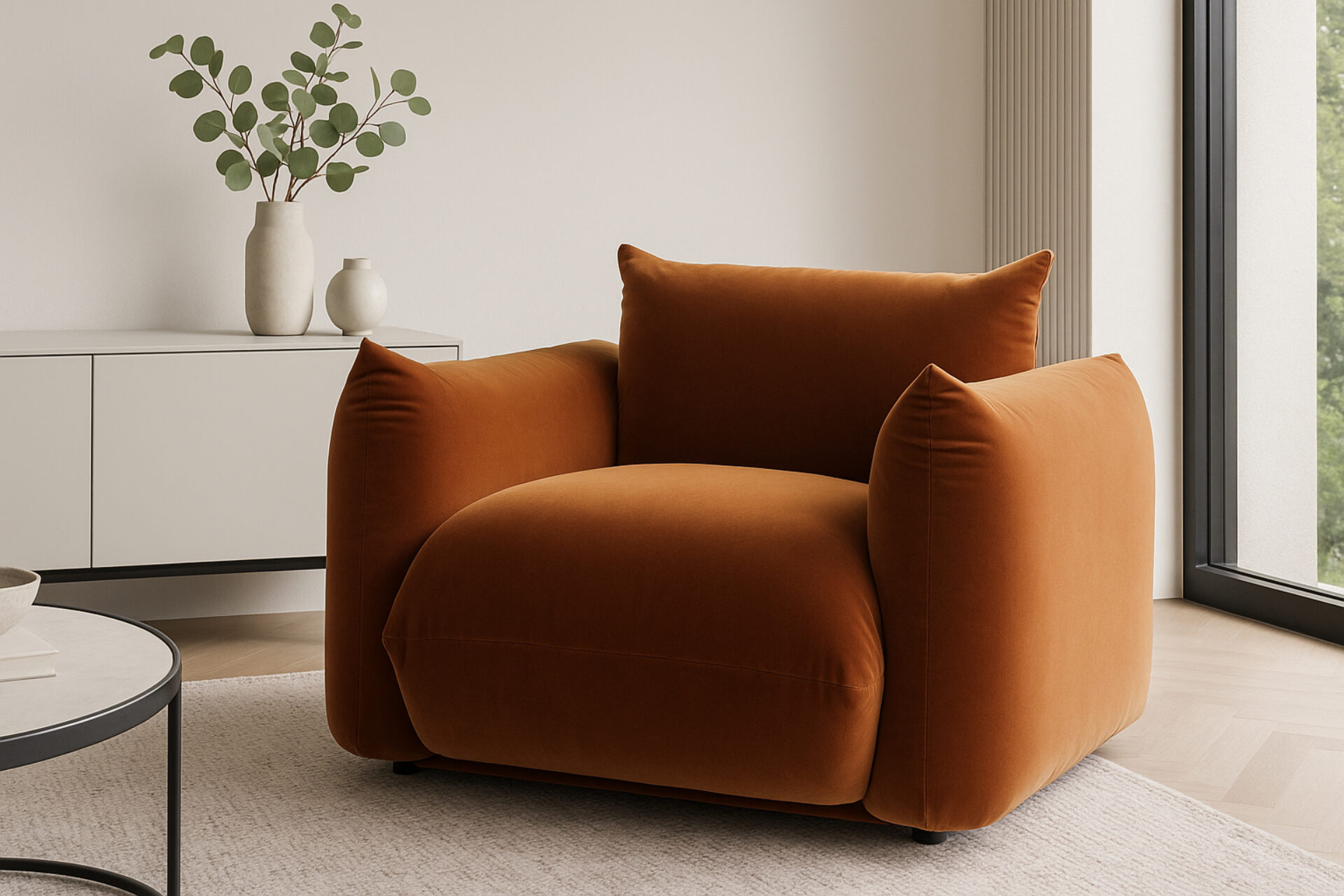 Introduce a touch of modern sophistication and comfort into your living space with the striking Marenco chair in Spice Velvet. Its daring design and exceptional comfort make it a standout piece that effortlessly combines style, innovation, and unparalleled craftsmanship. Immerse yourself in luxury with sumptuous cushions and plush upholstery, ensuring both visual appeal and durability for a cozy and stylish addition to your home.