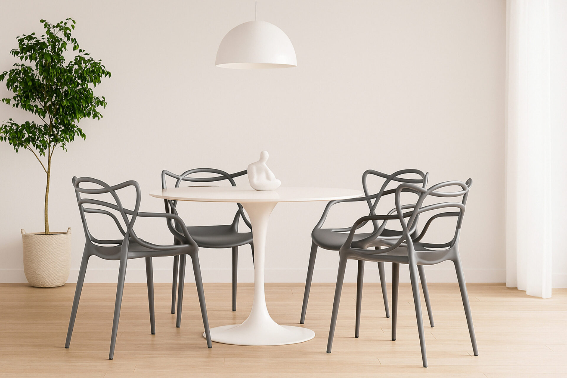 Discover the grace and fluidity of The Master's Collection, characterized by its contemporary backrest and subtly tapered legs. This collection exemplifies democratic design principles, combining bold aesthetics with practical construction in a restrained yet elegant manner. Despite its iconic status, The Master's Chair is surprisingly budget-friendly, offering a harmonious fusion of style and affordability. Boasting timeless appeal and exquisite craftsmanship, The Master's dining chair is a testament to enduring design excellence in contemporary living spaces.