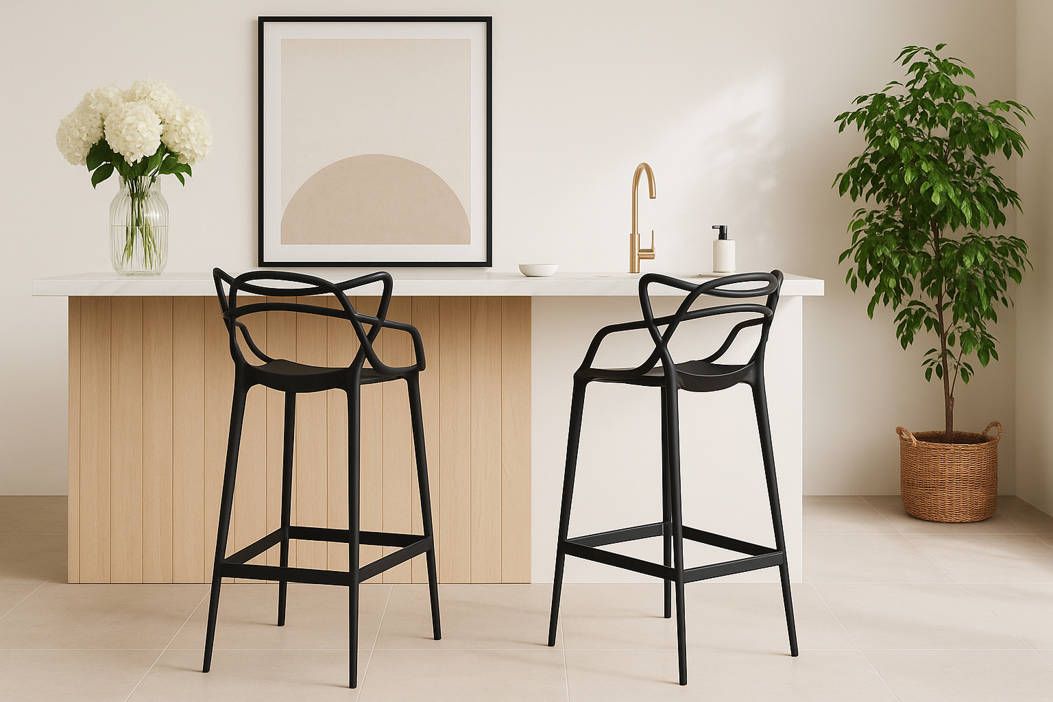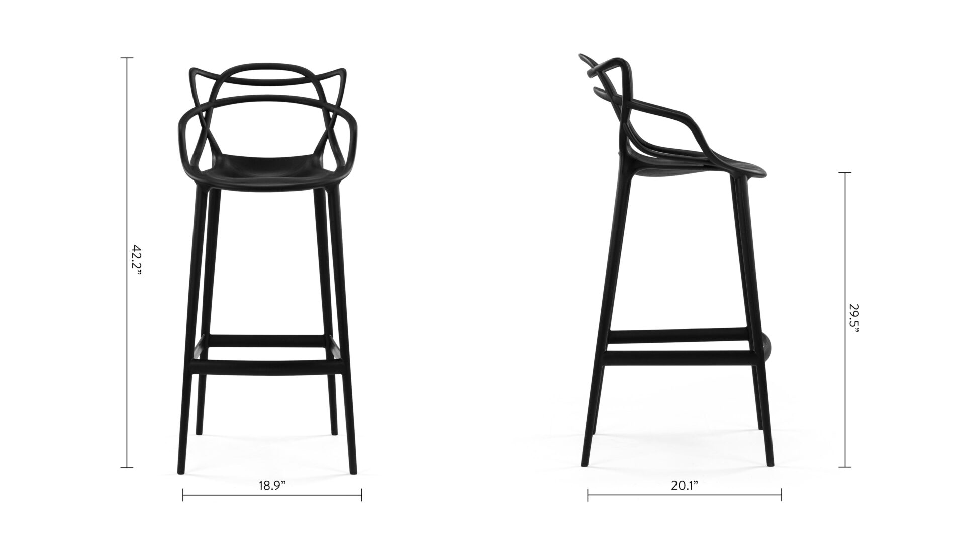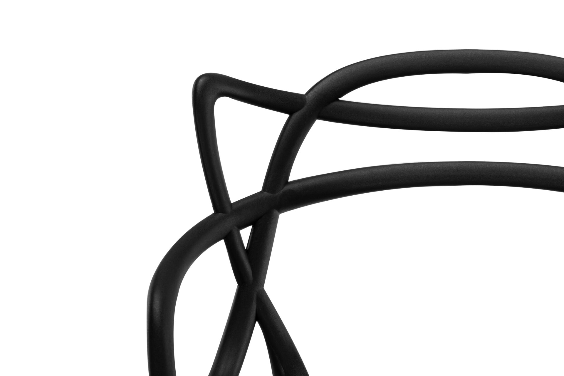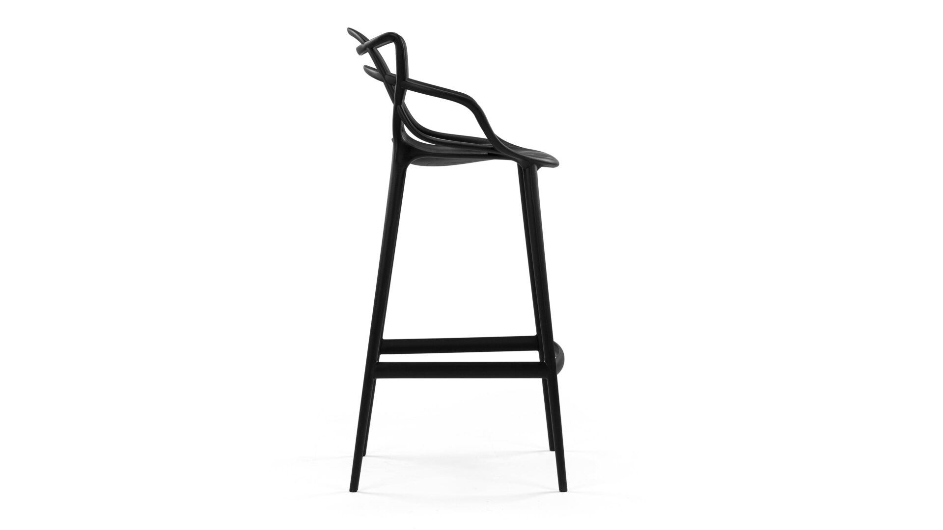 Introducing the captivating Master's Collection, featuring the iconic **Master's dining chair** exuding a blend of elegance and functionality with its contemporary design, tapered legs, and black finish. The exquisite silhouette of the **Masters Bar Stool** pays homage to 20th-century classics, boasting a chic outline and a stylish black polypropylene construction that seamlessly transitions from indoor to outdoor settings with ease.
