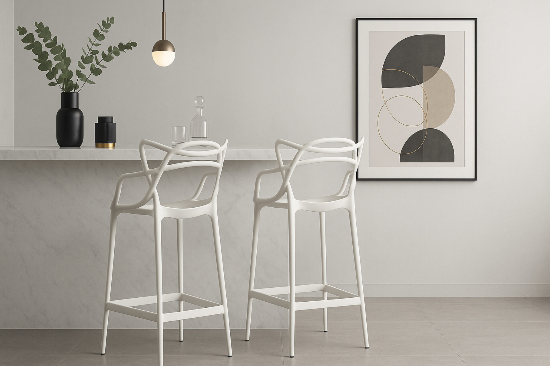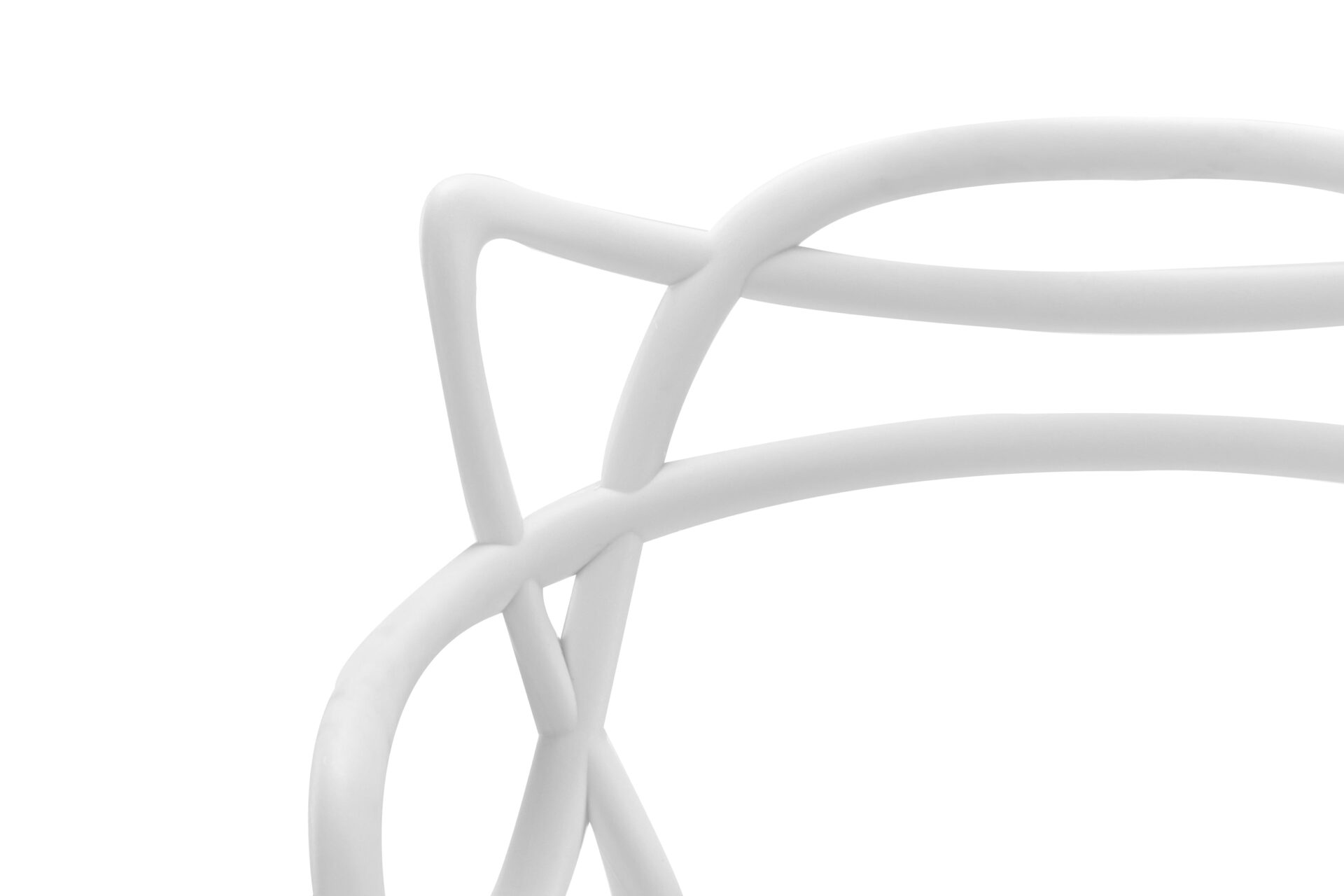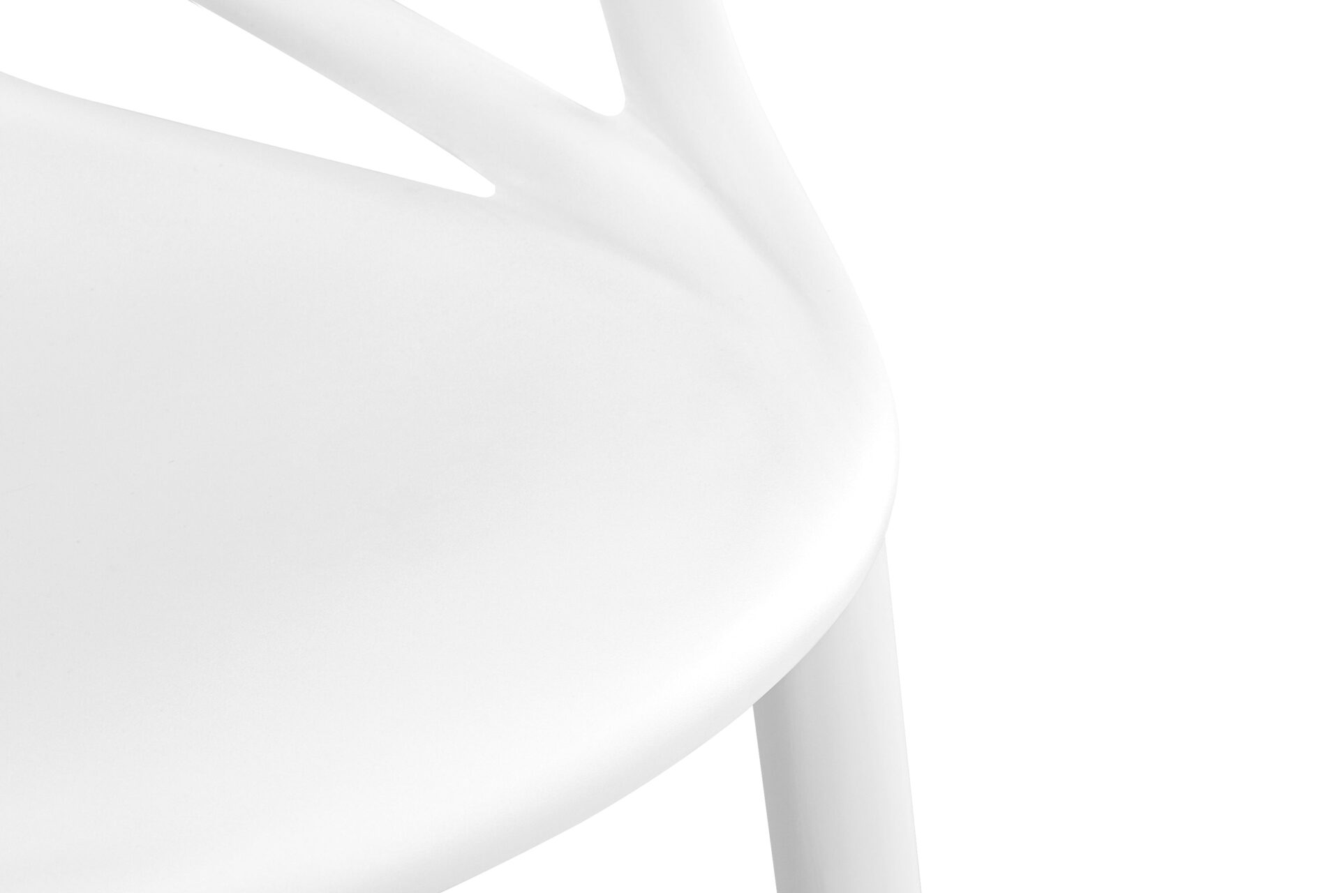 Introducing the Master's Collection, a timeless dining chair showcasing a blend of modern and iconic design. With a chic white finish, this chair is elegantly crafted with a unique contemporary backrest and tapered legs, embodying a democratic design that combines grace and practicality. The Masters Bar Stool in white offers exquisite contemporary style inspired by iconic designs from the 20th century, featuring seamless fluidity and dynamic presence, making it a versatile and weather-resistant piece perfect for indoor or outdoor settings.