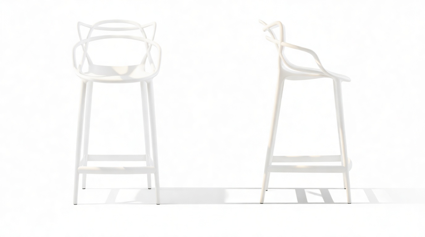 Discover the captivating essence of fluidity and elegance with the Master's Collection. The iconic Masters chair, featuring a contemporary backrest and subtly tapered legs, presents a harmonious balance of bold aesthetics and practical affordability. Meanwhile, the timeless appeal of the white Master's counter stool embodies enduring design excellence, seamlessly blending exceptional craftsmanship with a fresh contemporary design for modern living spaces.