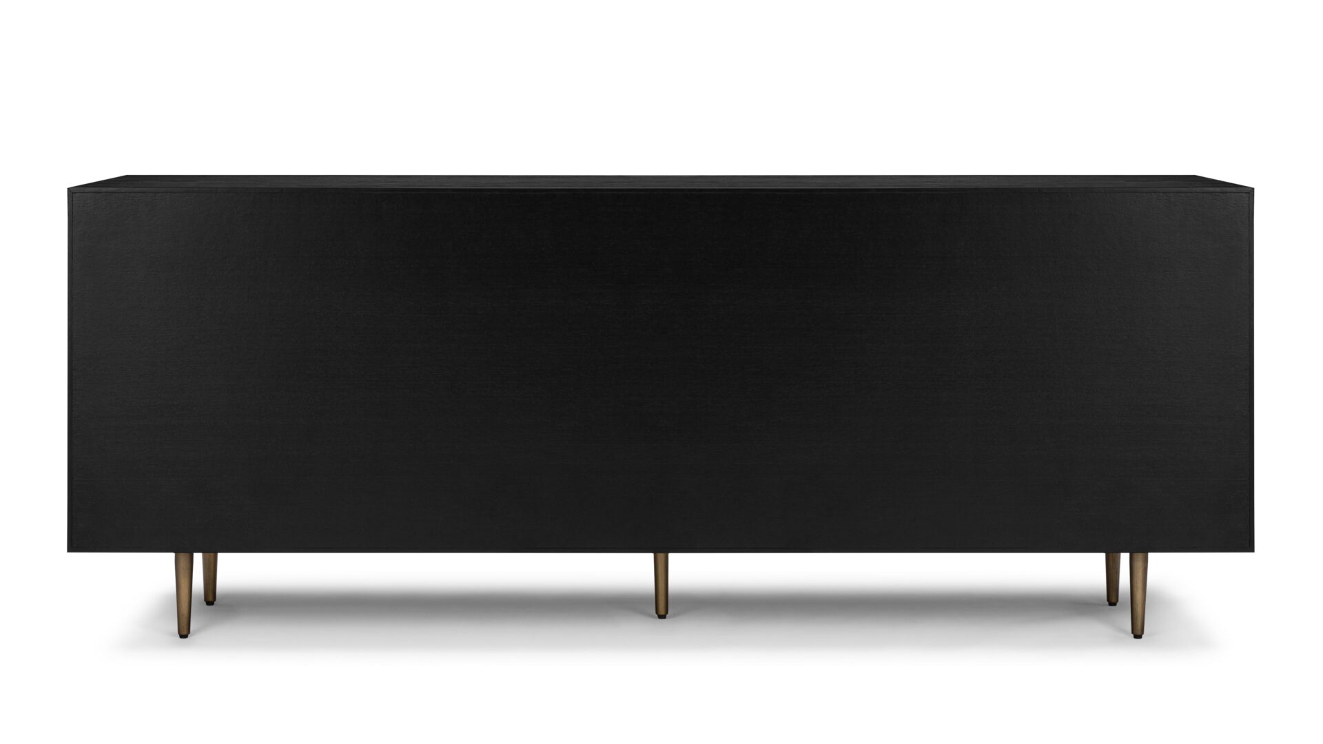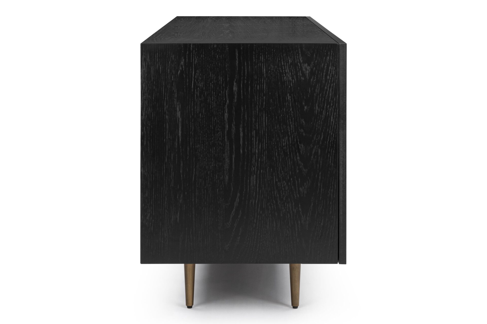 Expertly constructed from premium wood, the Matisse Sideboard showcases an elegant black finish that elevates its modern aesthetic. Its design is accentuated by tapered legs in a luxurious brass hue, offering stability and a touch of refinement.