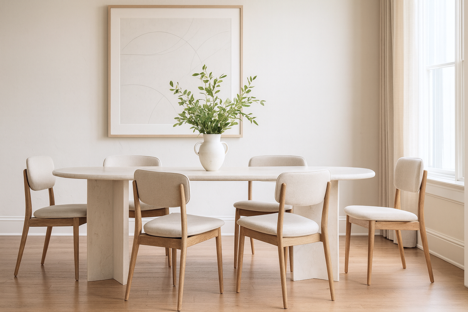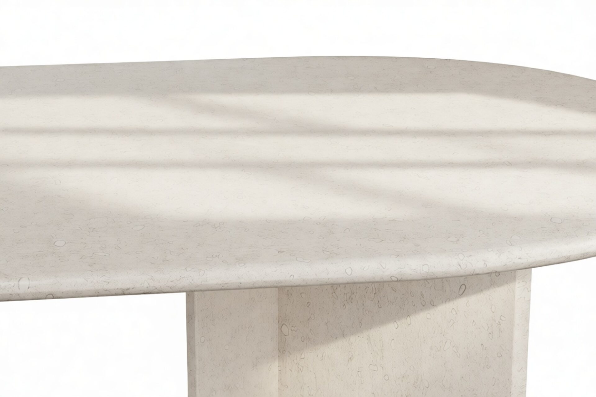 Handcrafted from sturdy stone in inviting, neutral tones, the Maui Dining Table exudes contemporary sophistication. Its rounded tabletop and angular legs combine to form a captivating yet balanced aesthetic.
