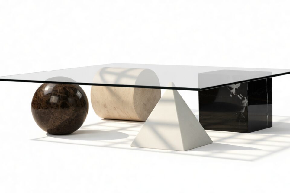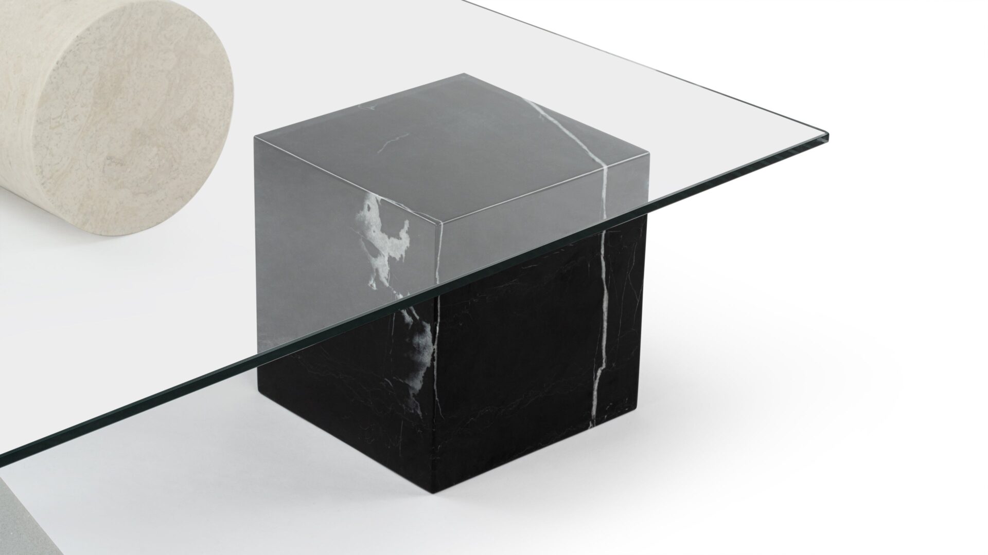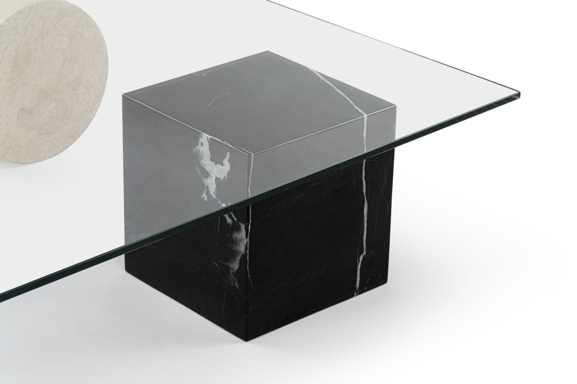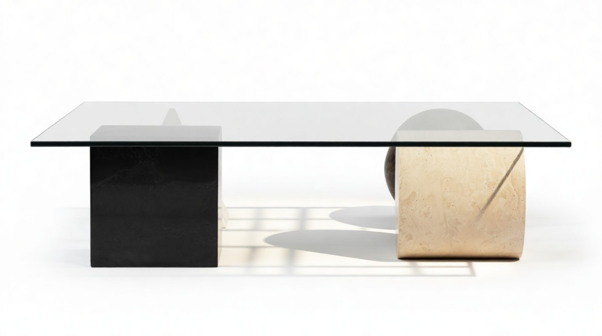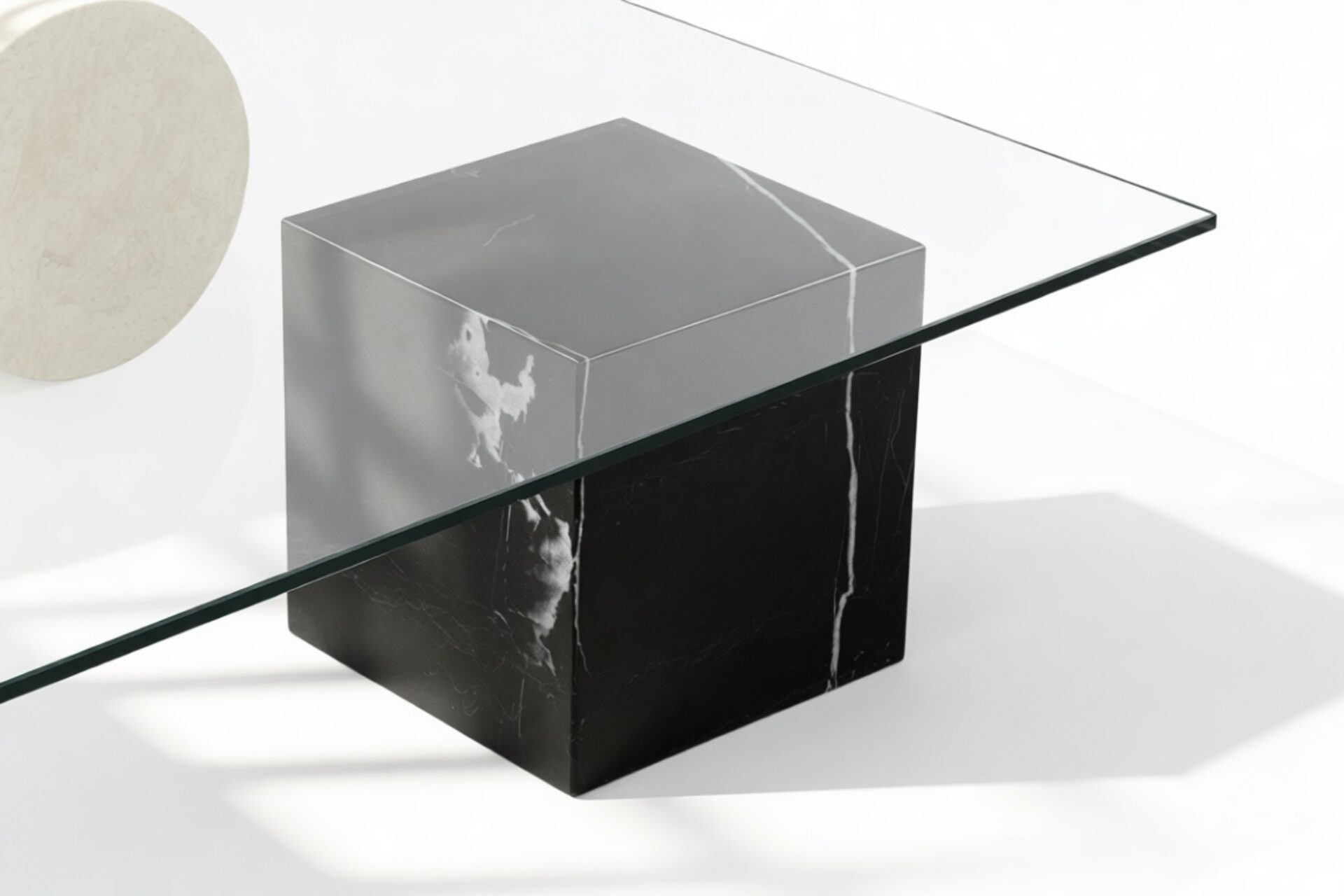 Experience the Metafora Coffee Table, a masterpiece crafted to inspire dialogue and fuel creativity. With its unique design, this table radiates energy and motion. Meticulously assembled using a blend of glass, marble, and travertine, it seamlessly blends strength with transparency.