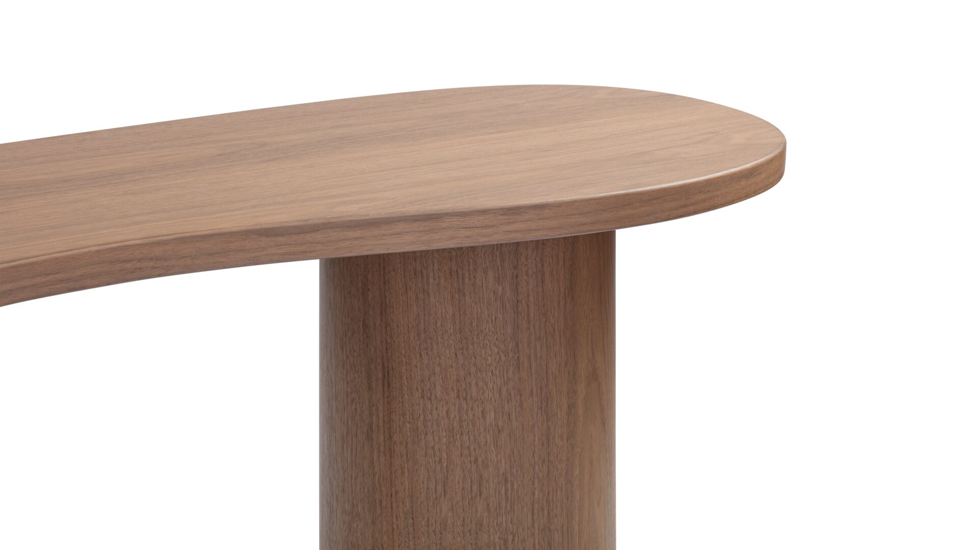 Discover the Mezzo Console Table, a fusion of sculptural design and expert craftsmanship. With its captivating organic shape and inviting walnut finish, this piece makes a striking impression and complements a range of décor styles with ease.