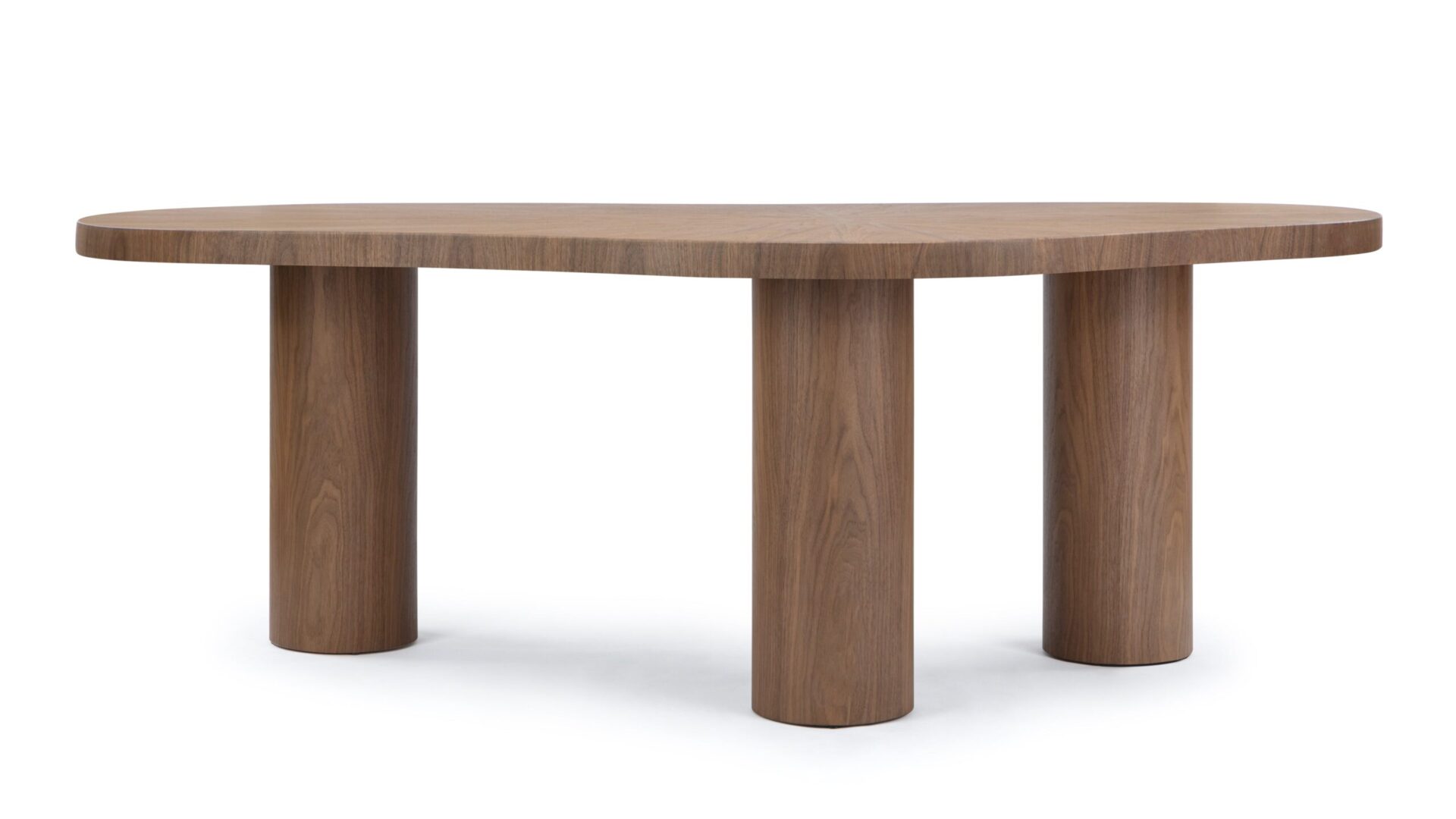 Discover the exquisite blend of organic form and contemporary style with the Mezzo Dining Table. Featuring a striking freeform walnut veneer top adorned with a radial starburst pattern, this table is upheld by robust cylindrical legs. As a captivating artistic focal point and a versatile surface for dining or decor display, the Mezzo Dining Table effortlessly harmonizes style and functionality.