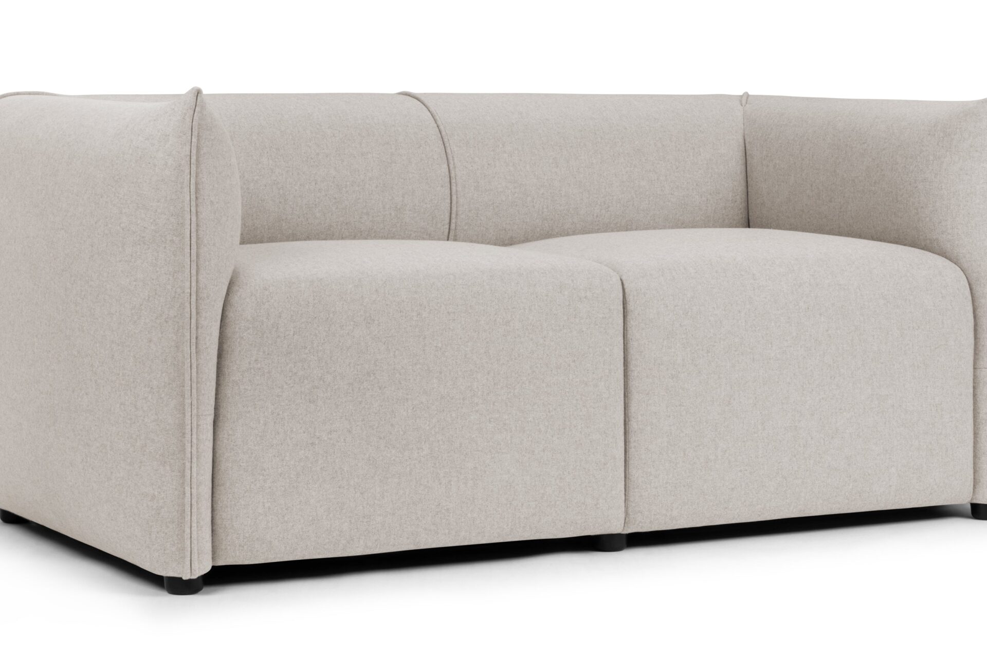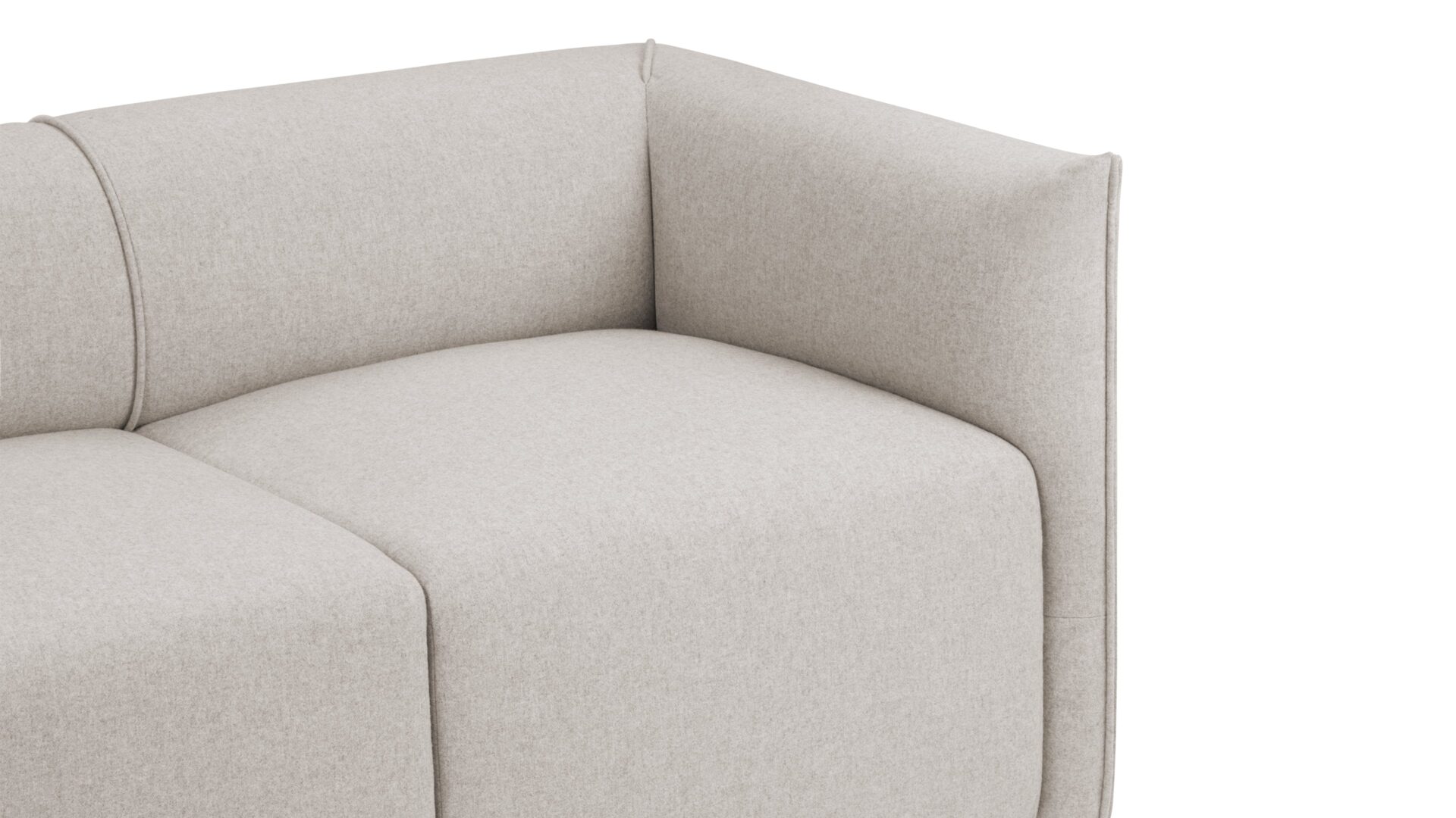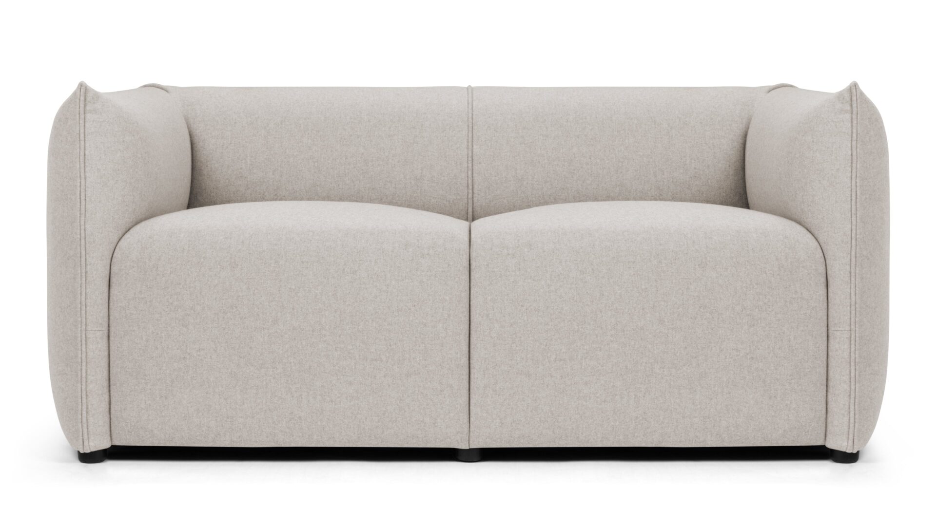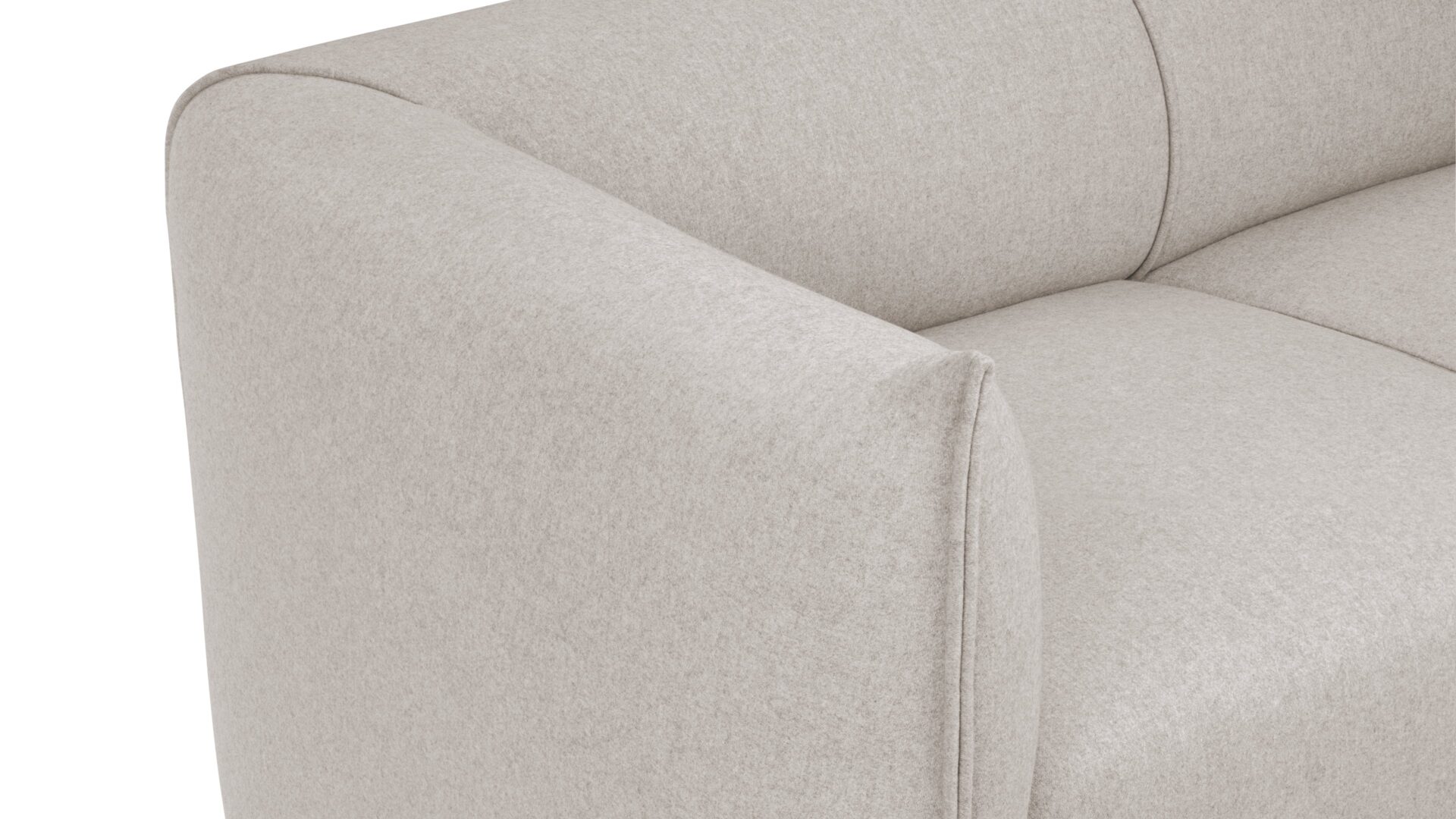 Indulge in the luxurious comfort of the loveseat, meticulously designed with deeply padded cushioning and upholstered in soft wool that envelops its padded arms and backrest. The sleek, modern addition of small, unobtrusive legs complements the overall style.