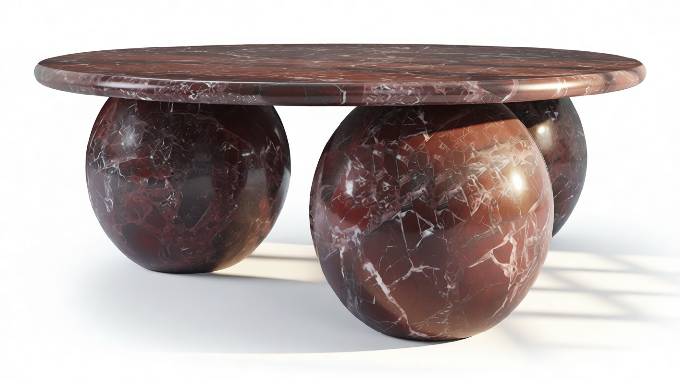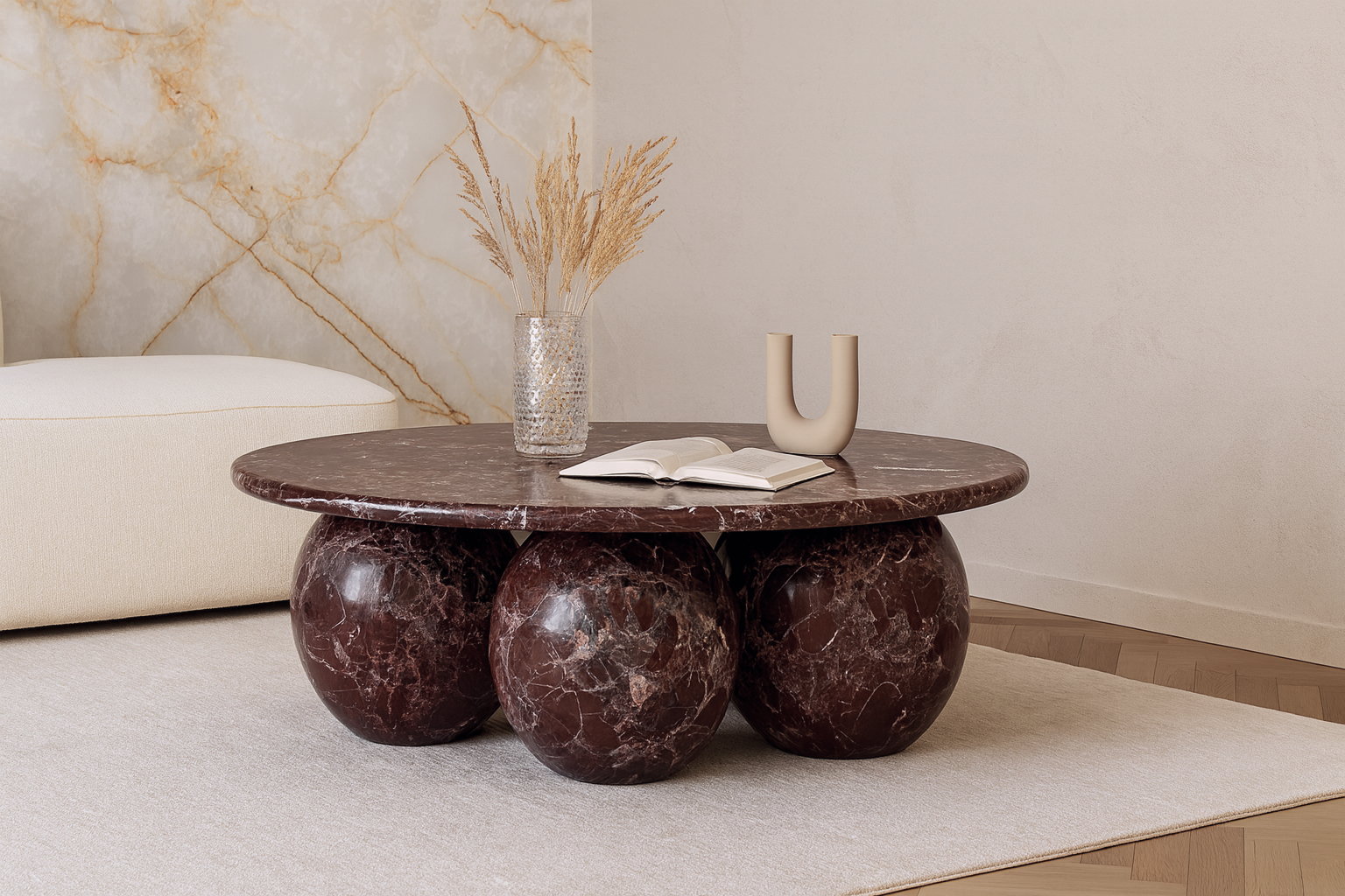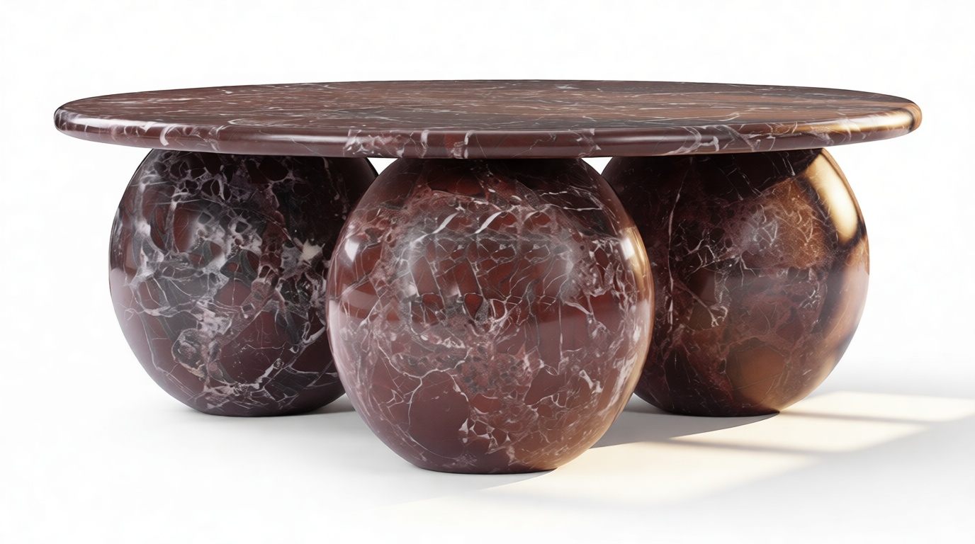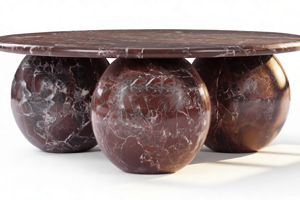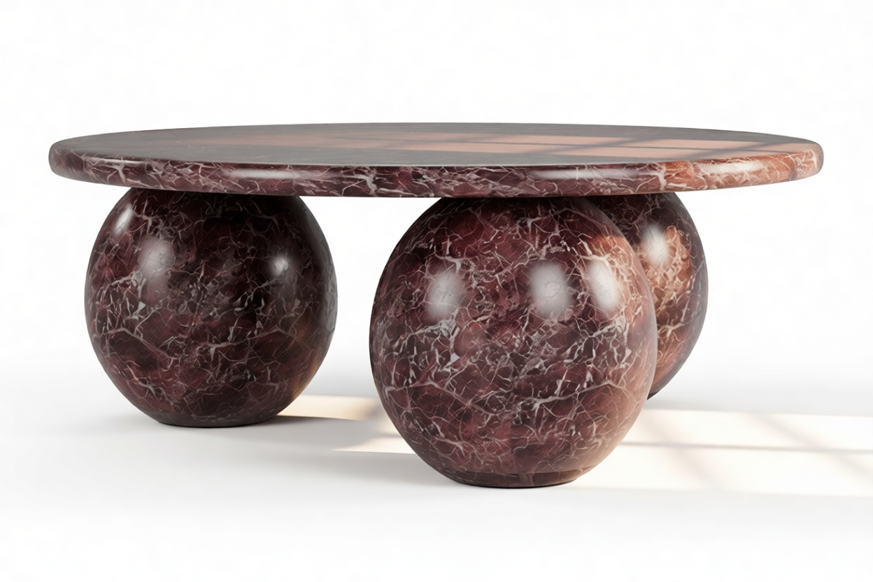 Introducing the Mila Coffee Table in Rosso Levanto Marble – a stunning blend of organic beauty and contemporary design that effortlessly commands attention in any living area. With its meticulously crafted three-sphere base and round top showcasing the unique patterns of authentic Italian stone, this table radiates timeless sophistication. Elevate your decor with its vibrant style and modern curvature, offering both artistry and functionality to curate a space that mirrors your discerning taste.
