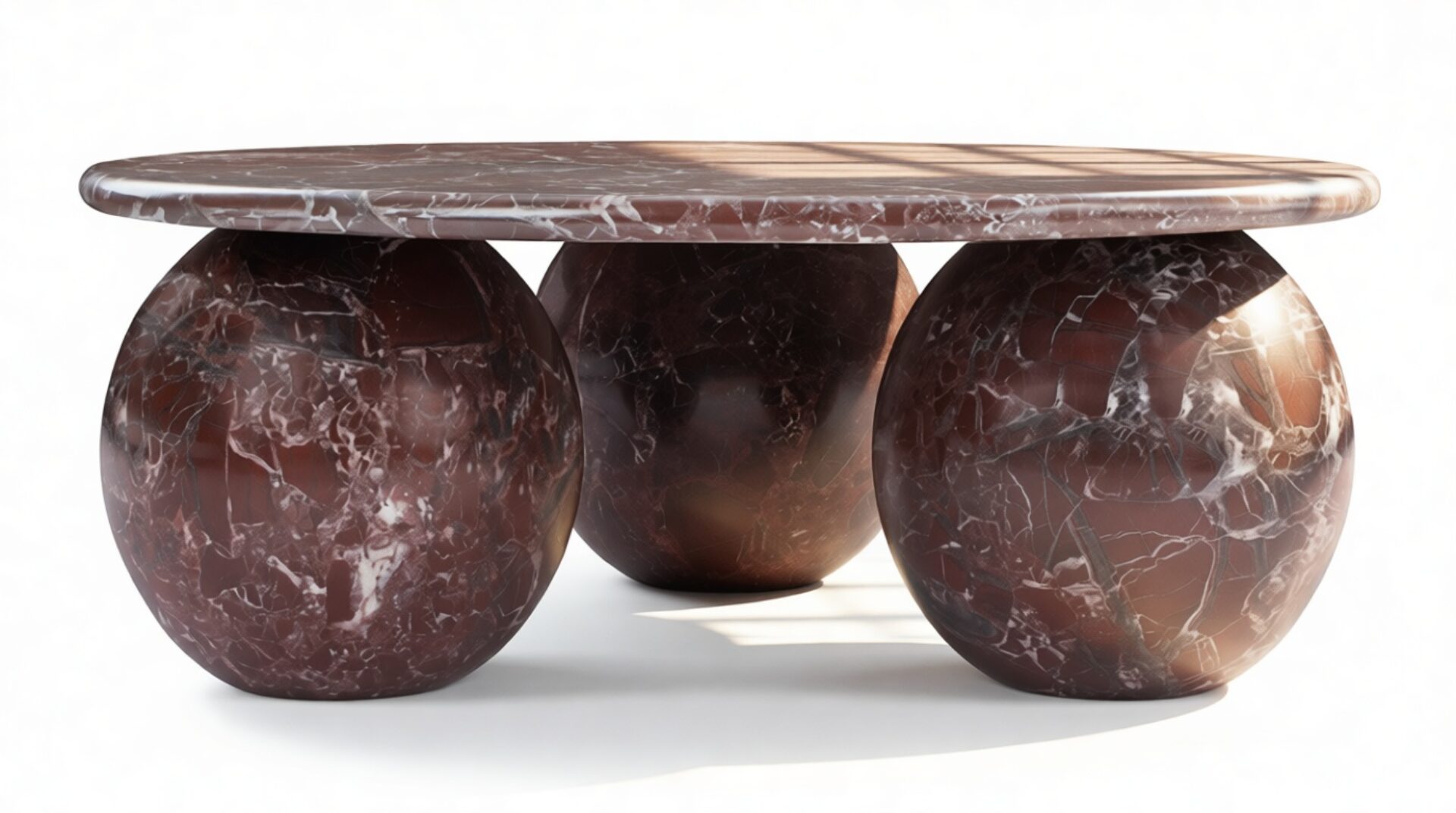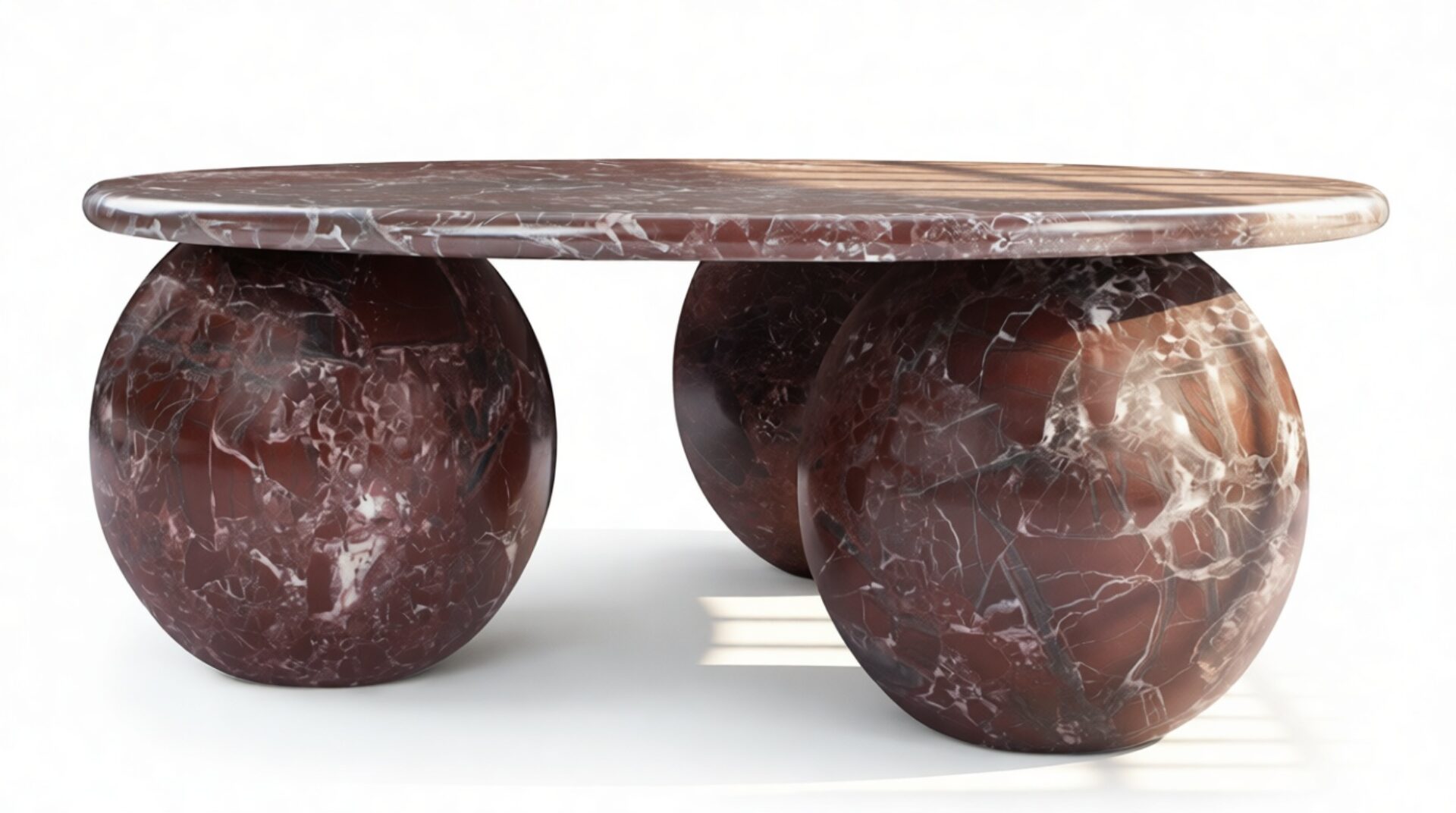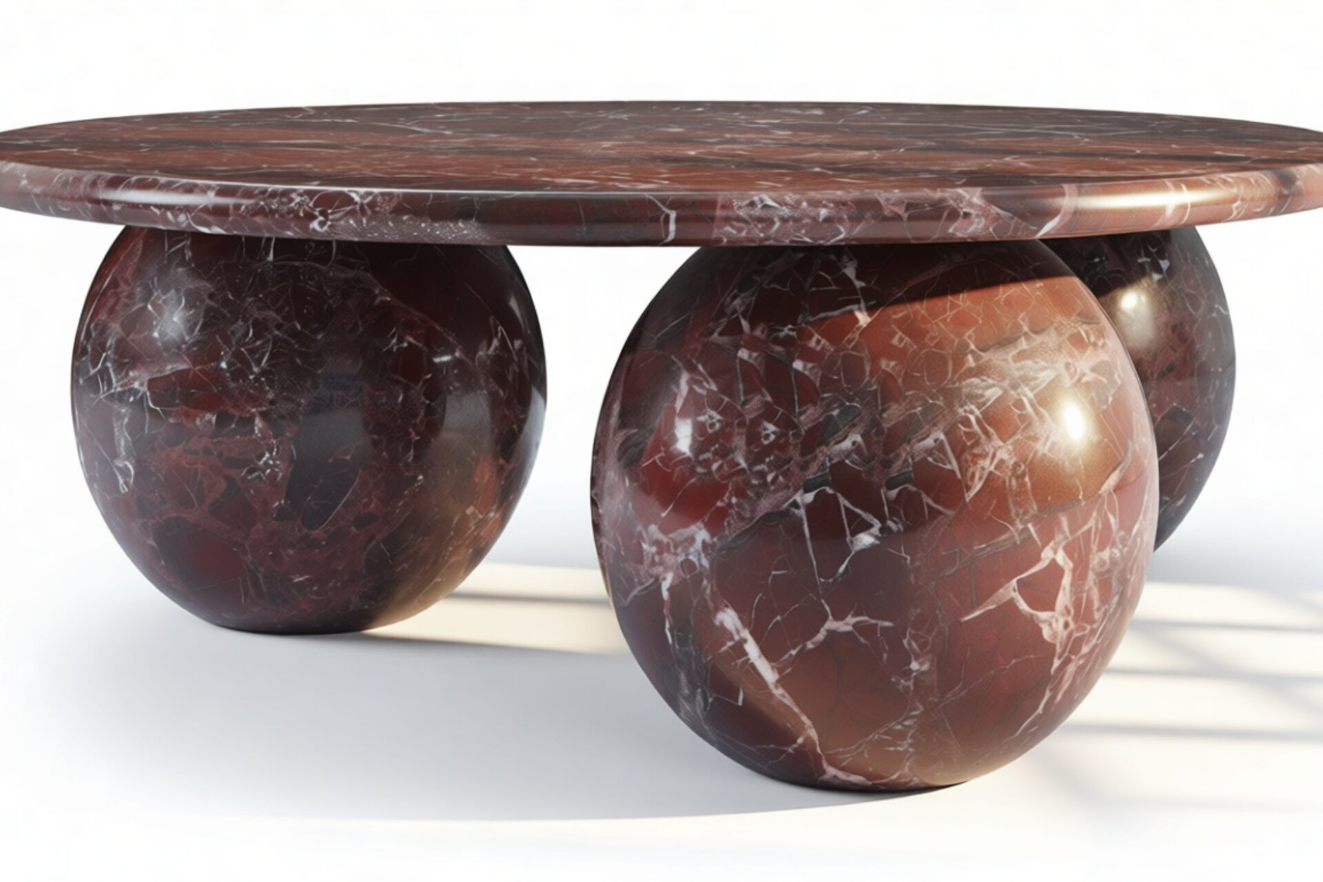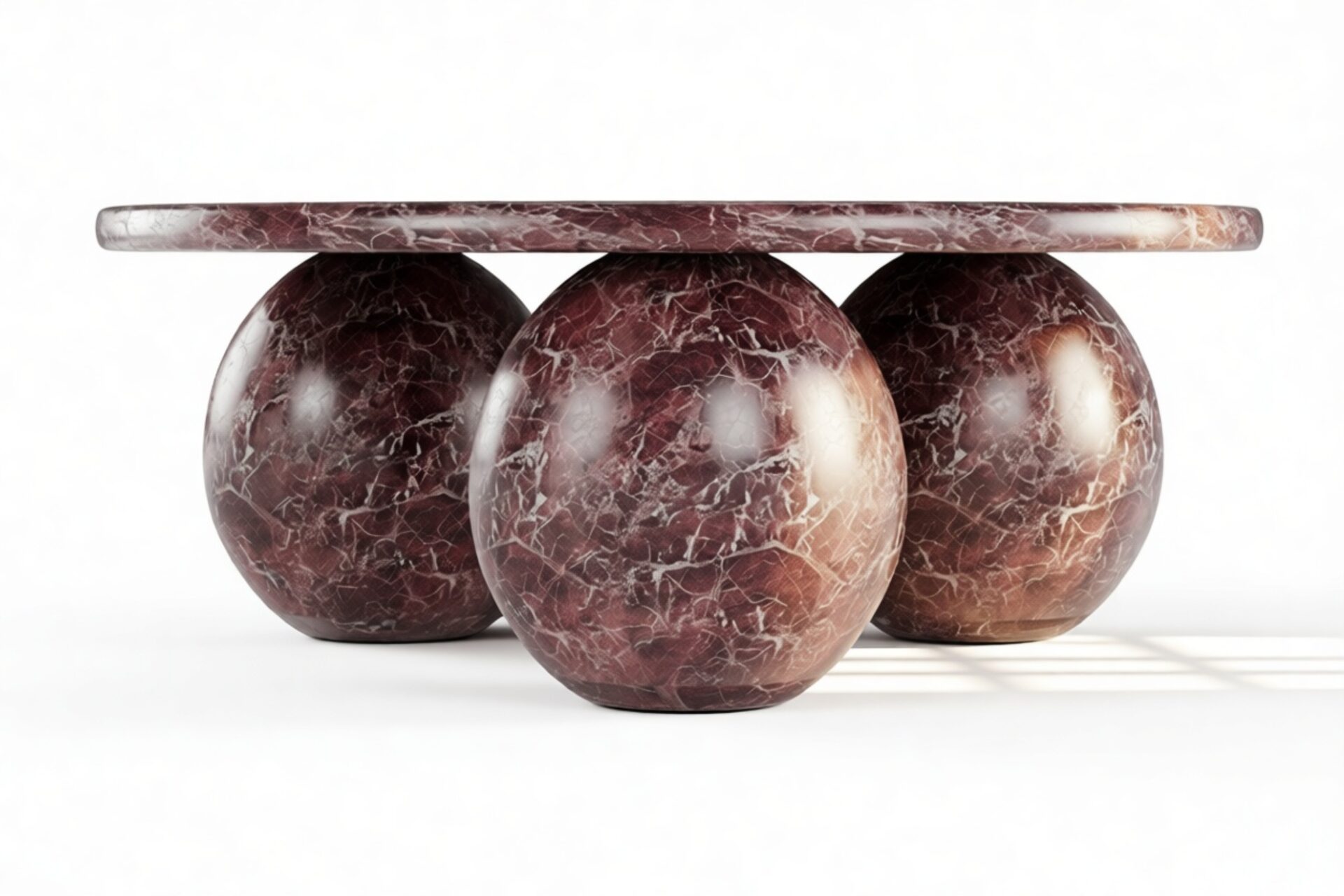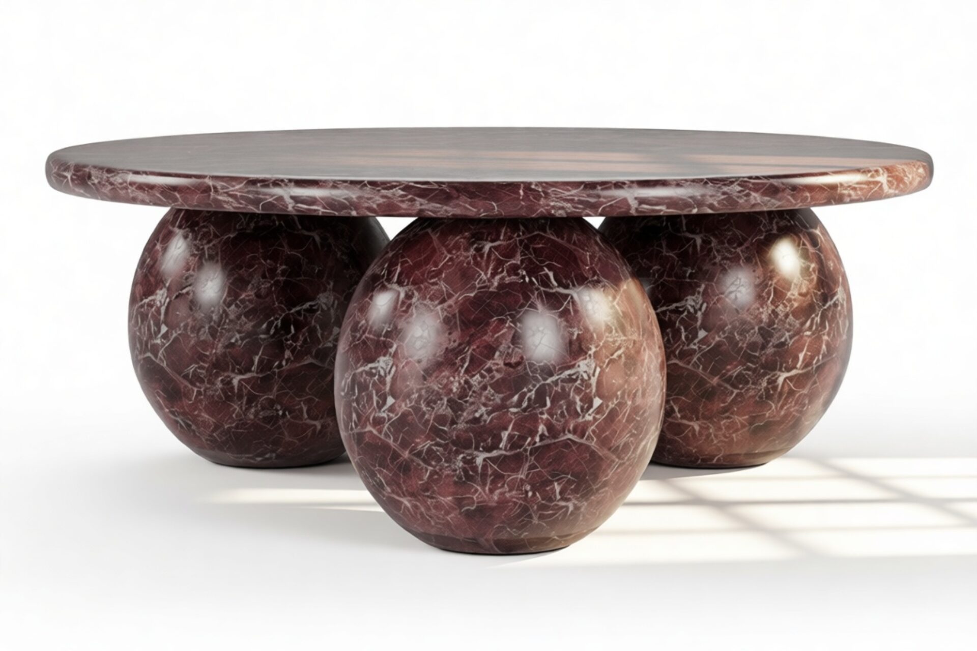 Introducing the Mila Coffee Table in Rosso Levanto Marble – a stunning blend of organic beauty and contemporary design that effortlessly commands attention in any living area. With its meticulously crafted three-sphere base and round top showcasing the unique patterns of authentic Italian stone, this table radiates timeless sophistication. Elevate your decor with its vibrant style and modern curvature, offering both artistry and functionality to curate a space that mirrors your discerning taste.