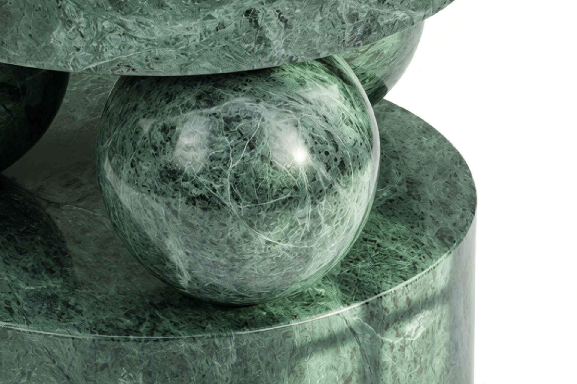 Discover the Mila Side Table, the ideal fusion of contemporary elegance and organic allure. Carefully crafted, it showcases a refined base made from polished marble, guaranteeing a solid support while infusing a hint of natural beauty into its design. Designed to complement the Mila Coffee Table perfectly, the Mila Side Table shares a unified design concept, creating a seamless and sophisticated look when paired together. Featuring a distinctive and inventive design, the Mila Side Table stands out from conventional tables. Its meticulously crafted three-sphere base provides a striking visual focal point that enhances its sculptural charm. The harmoniously balanced spherical shapes convey a feeling of dynamism and fluidity. Immerse yourself in the subtle lavishness of the Mila Side Table, a genuine work of art that seamlessly combines contemporary aesthetics with a touch of luxury.