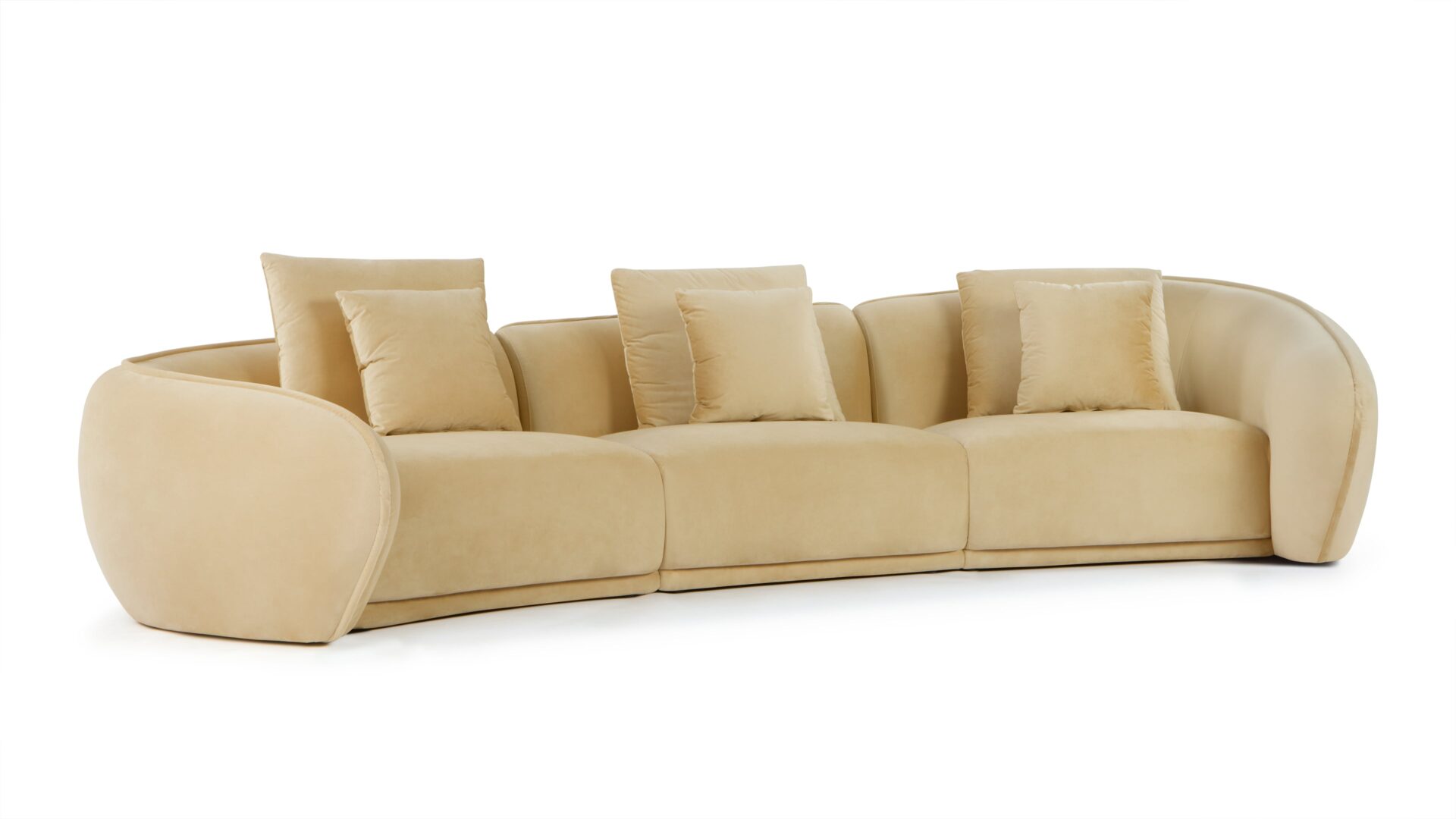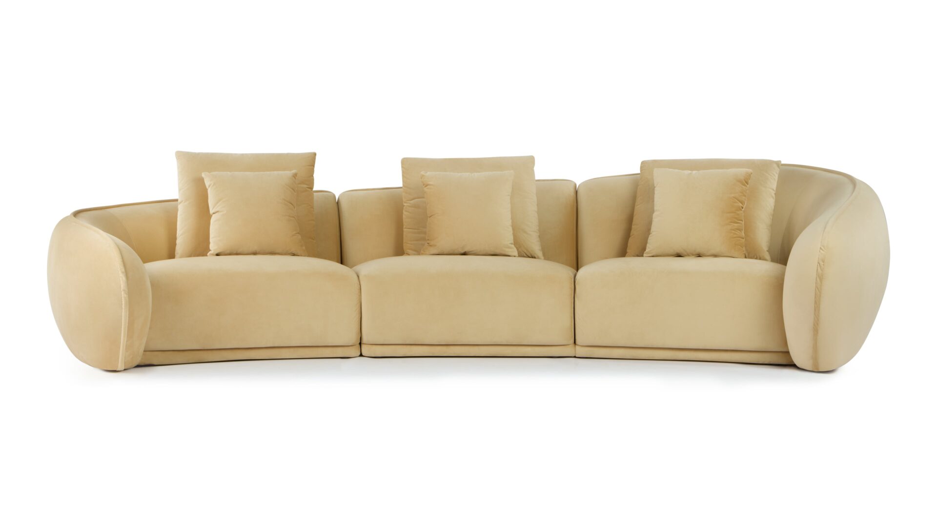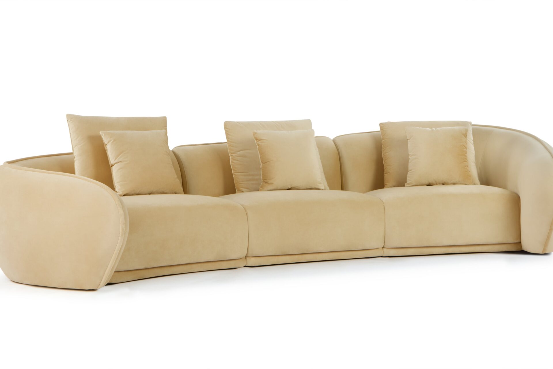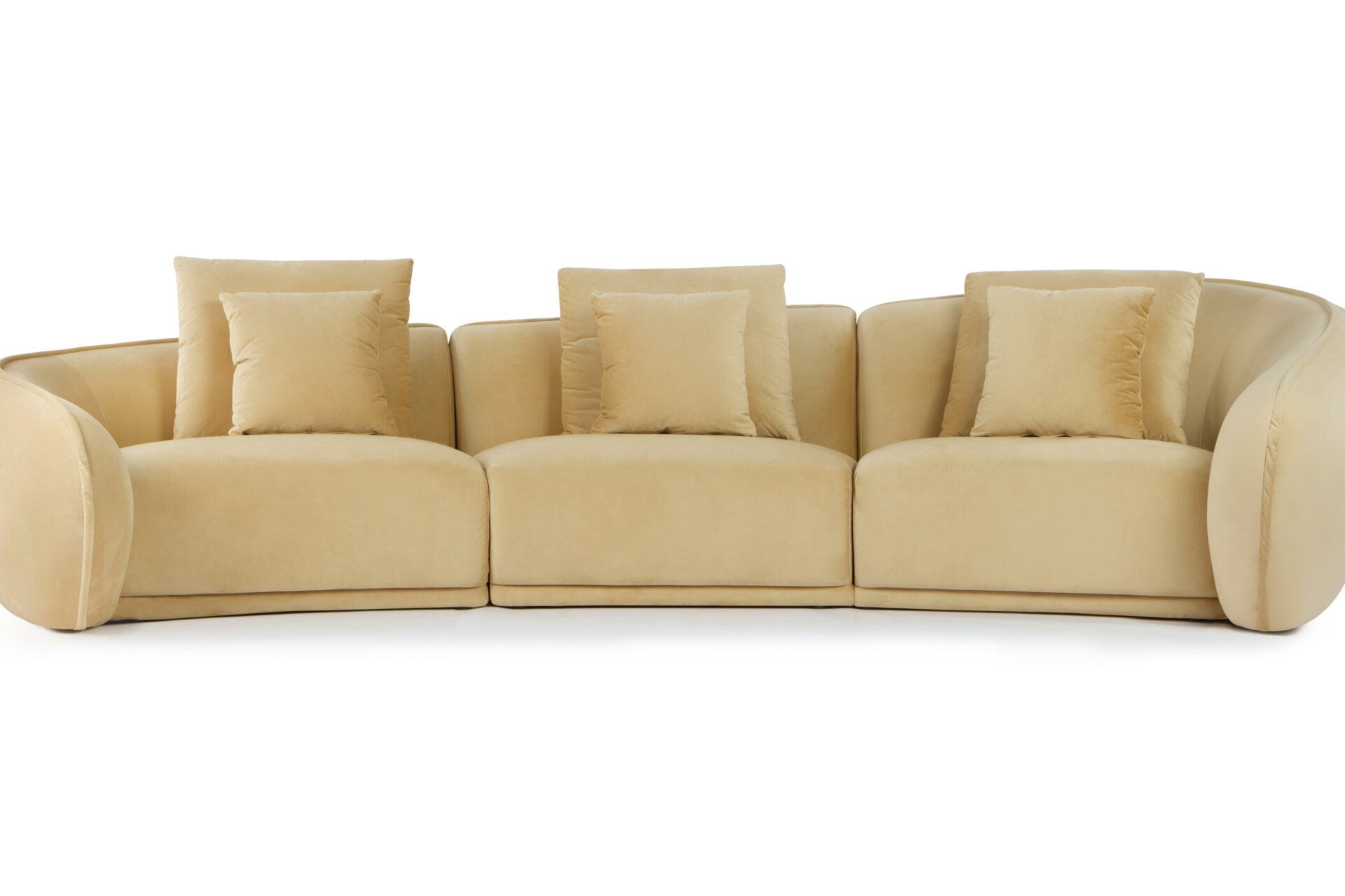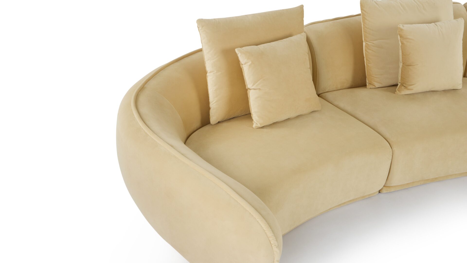 Indulge in customized relaxation with the inclusion of several scatter cushions in two sizes. The design of this sofa prioritizes both visual and physical comfort, with its curvaceous structure and versatile cushions catering to different seating preferences.