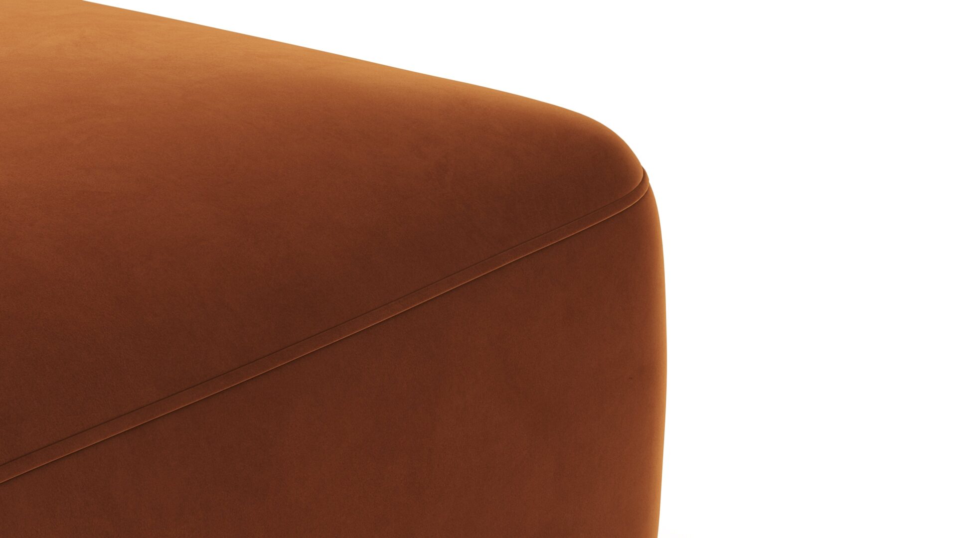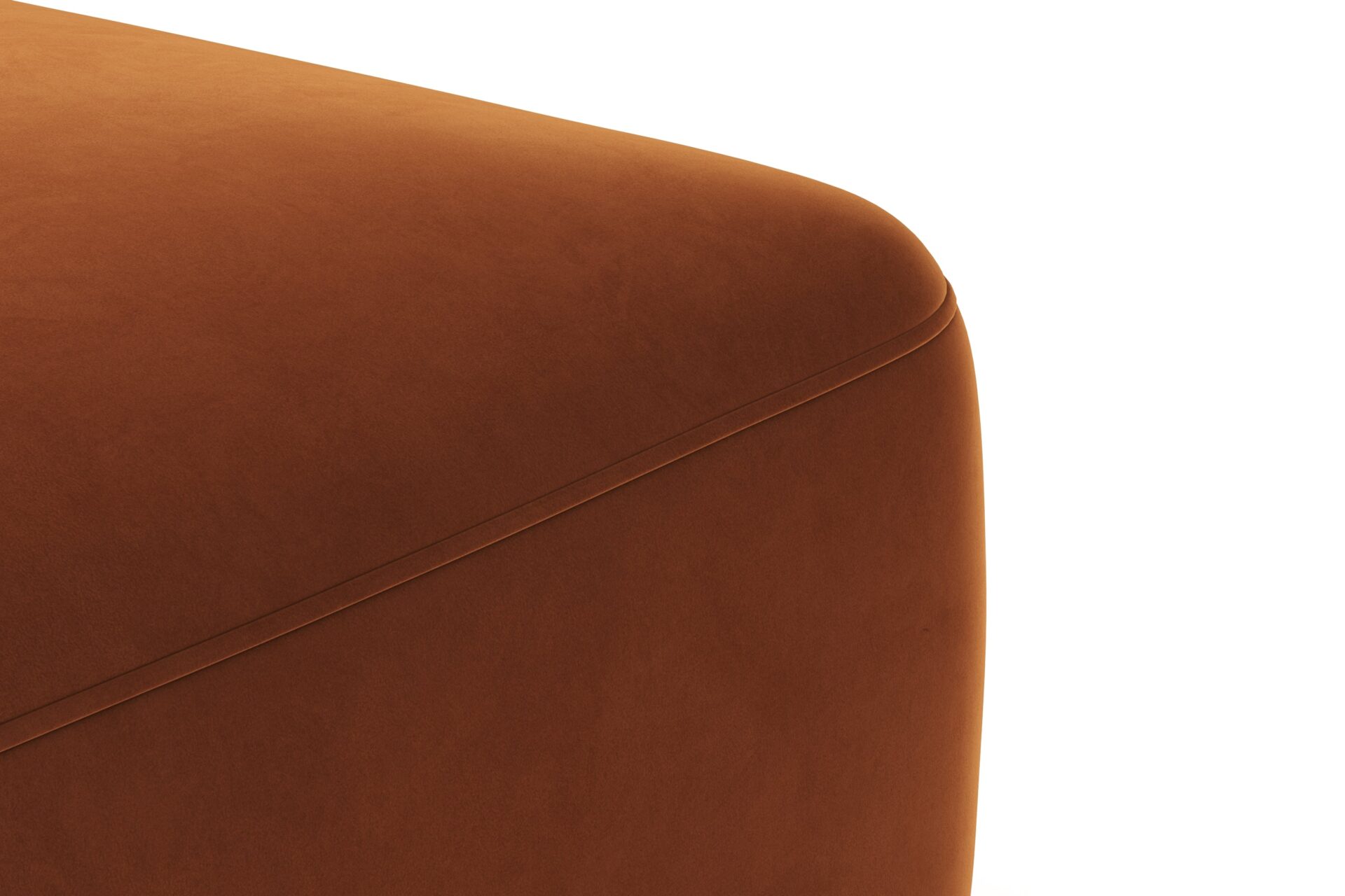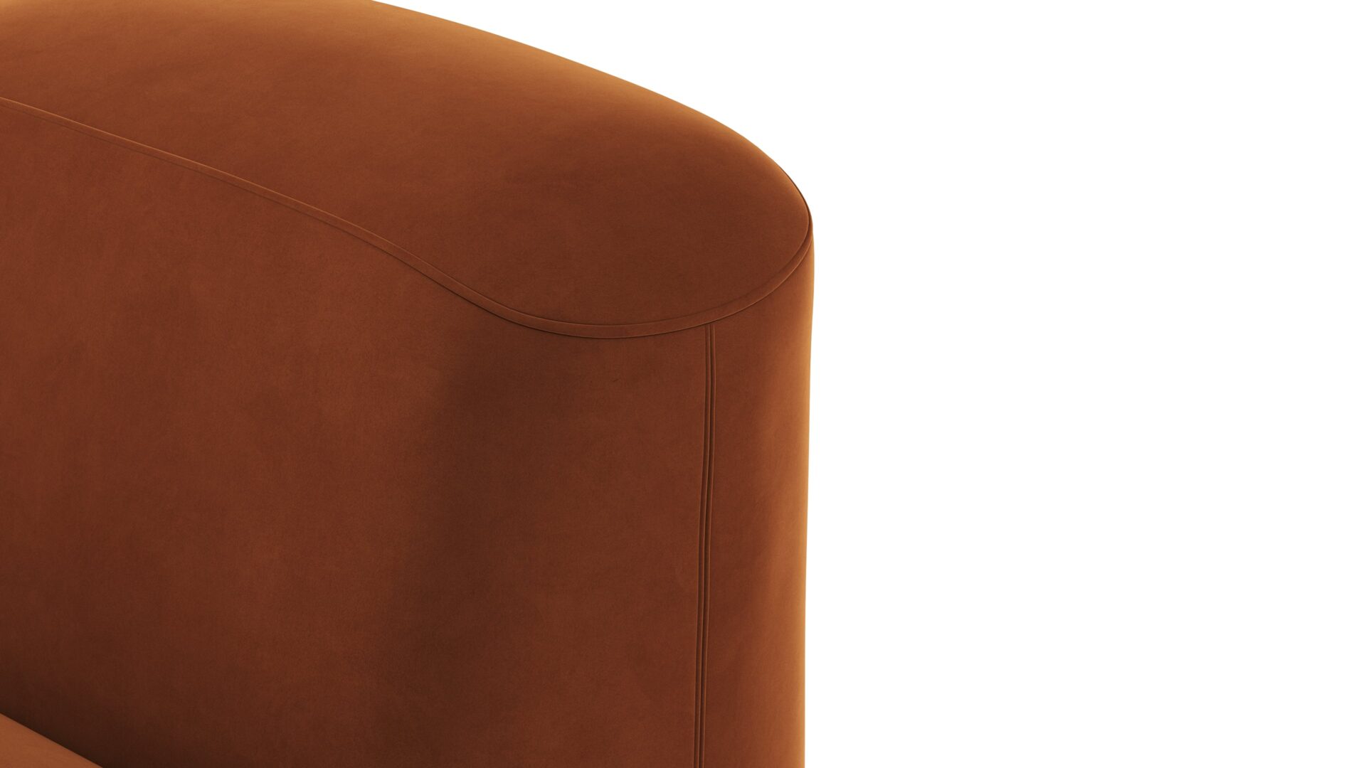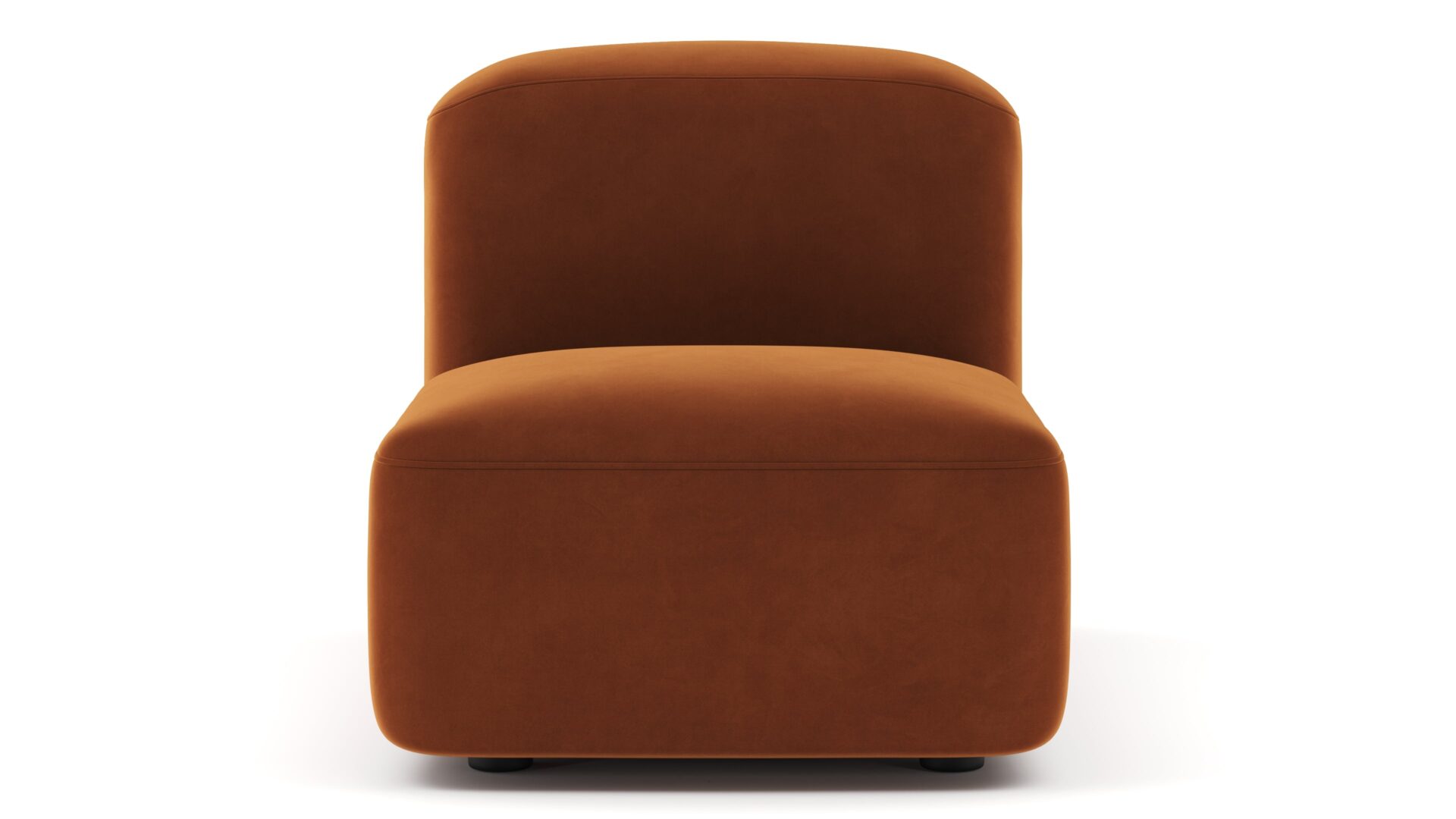 Sleek and eye-catching, the modules showcase plush velvet upholstery, sturdy arms, curved edges, and intricate stitching for both a tactile and visual allure. The burnt orange color infuses a hint of coziness and enduring elegance.