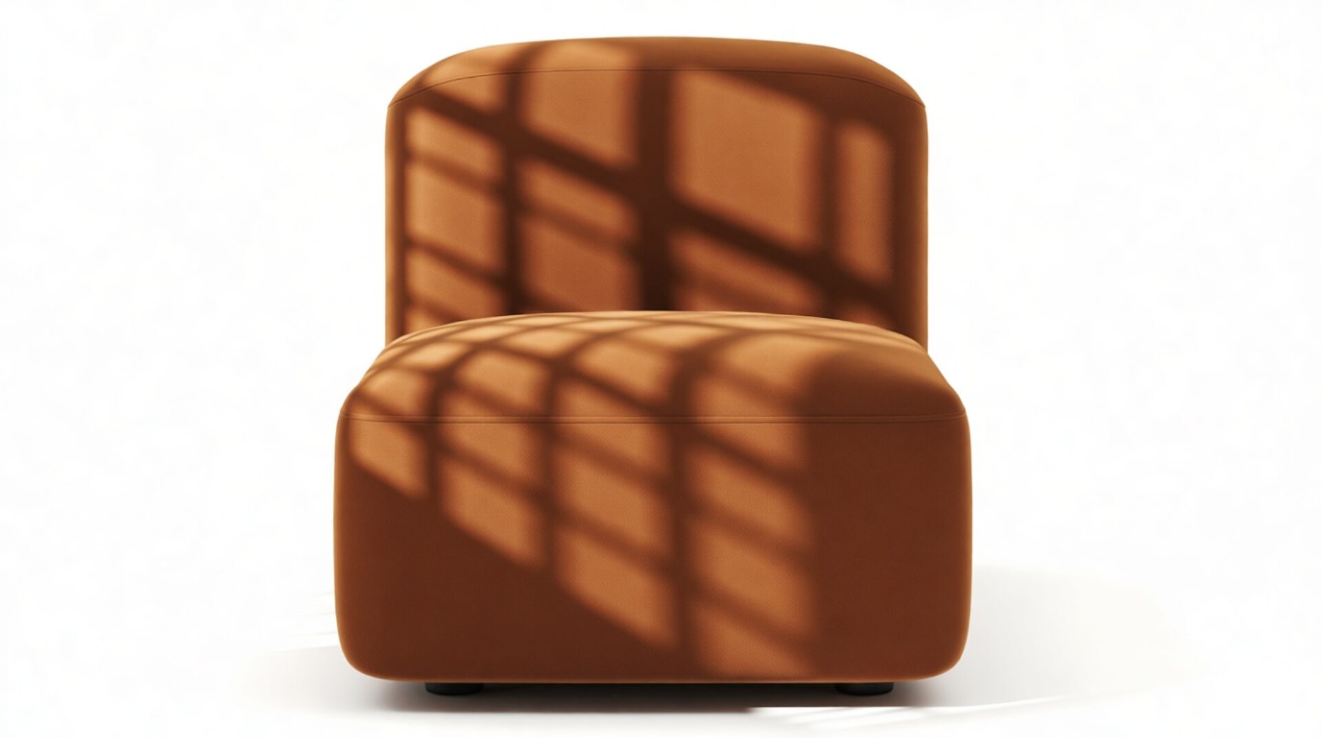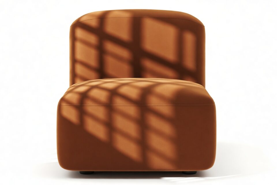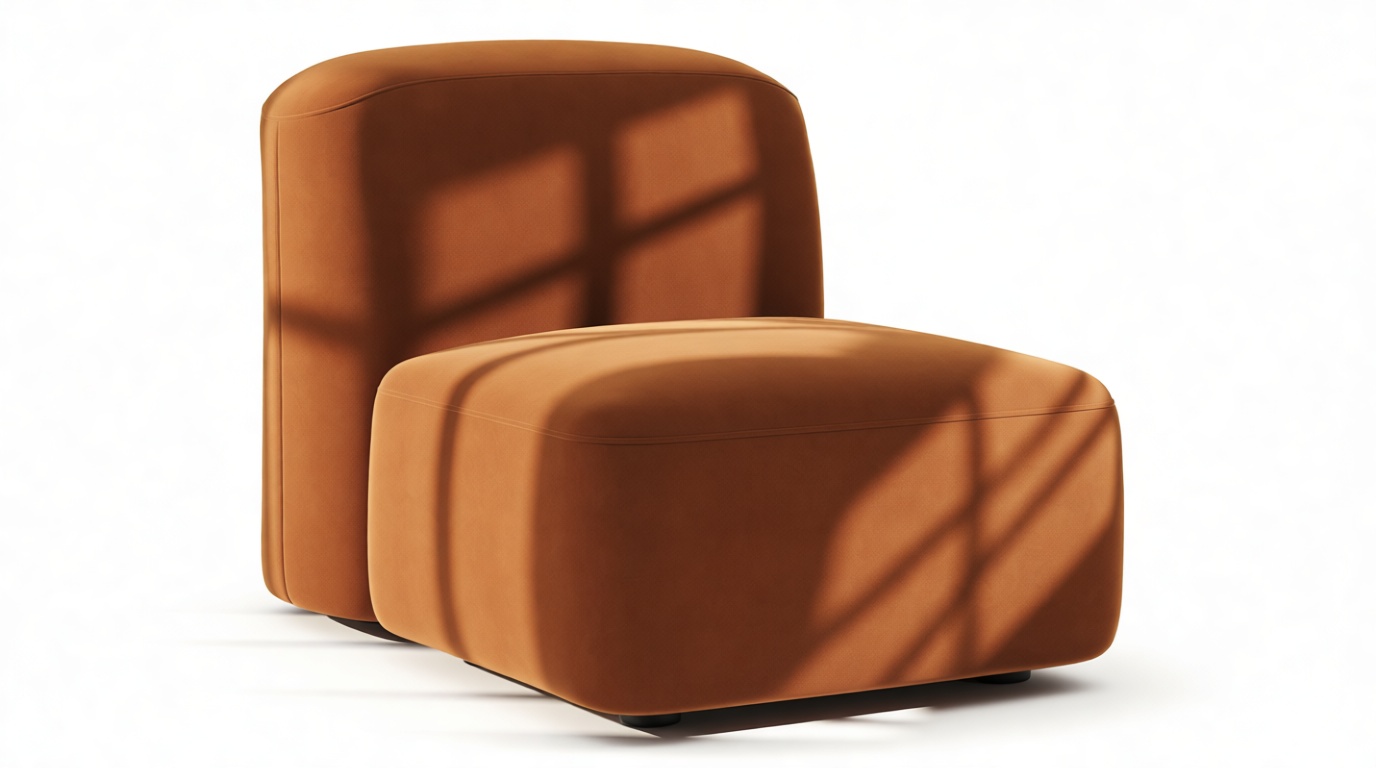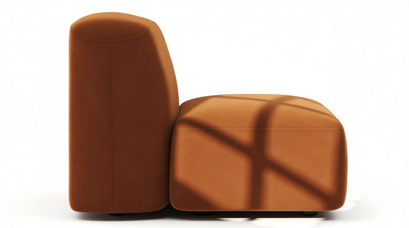 Sleek and eye-catching, the modules showcase plush velvet upholstery, sturdy arms, curved edges, and intricate stitching for both a tactile and visual allure. The burnt orange color infuses a hint of coziness and enduring elegance.