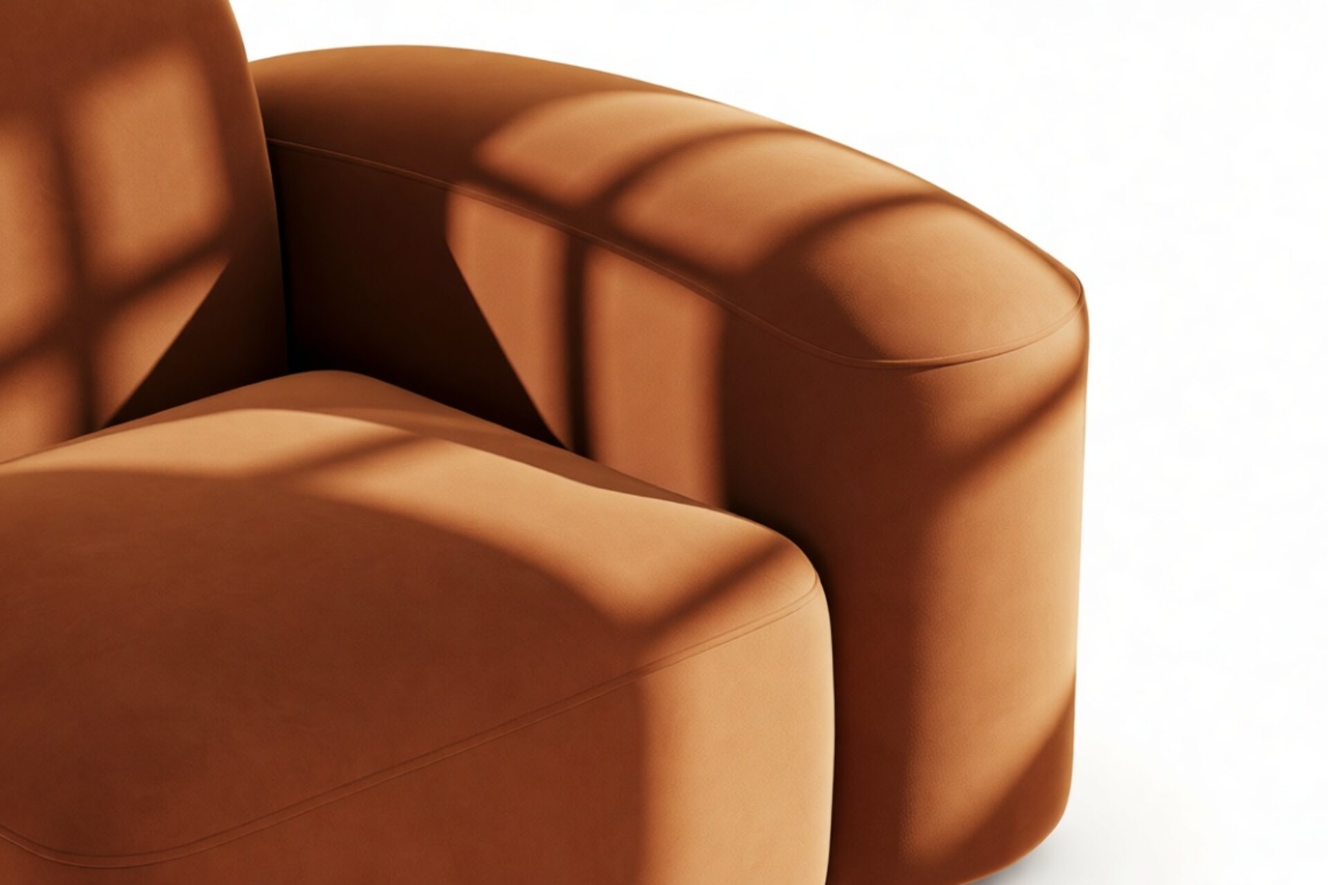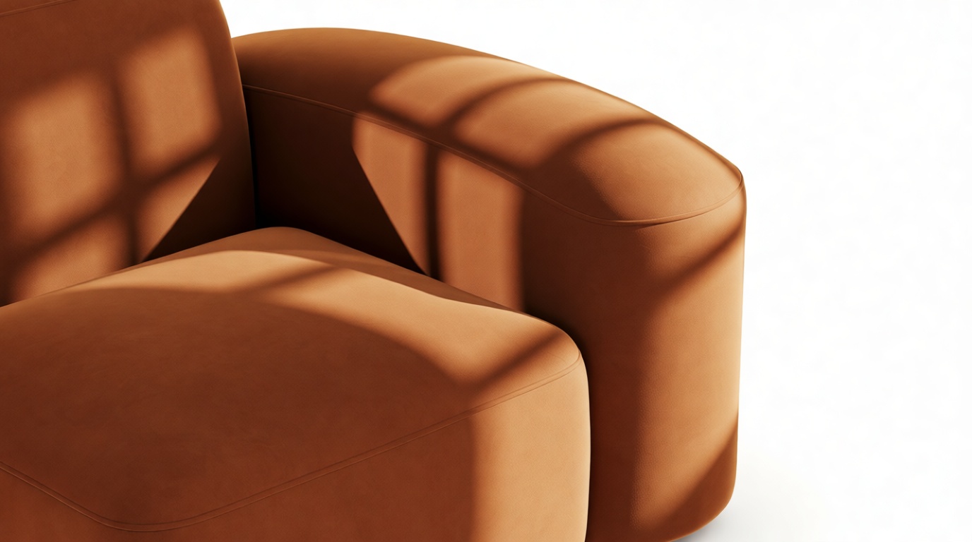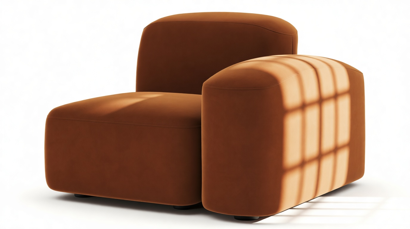 Sleek and eye-catching, the modules showcase plush velvet upholstery, sturdy arms, curved edges, and intricate stitching for both a tactile and visual allure. The burnt orange color infuses a hint of coziness and enduring elegance.