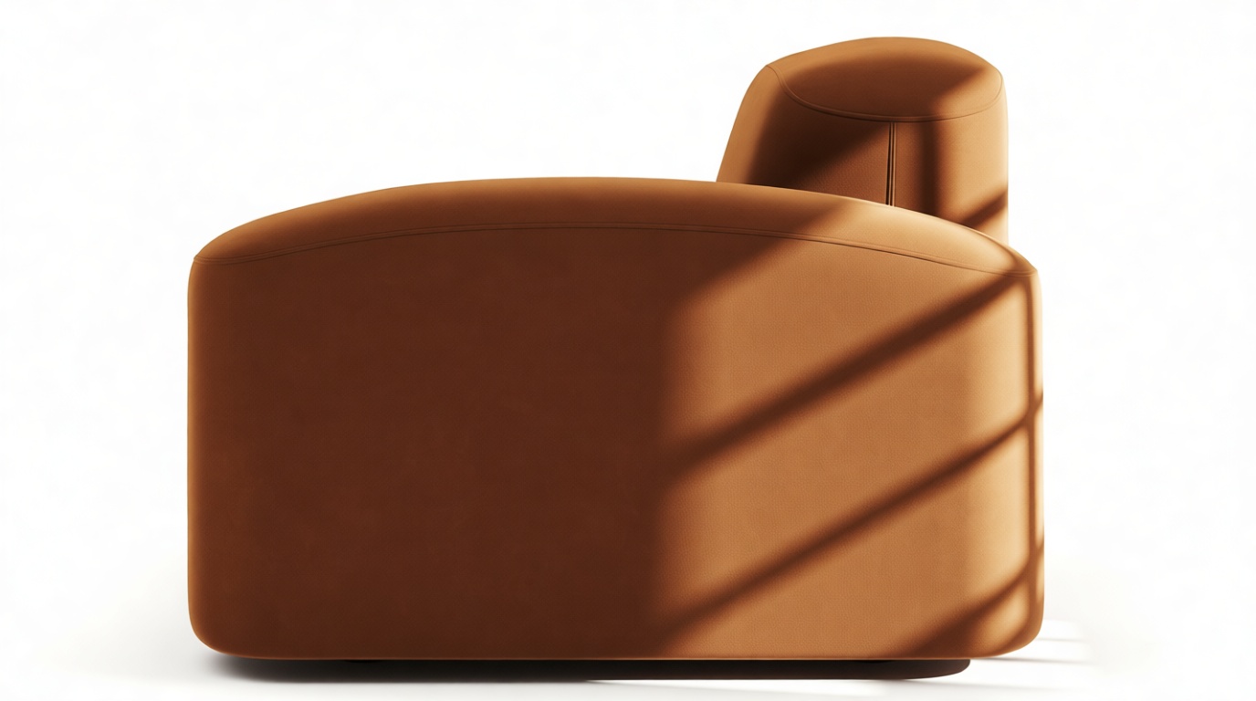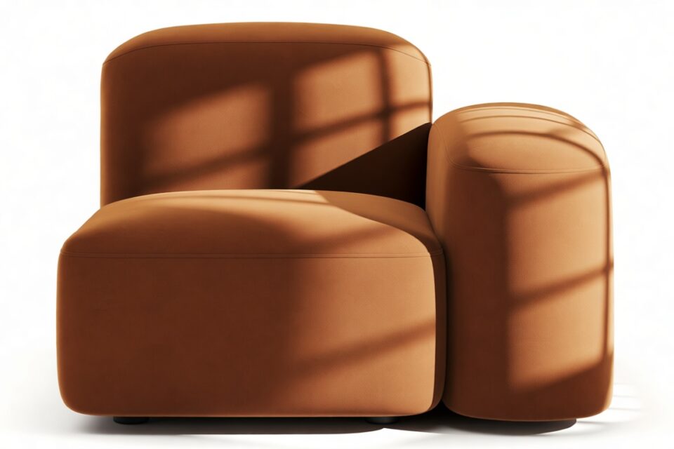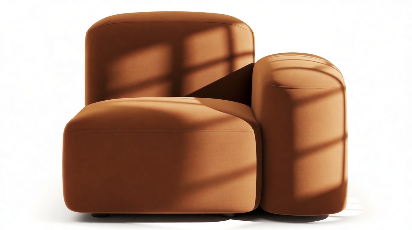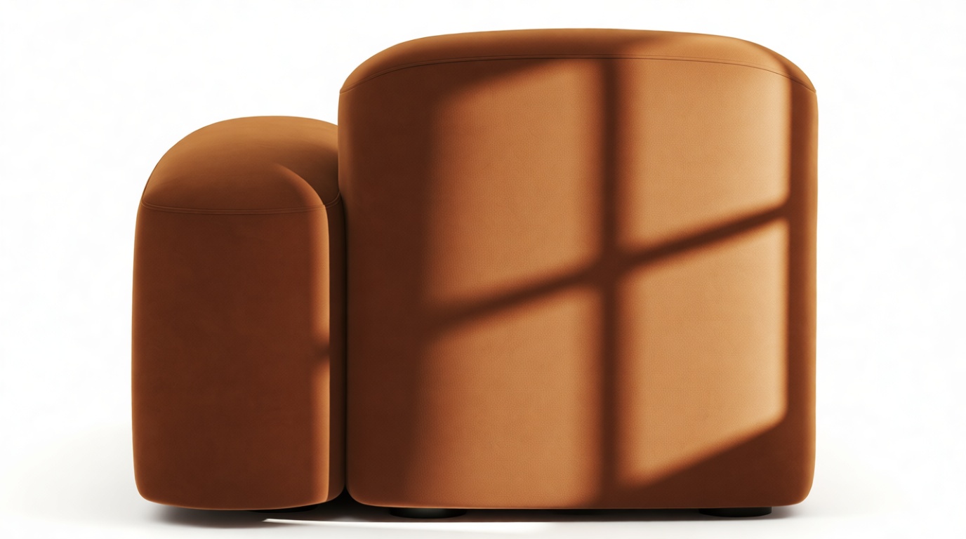 Sleek and eye-catching, the modules showcase plush velvet upholstery, sturdy arms, curved edges, and intricate stitching for both a tactile and visual allure. The burnt orange color infuses a hint of coziness and enduring elegance.