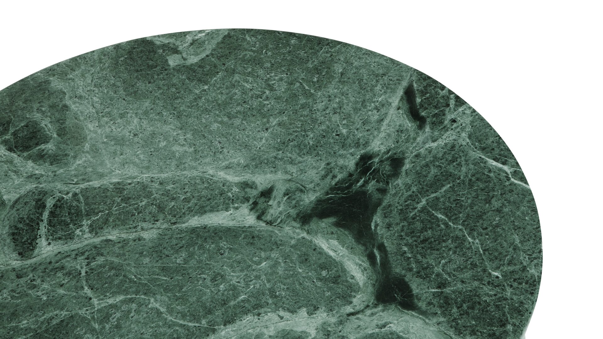 Expertly crafted with precision, this coffee table showcases a round top, offered in green marble or travertine, radiating natural beauty and enduring elegance. The authentic Italian stone, renowned for its unique patterns and hues, brings an essence of organic sophistication to any home decor. Every individual piece of travertine and marble is meticulously chosen and hand-finished to highlight its distinctive qualities.