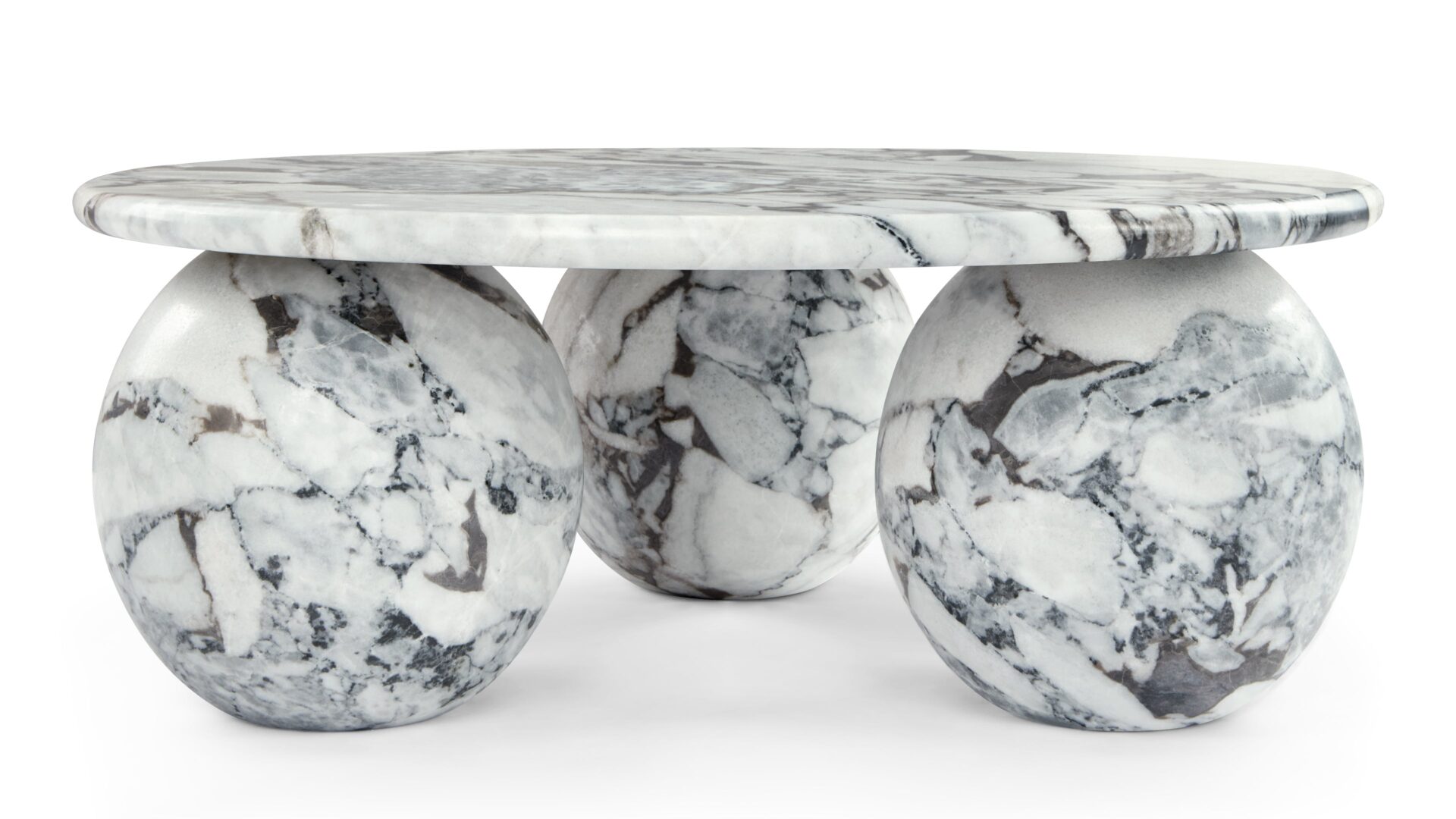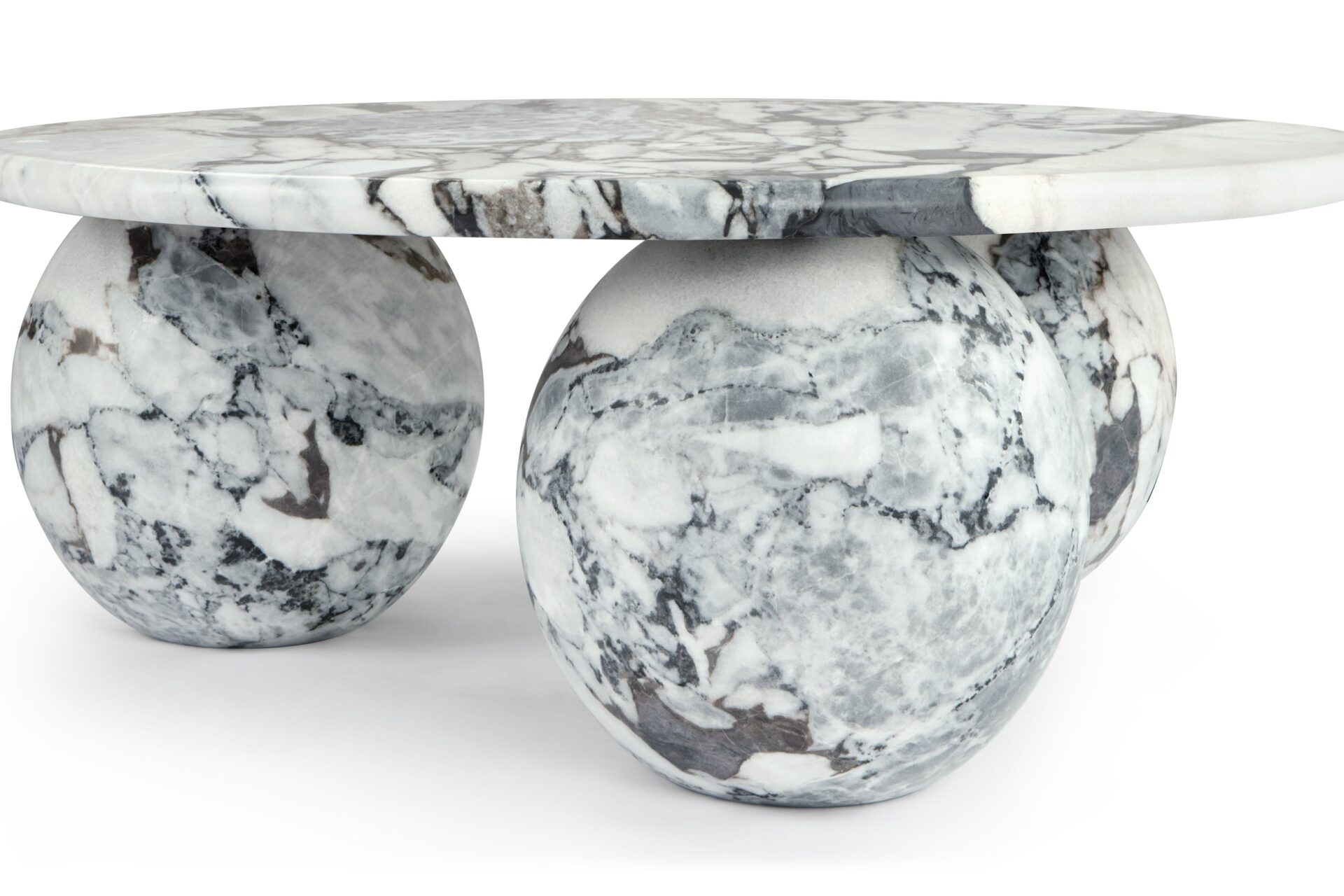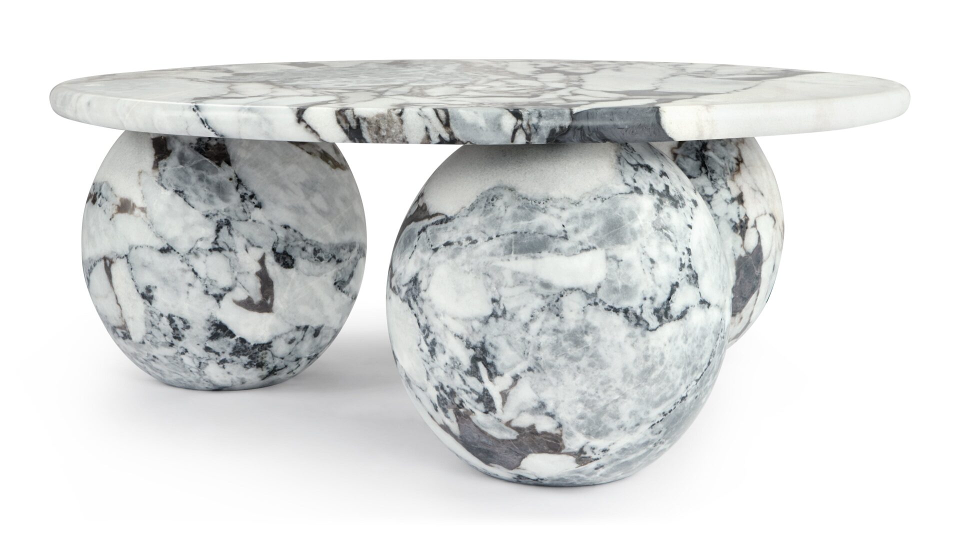 Introducing the Mya Coffee Table, a stunning blend of organic beauty and contemporary design featuring Modellato Marble that exudes luxury. Its distinctive three-sphere base adds a sculptural touch, while the round tabletop provides ample space for decor or drinks. Elevate your space with this modern masterpiece, showcasing exceptional craftsmanship and timeless sophistication.