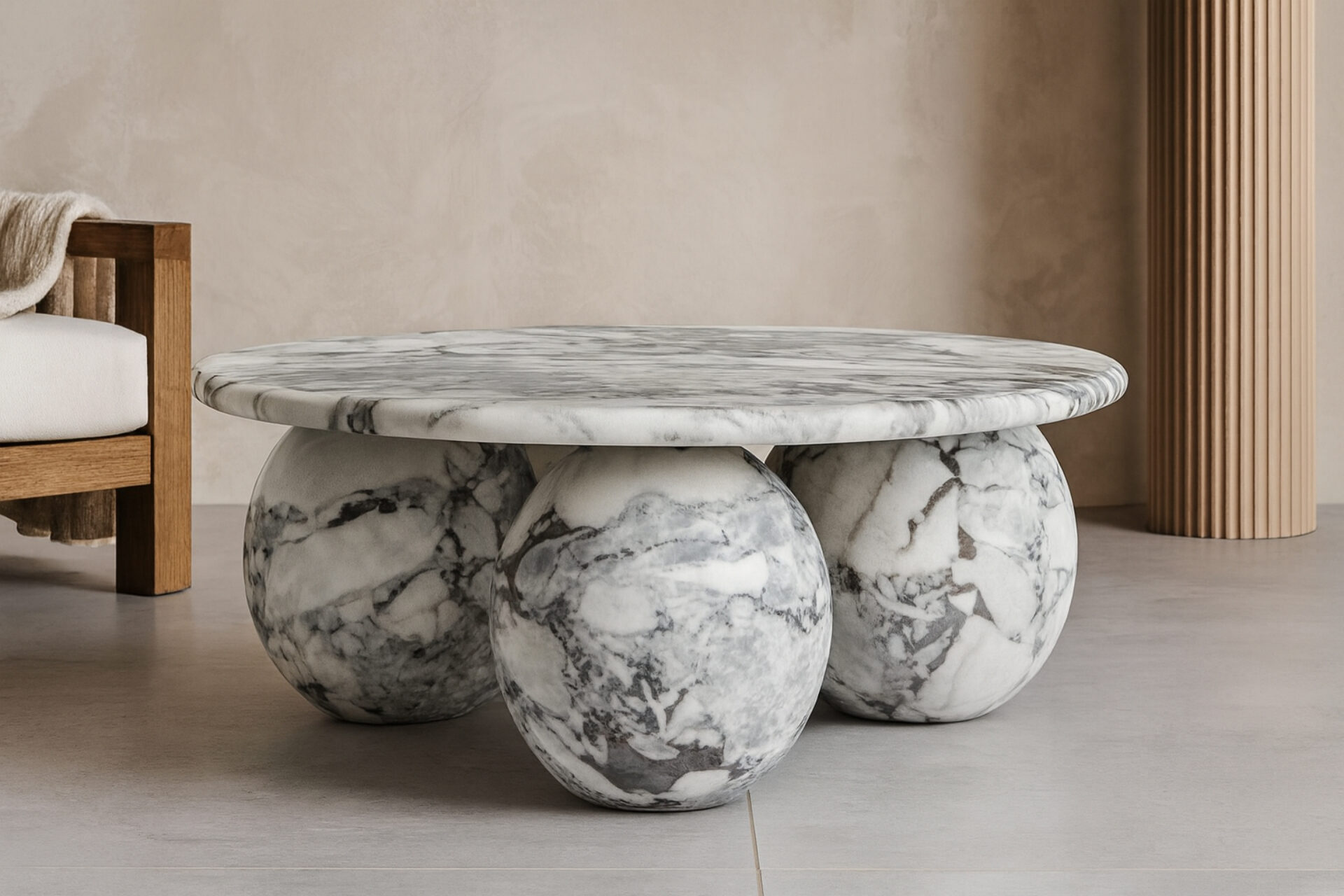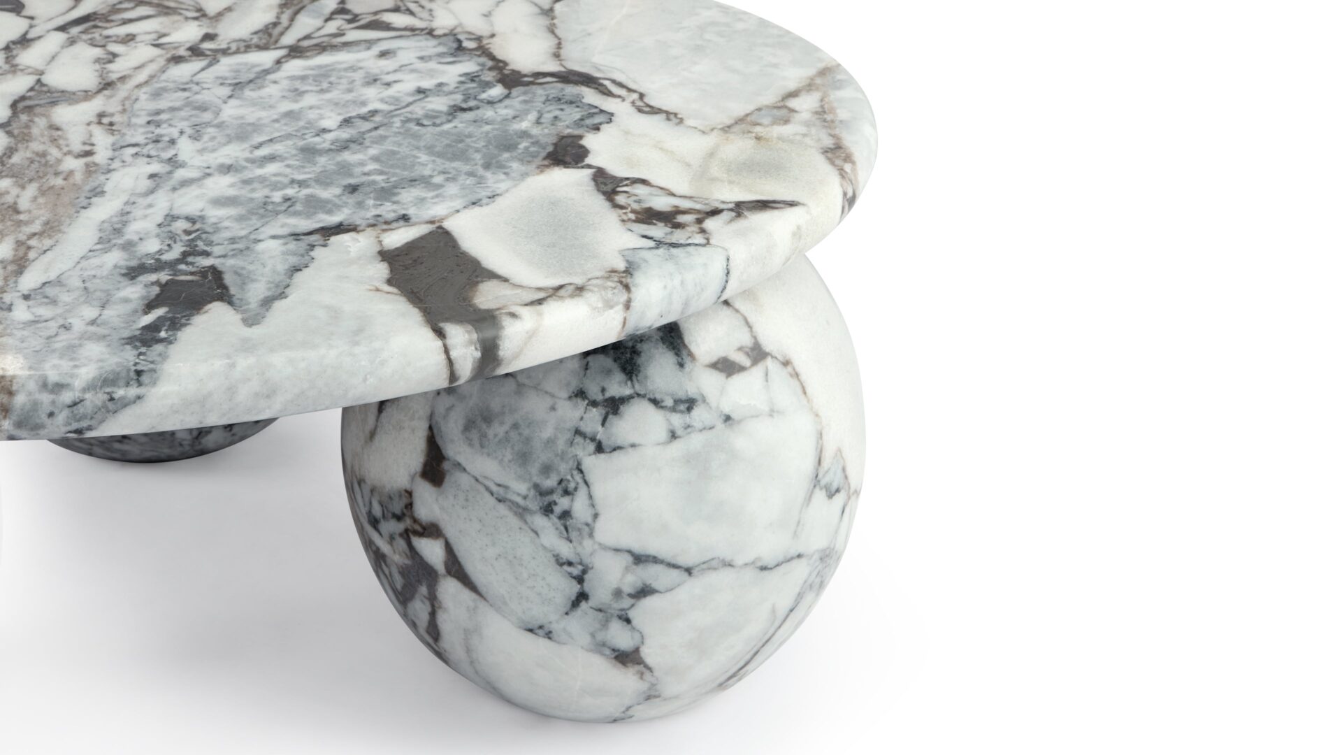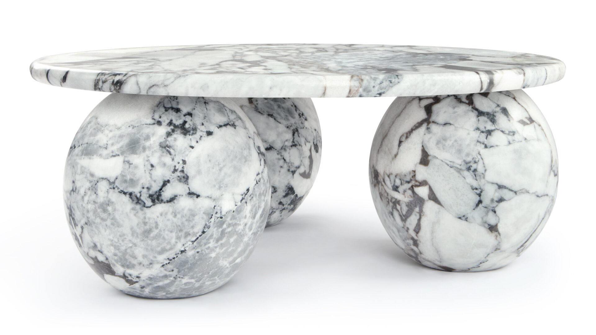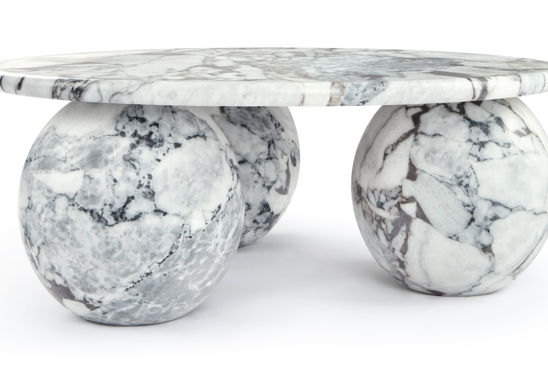 Introducing the Mya Coffee Table, a stunning blend of organic beauty and contemporary design featuring Modellato Marble that exudes luxury. Its distinctive three-sphere base adds a sculptural touch, while the round tabletop provides ample space for decor or drinks. Elevate your space with this modern masterpiece, showcasing exceptional craftsmanship and timeless sophistication.