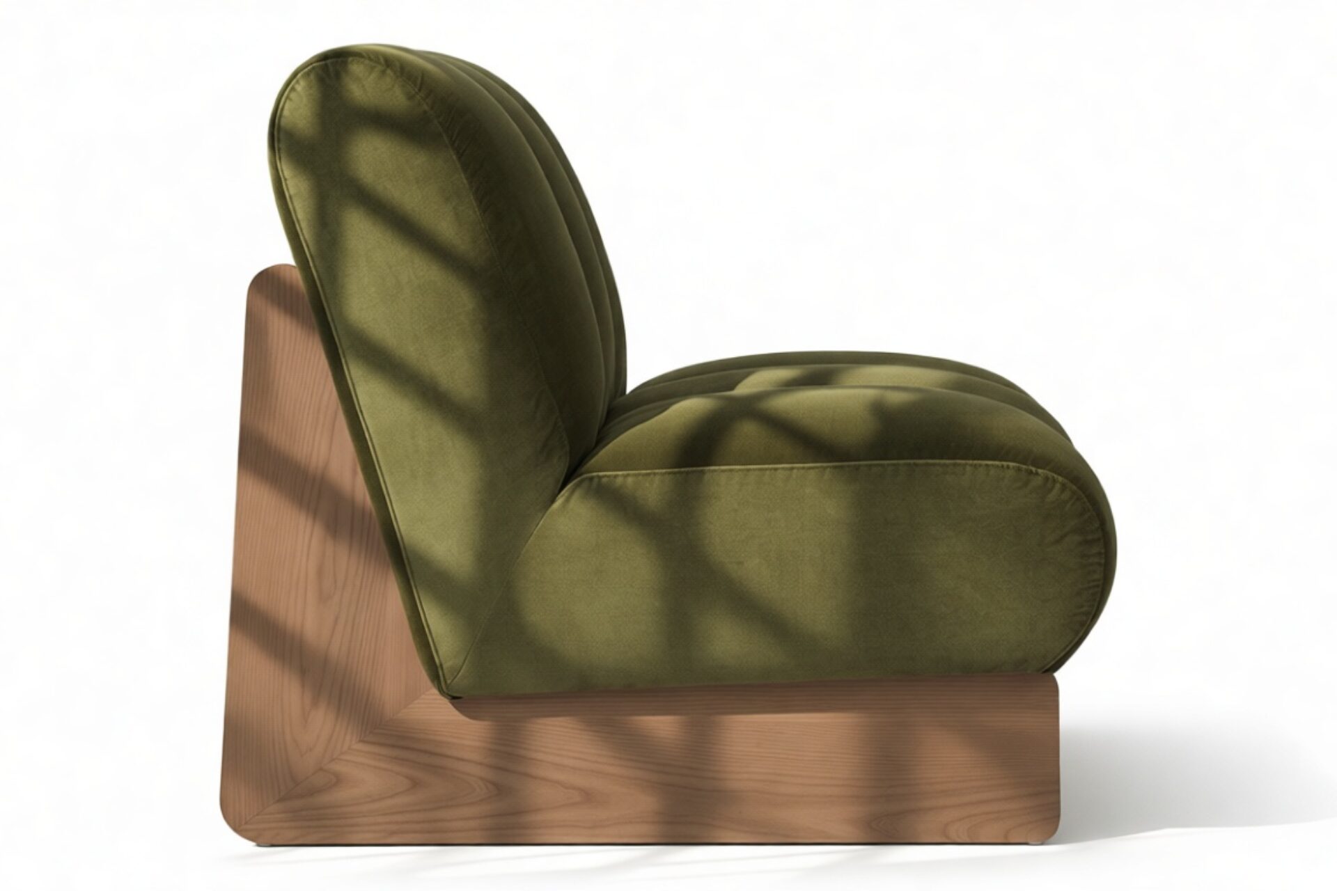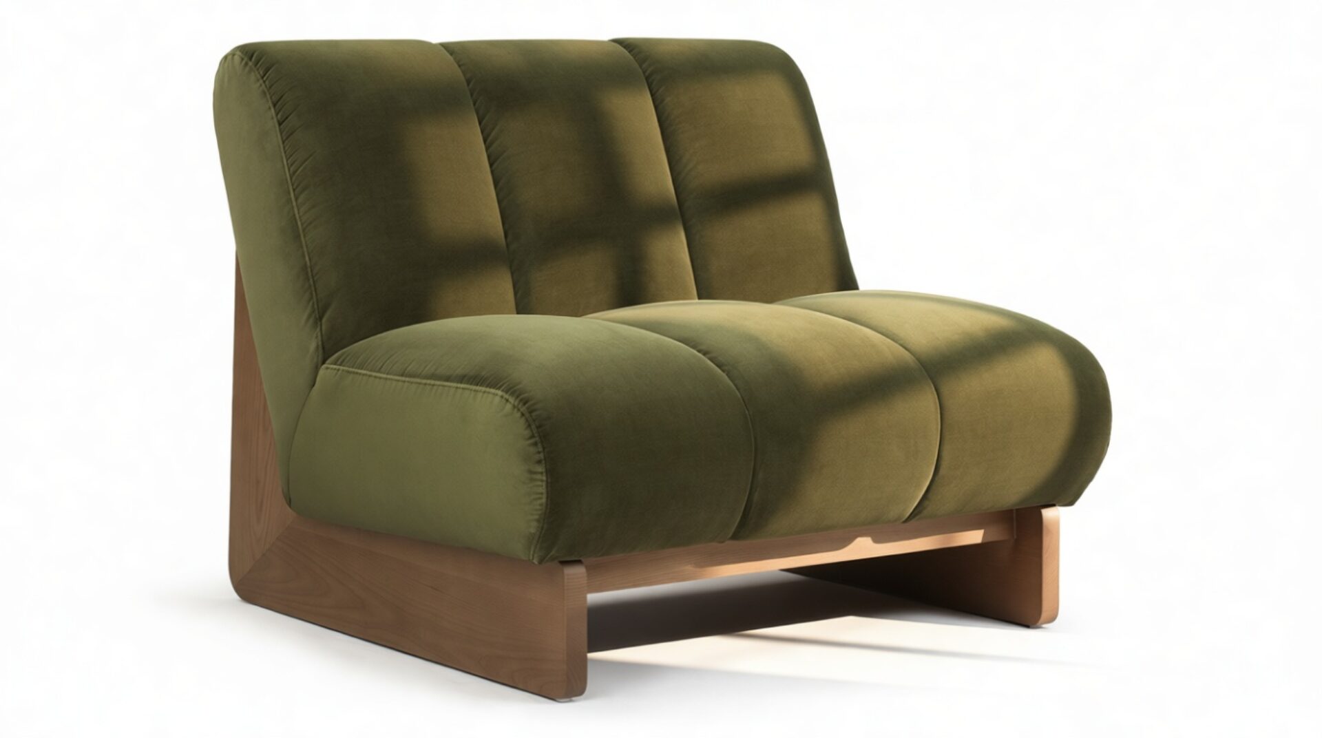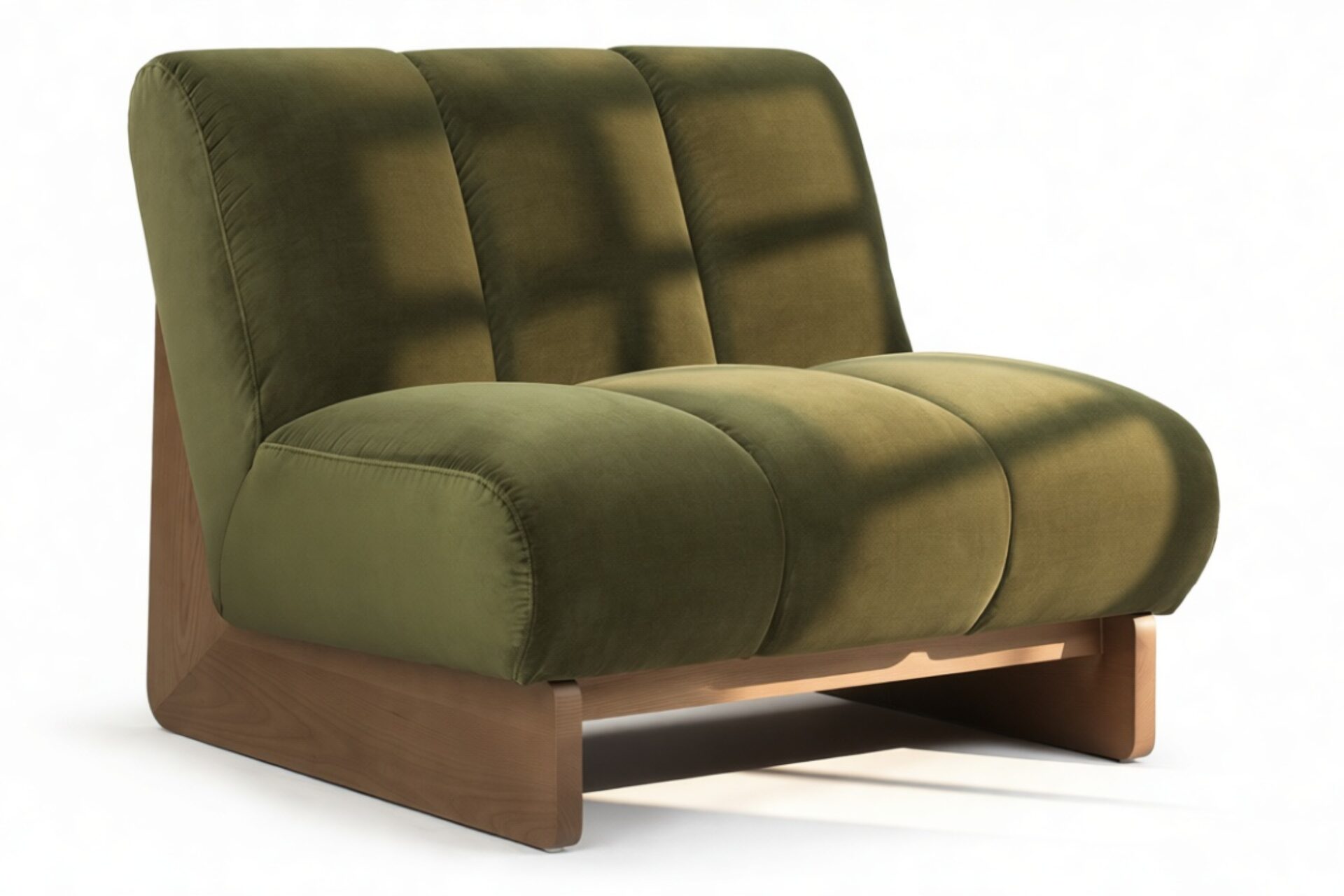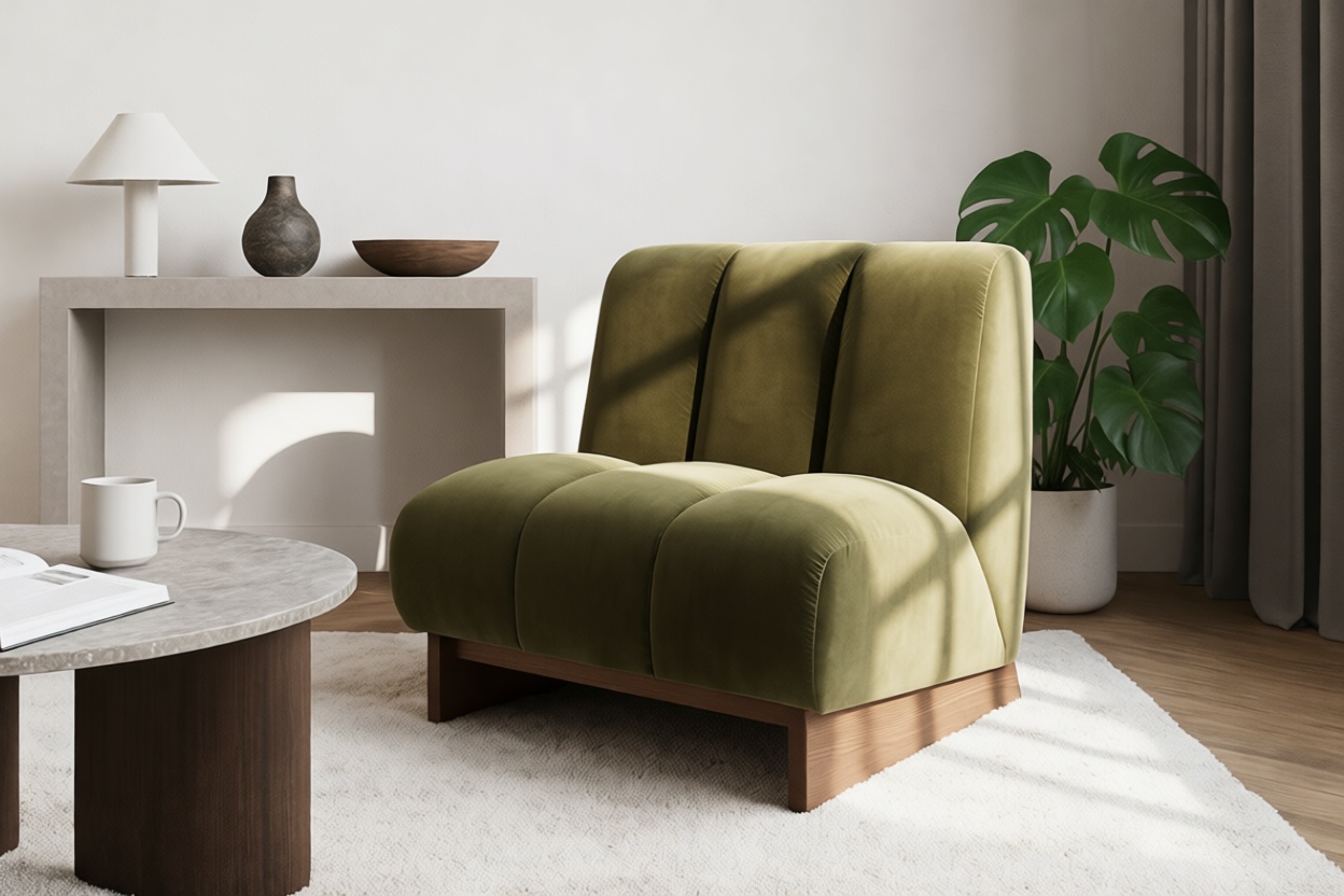 Experience the pinnacle of mid-century elegance with the Nala Lounge Chair. Featuring a low-profile silhouette, channel-tufted upholstery, and a sleek sled-style walnut base, this chair radiates an aura of refined luxury that demands attention.