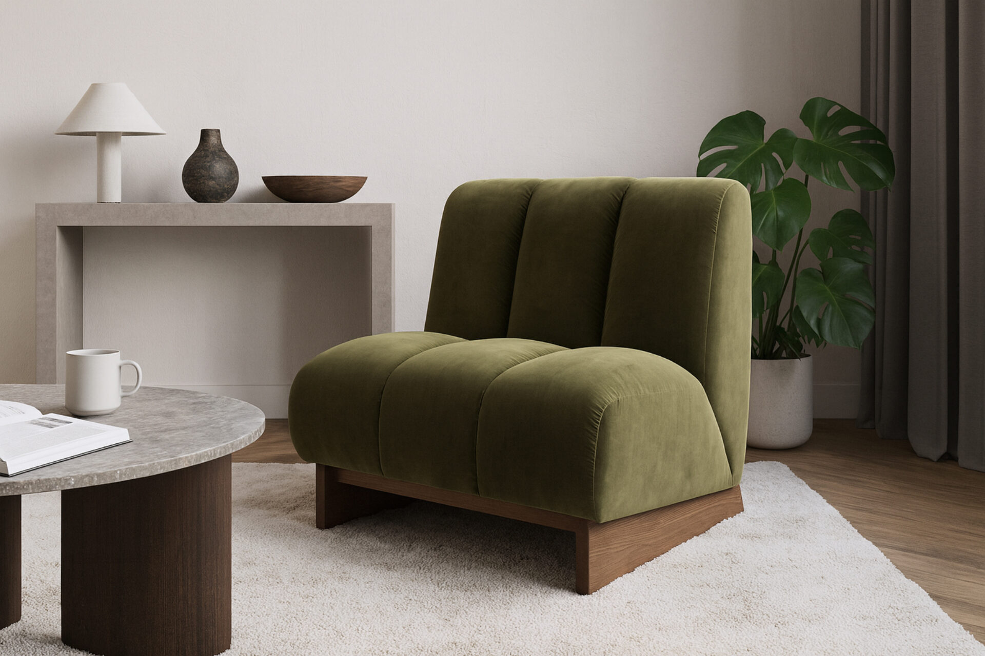 Experience the epitome of mid-century elegance with the Nala Lounge Chair. Boasting a low-profile silhouette, channel-tufted upholstery, and a sleek sled-style walnut base, this chair exudes refined luxury. Meticulously crafted, it transcends furniture to stand as a symbol of discerning taste and exceptional artistry. Enhance any setting with the enduring charm and unmatched comfort of the Nala Lounge Chair. Indulge in the timeless allure of the sumptuous green velvet Emerald Chair, blending vintage appeal with modern style. Unwind in sophistication with the Bentley Chair, featuring a sled-style walnut base for reliable support and an aesthetically captivating design that commands attention in any space.