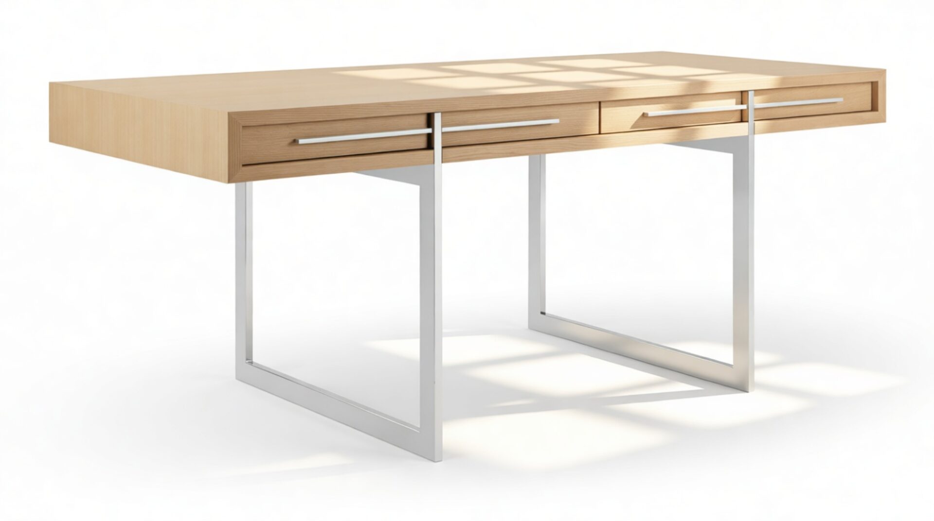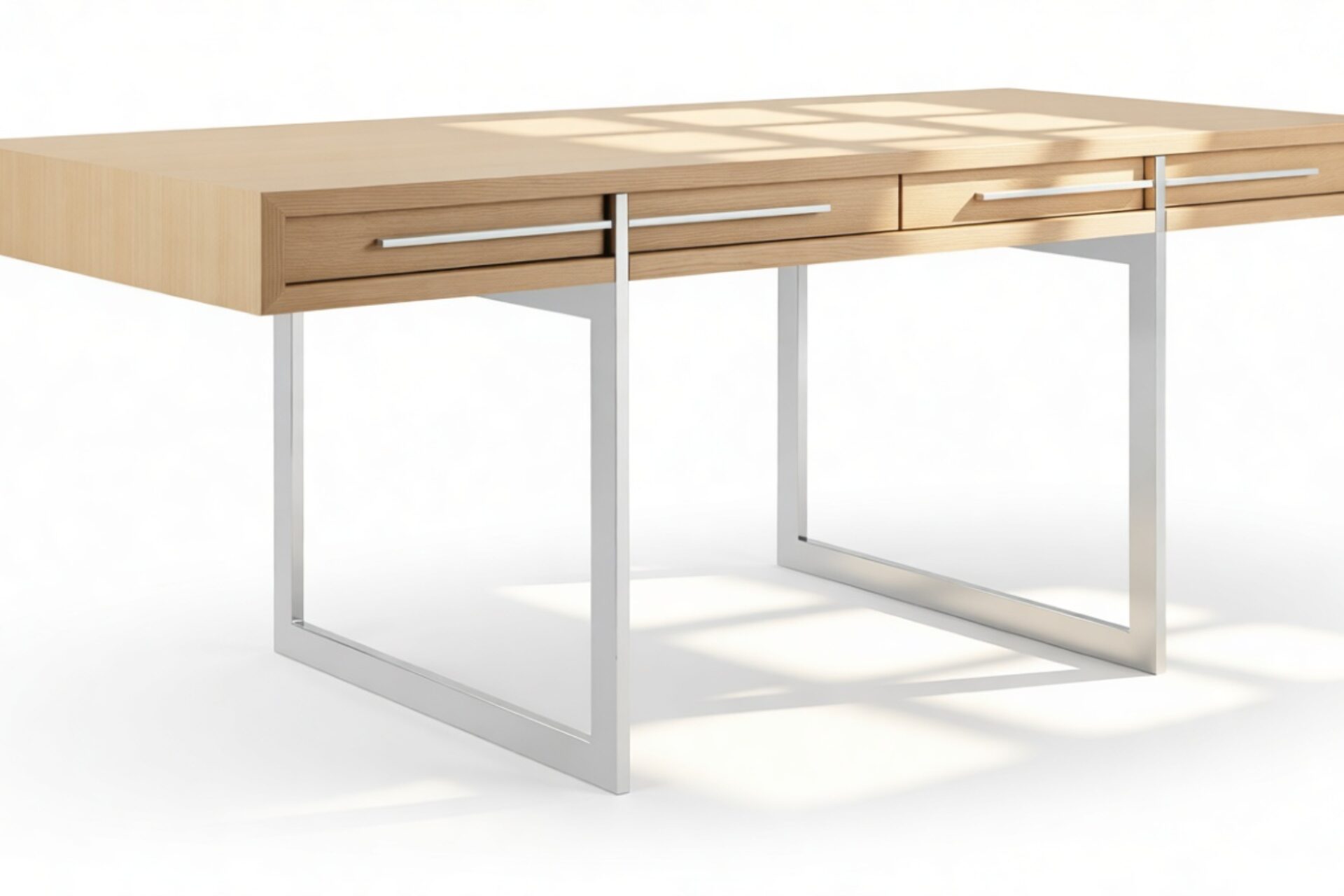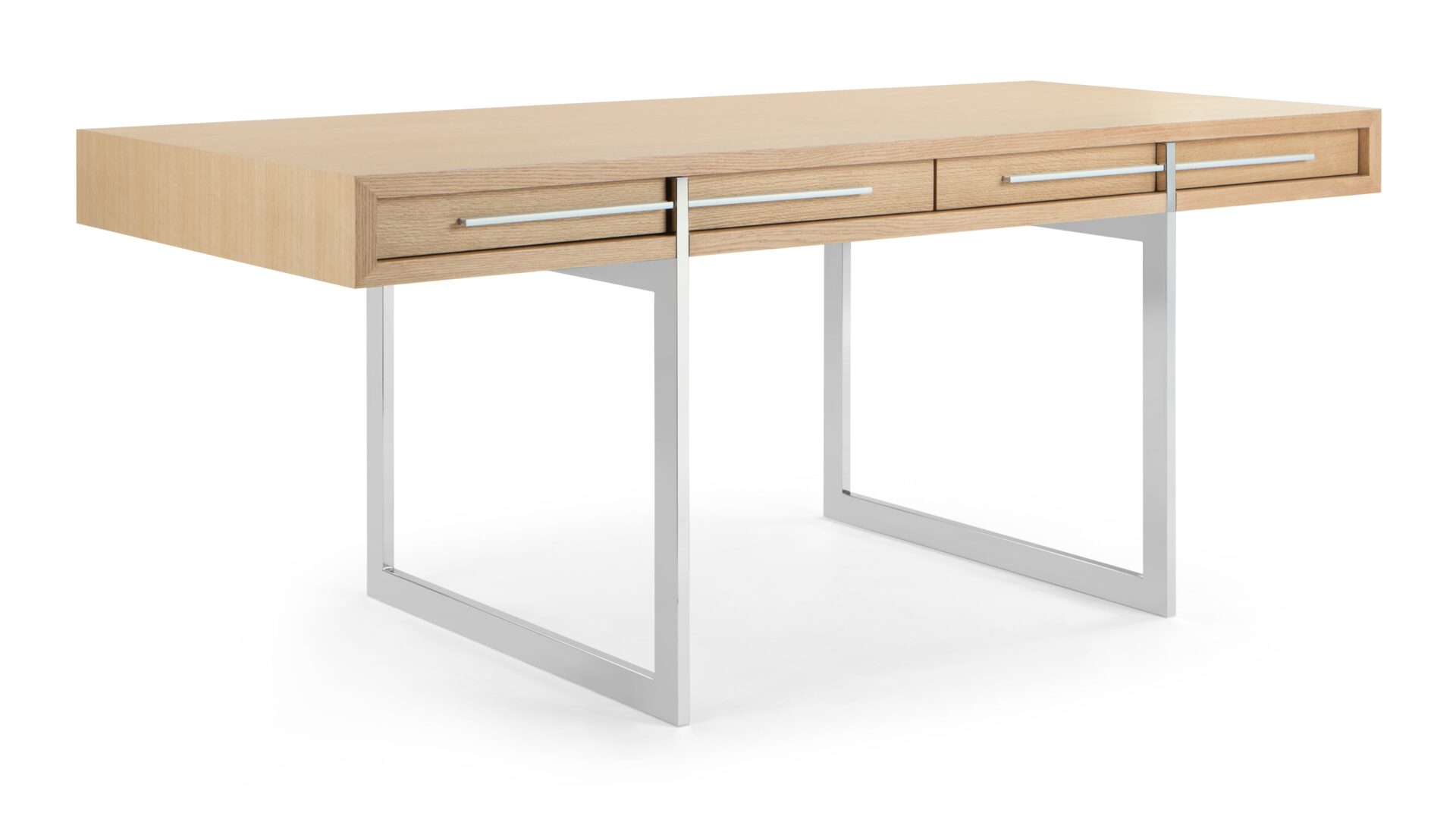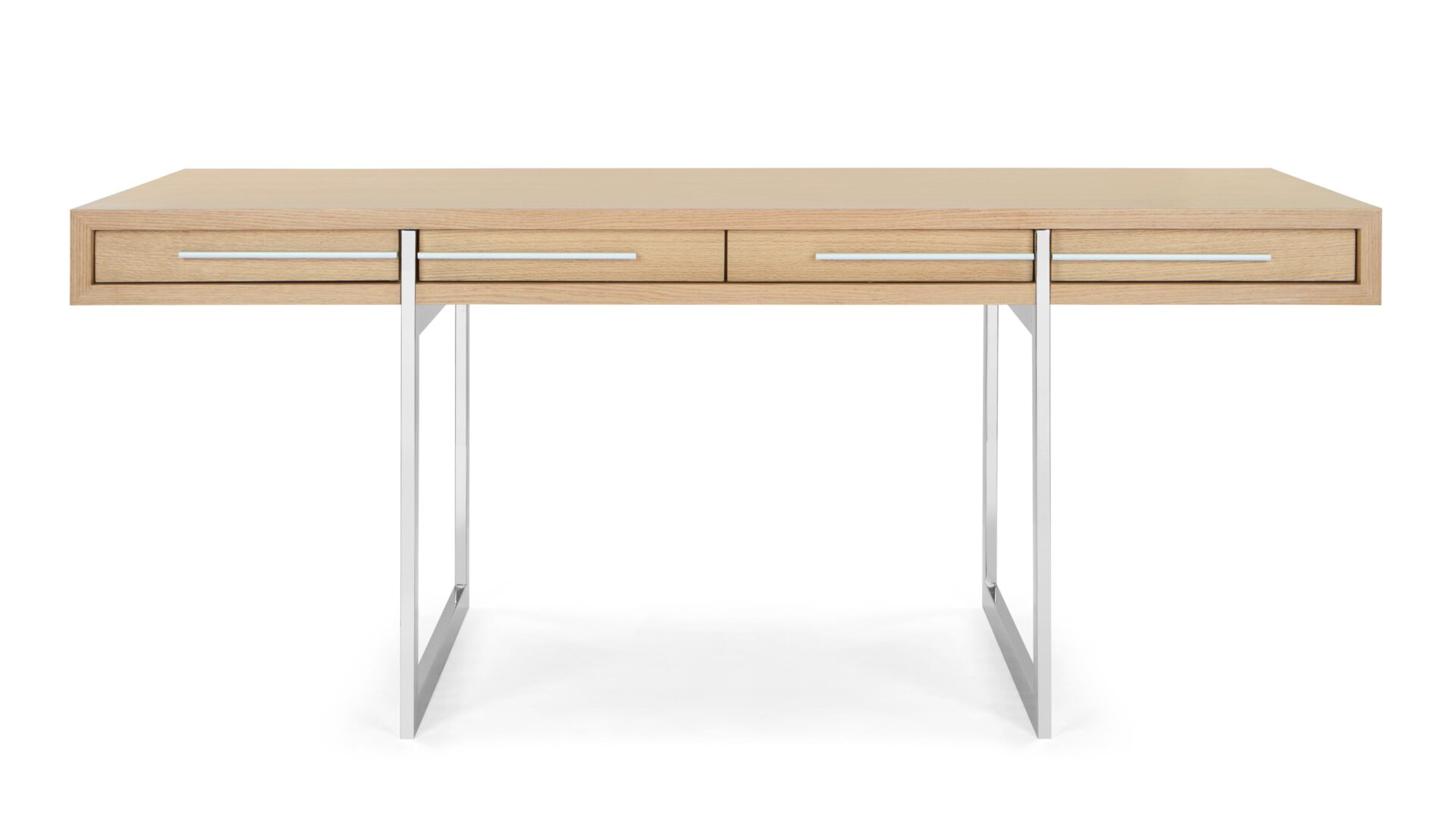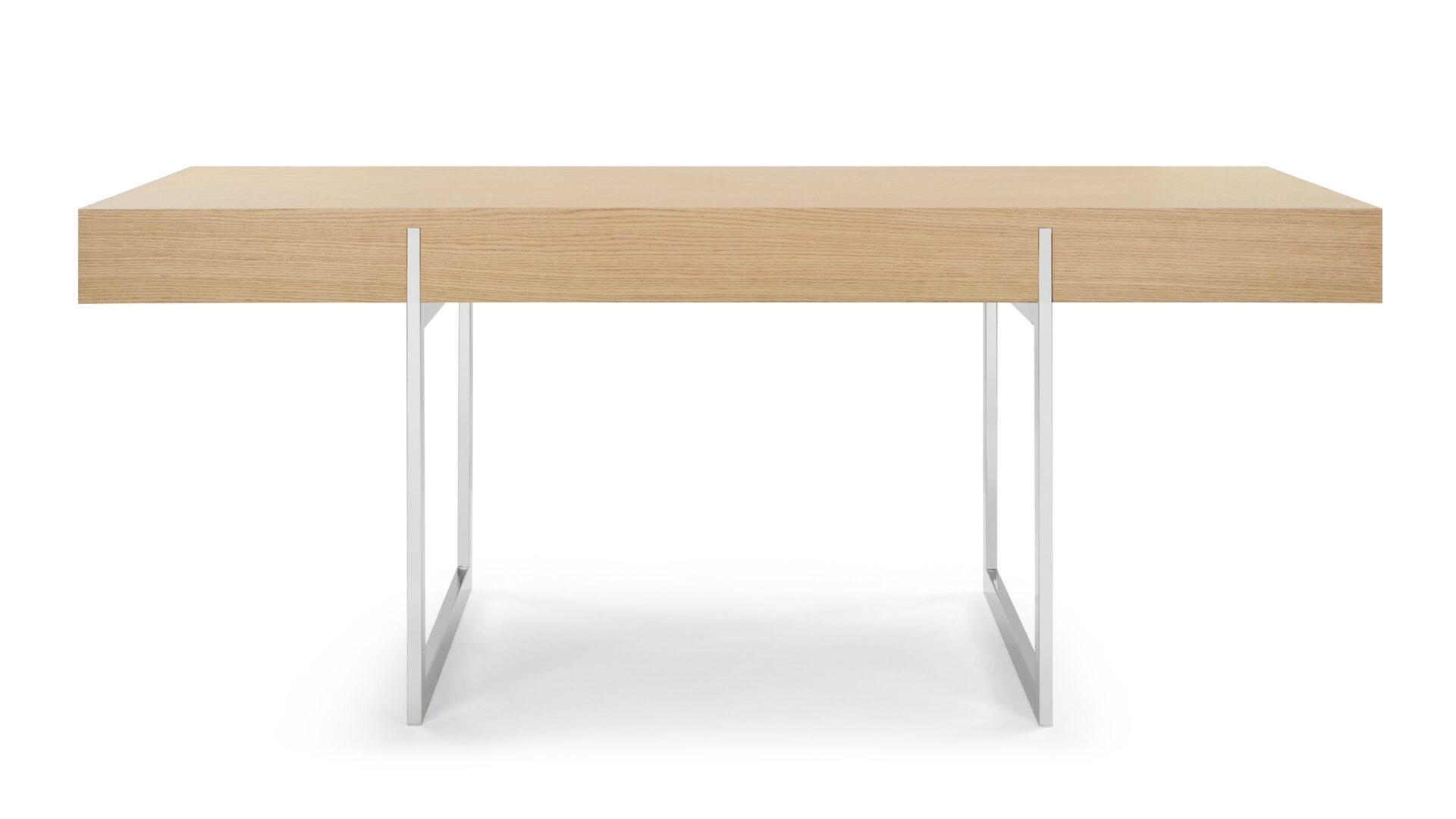 Introducing the Naver Desk, a mid-century modern masterpiece renowned for its sculptural elegance. Reflecting the enduring allure of mid-century aesthetics, this piece harmoniously blends form and function. Crafted from high-quality oak with stainless steel legs, it exudes timeless beauty. Elevate your workspace with this chic, oak-finished essential that promises both style and substance.
