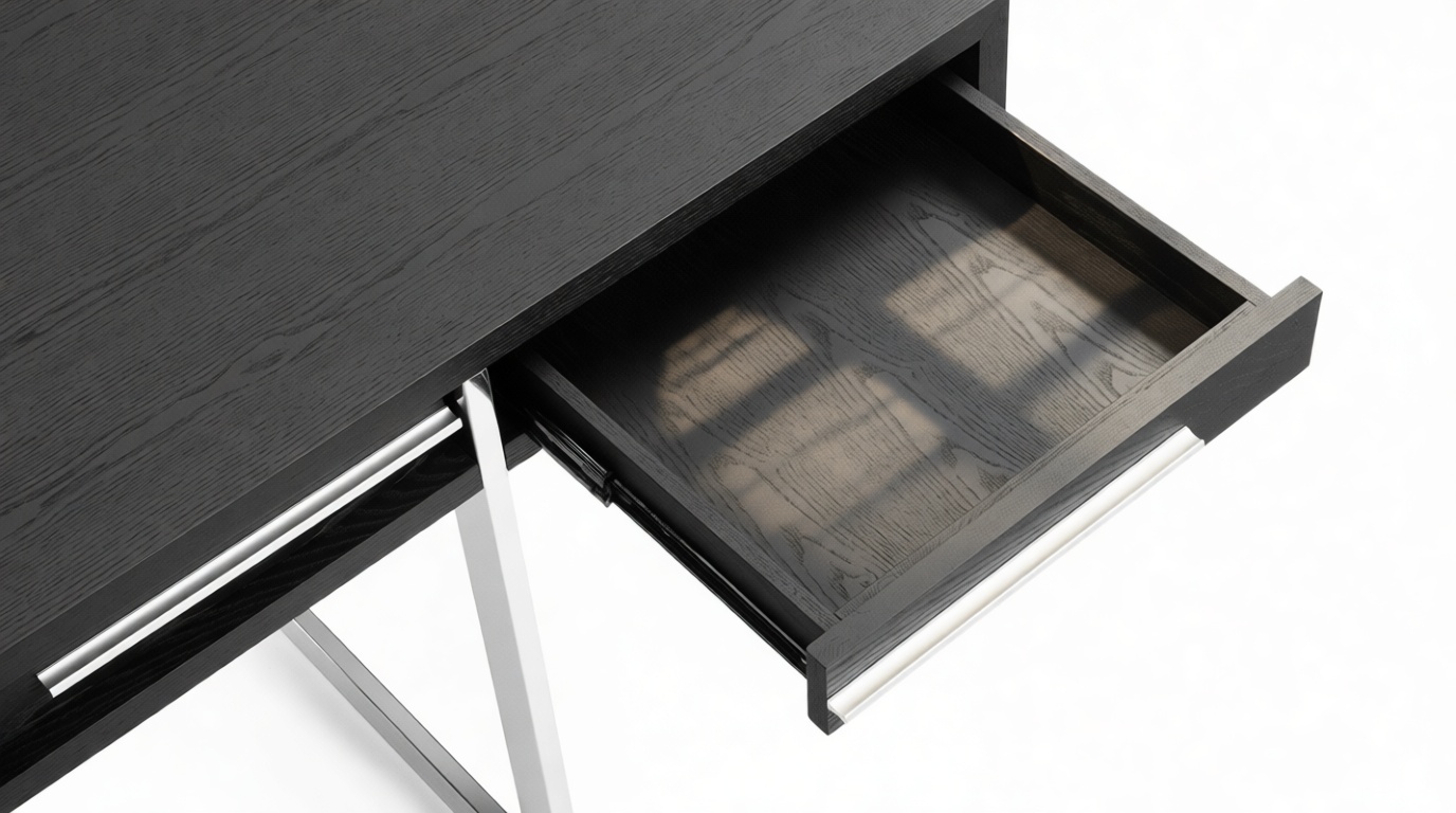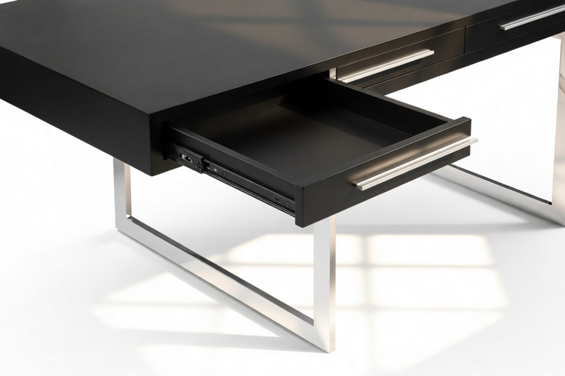 Enhance the aesthetic of your home office or master suite with the Naver Desk, featuring clean lines and a contemporary design. Its geometric shape and combination of materials establish this essential piece as a refined focal point in any space. Crafted with high-quality materials, rest assured that this desk is built to stand the test of time for generations to come.