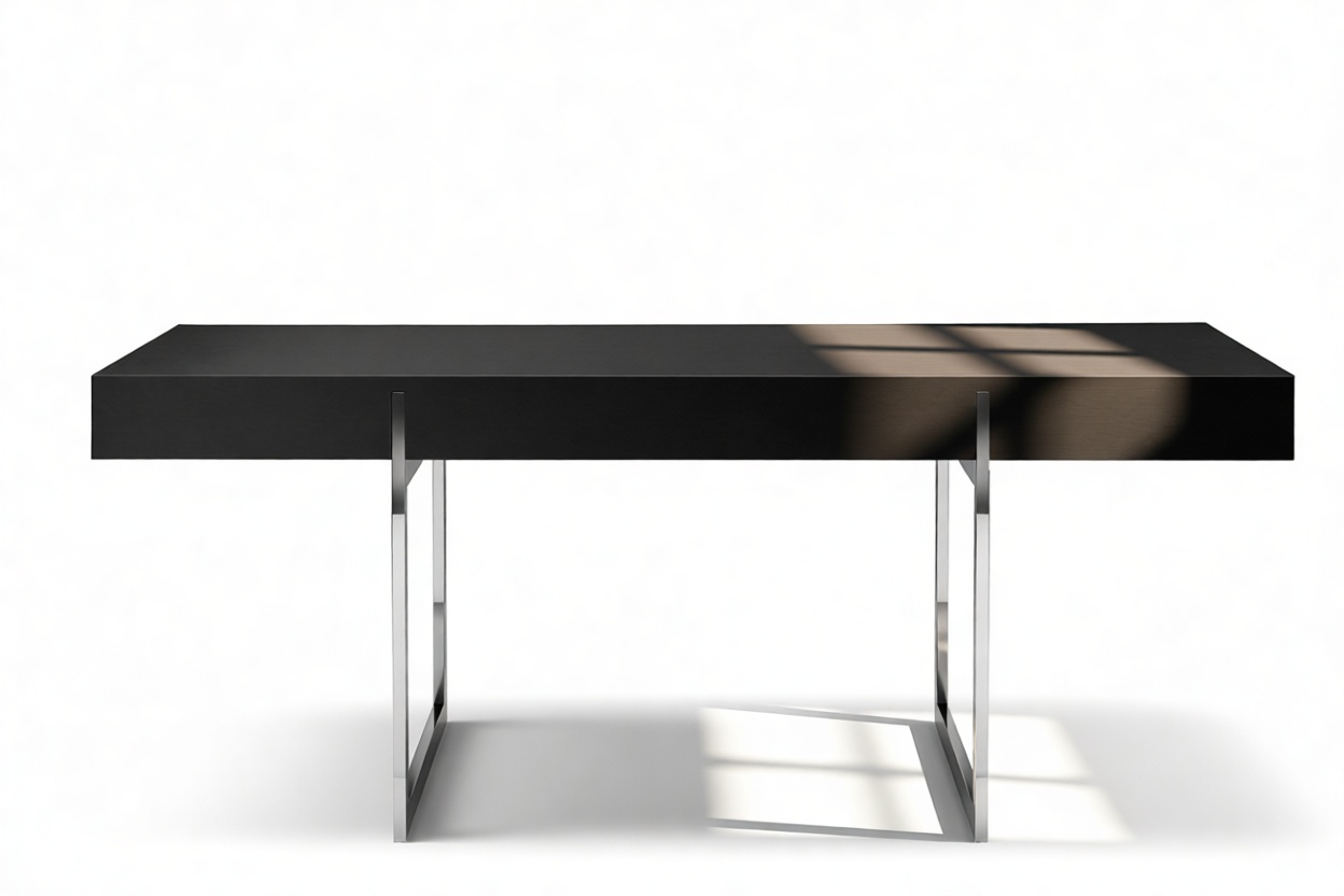 Introducing the Naver Desk, a sleek and timeless mid-century modern essential that effortlessly combines style and function with its iconic sculptural design. Elevate your home office or bedroom with the black variation, featuring clean lines and a striking contrast that adds a modern touch. Crafted with high-quality materials, the Naver Desk in black ensures lasting quality and chic sophistication that will stand the test of time.