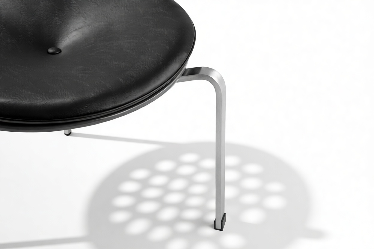 The Nils Stool's sleek tripod base presents a visually captivating design that exudes stability. With a minimalist philosophy at its core, this stool stands as a genuine work of functional art, effortlessly harmonizing with any environment.