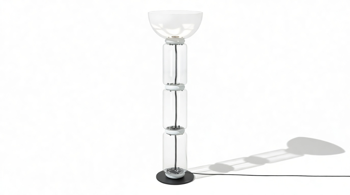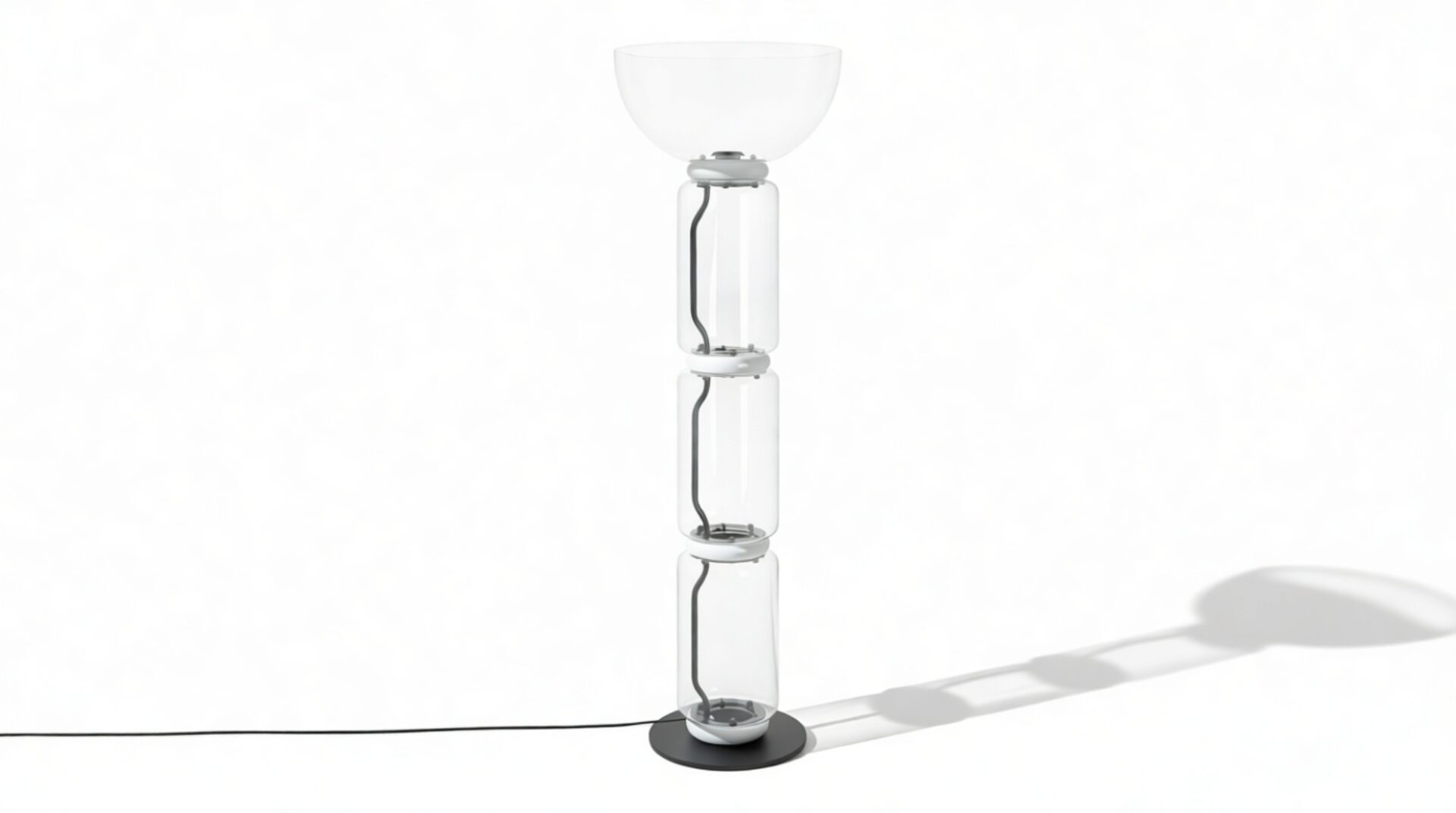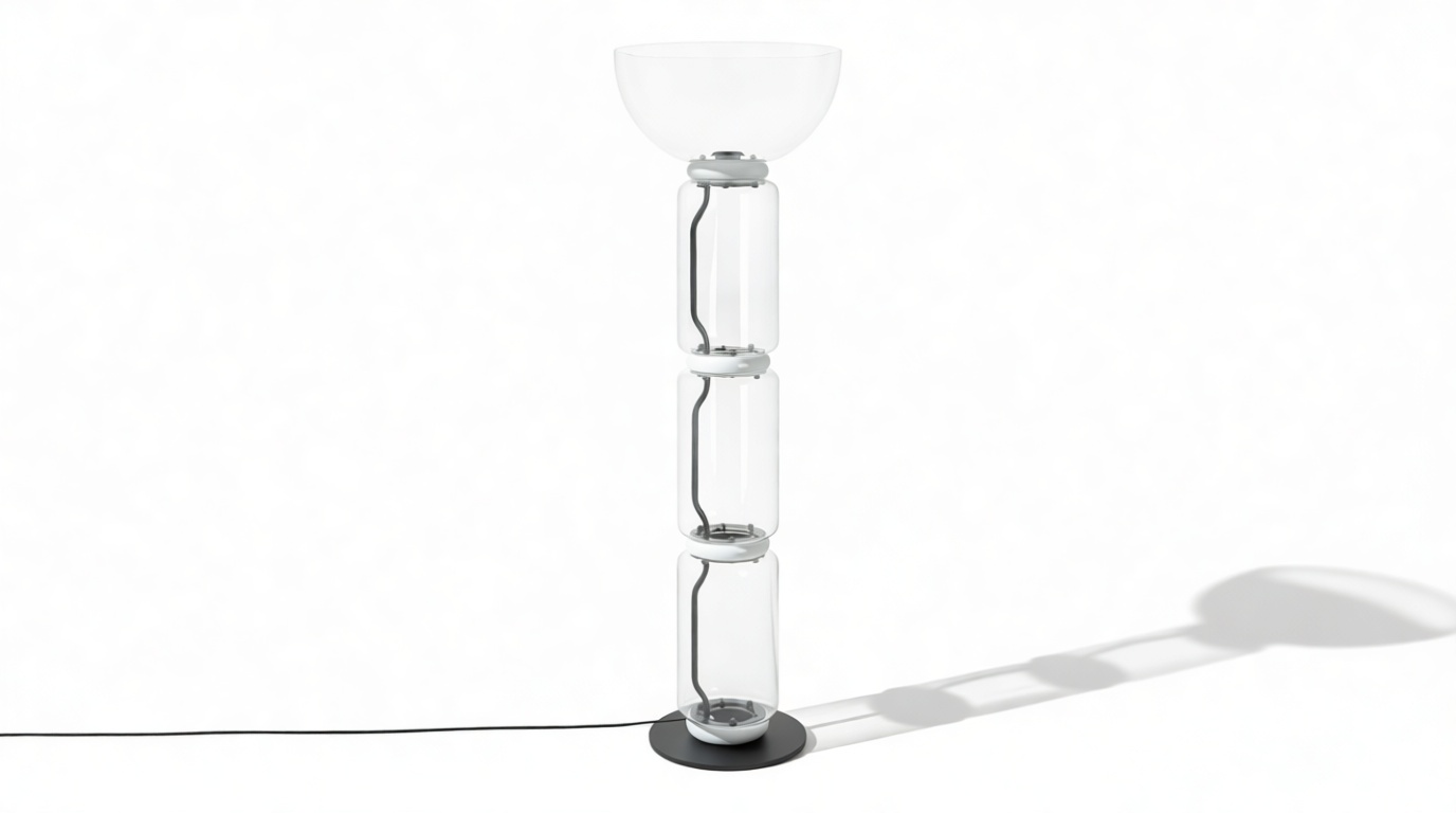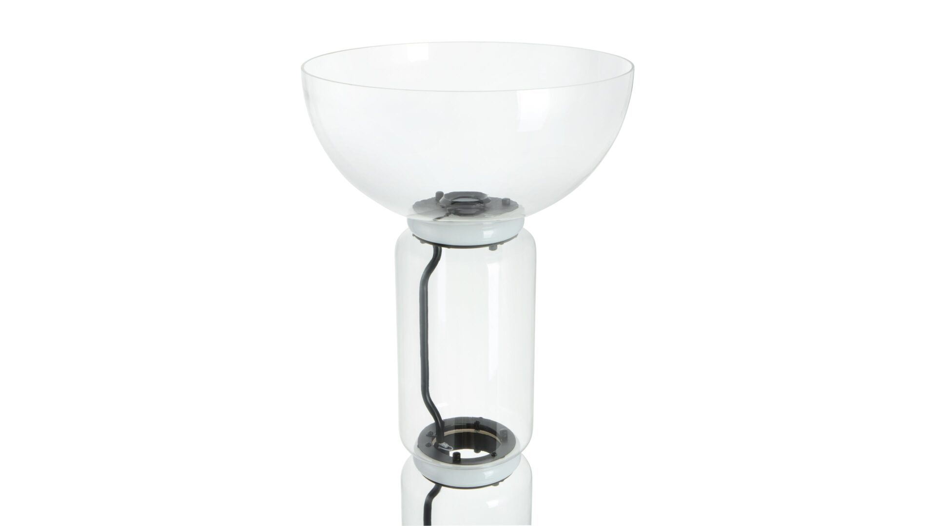 Fashioned predominantly from gracefully stacked glass tubes, the Noctambule Floor Lamp features inconspicuous LED rings and internal wiring cleverly concealed within a sculpted central frame. The exposed glass bowl crowning the design infuses a handcrafted charm.