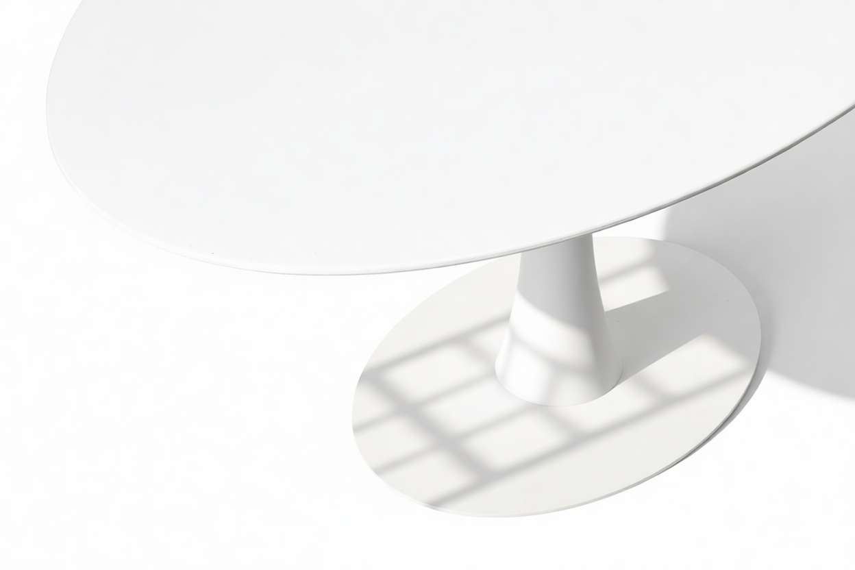 Experience the exquisite design of the Nord Dining Table in this modern rendition meticulously crafted with premium materials, featuring a striking white lacquer tabletop that seamlessly blends beauty with functionality.
