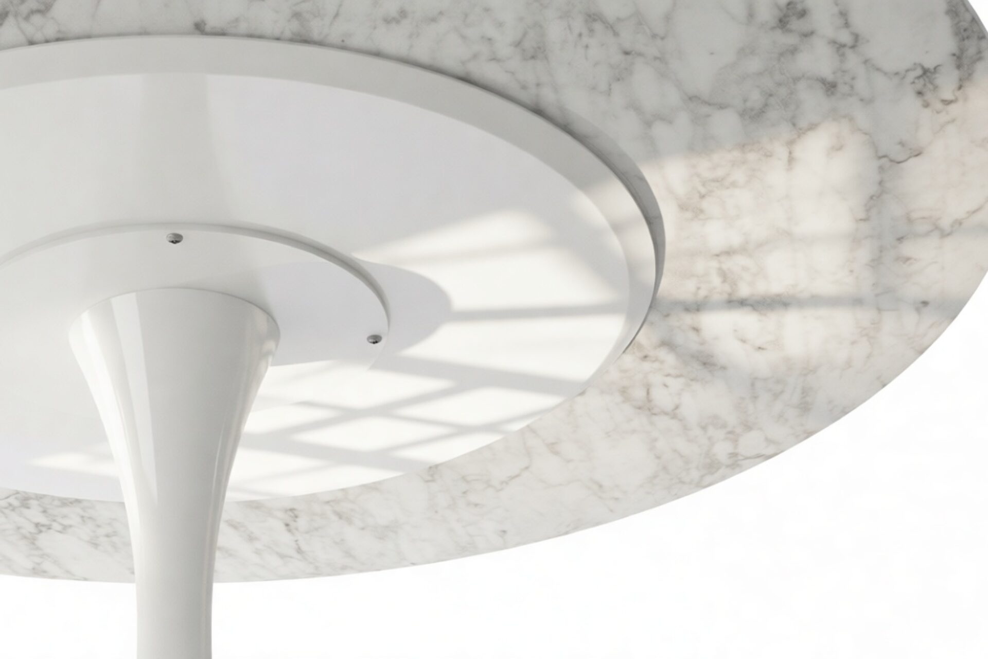 Unveil the Nord Table, a sleek and chic centerpiece inspired by futuristic design from the mid-1950s featuring a stunning Carrara Marble tabletop. This minimalist piece elevates any space with its pedestal base, offering a contemporary dining or desk solution. Versatile, elegant, and easy to maintain, the Nord Table promises timeless style and functionality for your modern lifestyle.